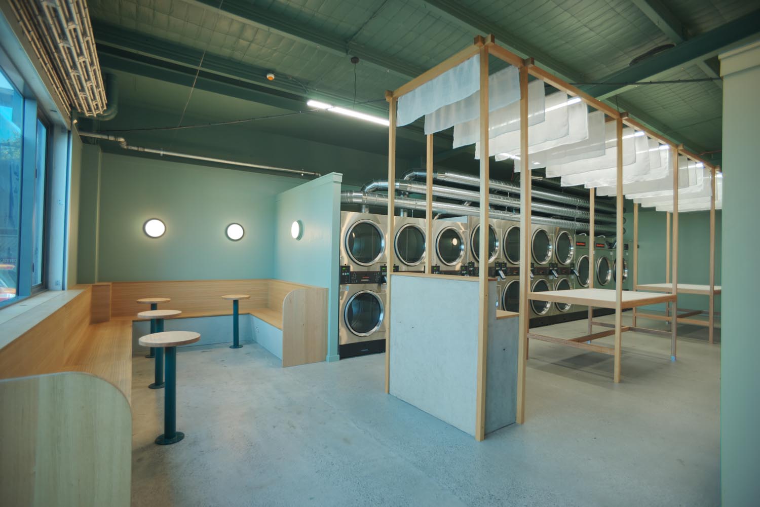 The initial brief from the client of ‘My Laundry Bag’ was to move away from the perception of a traditional laundromat – usually designed purely on function, often dark & run down. The concept needed to embrace the needs of the customer and provide a space that is attractive to come to while at the same time addressing sustainability and offer unique service options.
