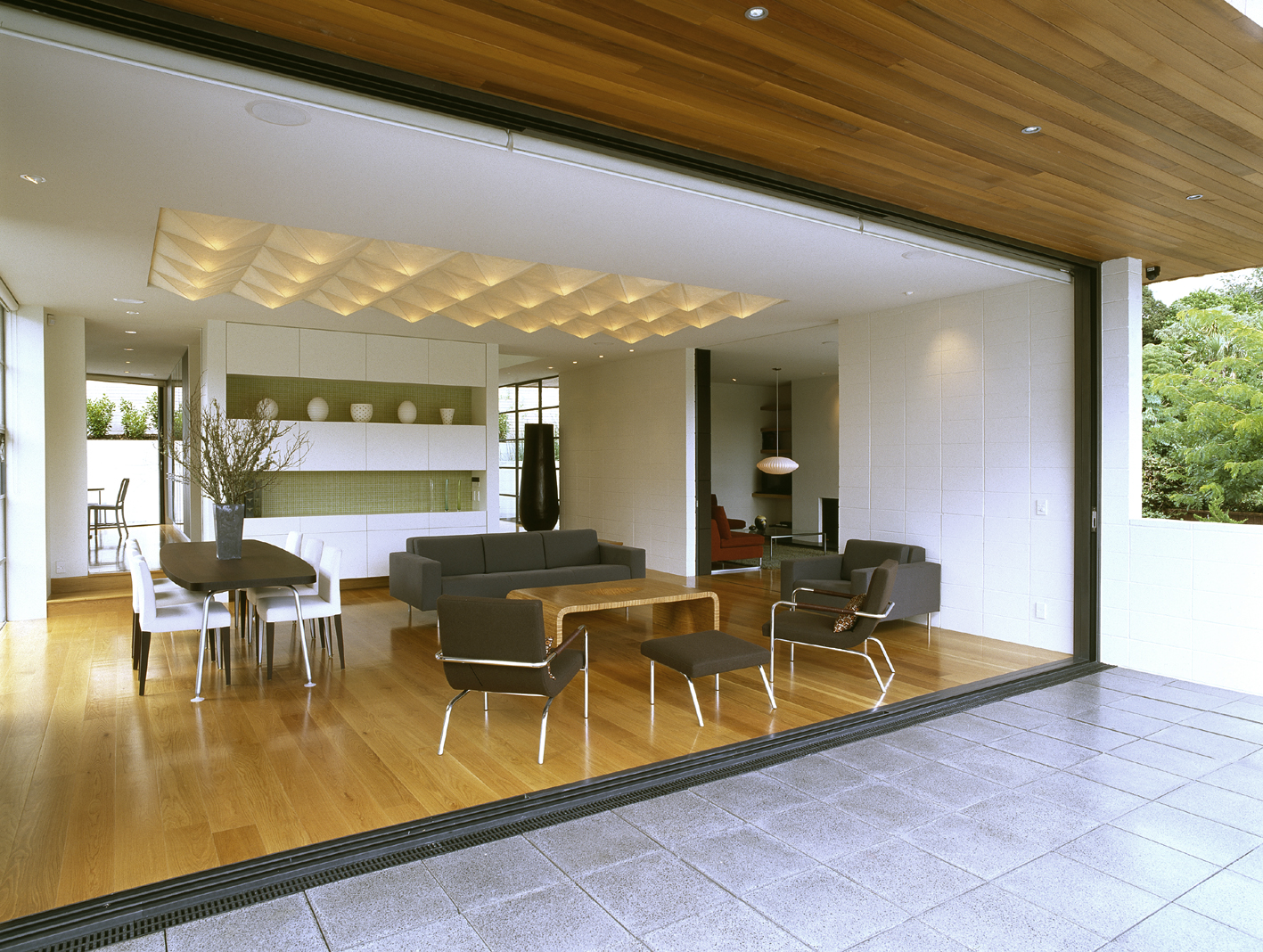 The house is composed of a series of indoor and outdoor terraces, drawing the nature in and the interior out. It has a spatial character similar to a hillside village, with a variety of irregular shaped spaces arranged around three outdoor terraces and with a variety of routes connecting them.