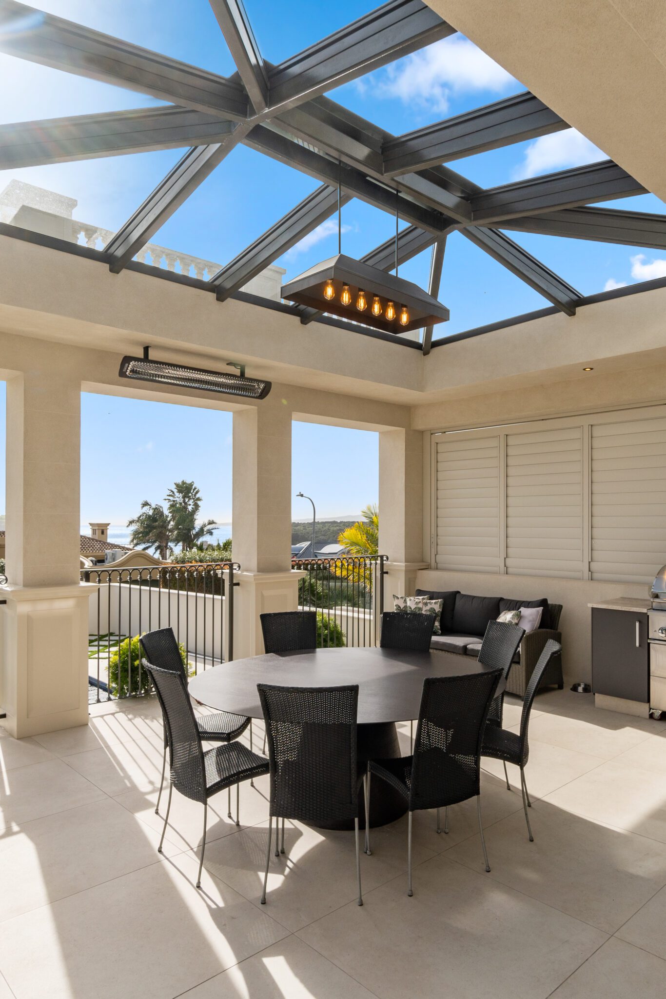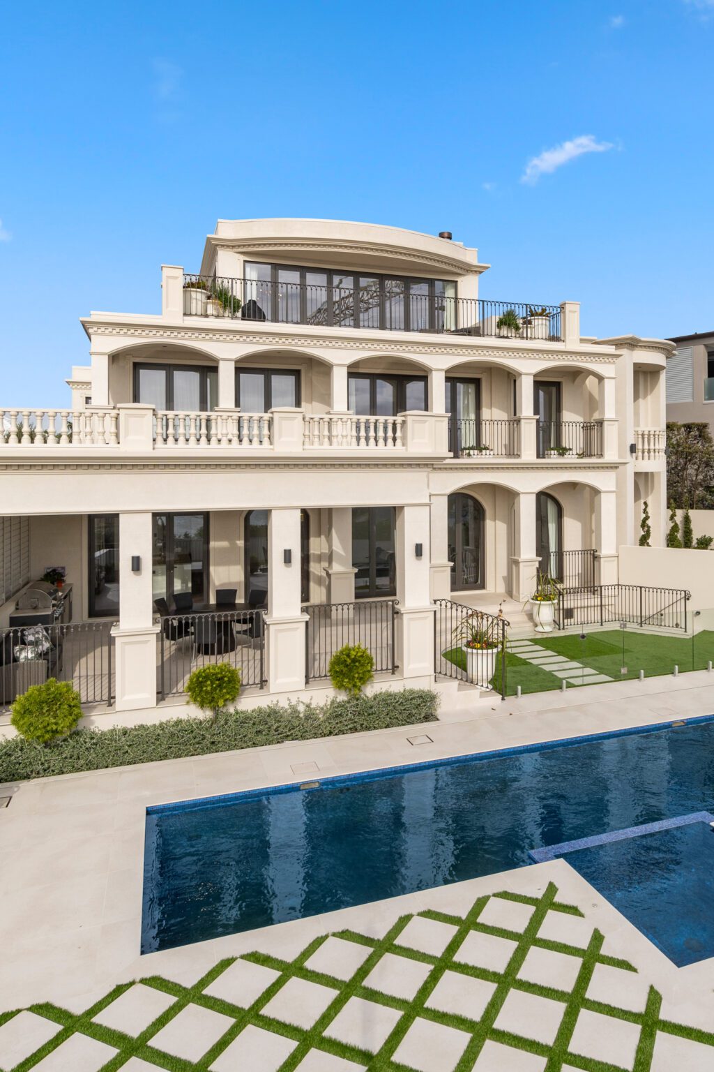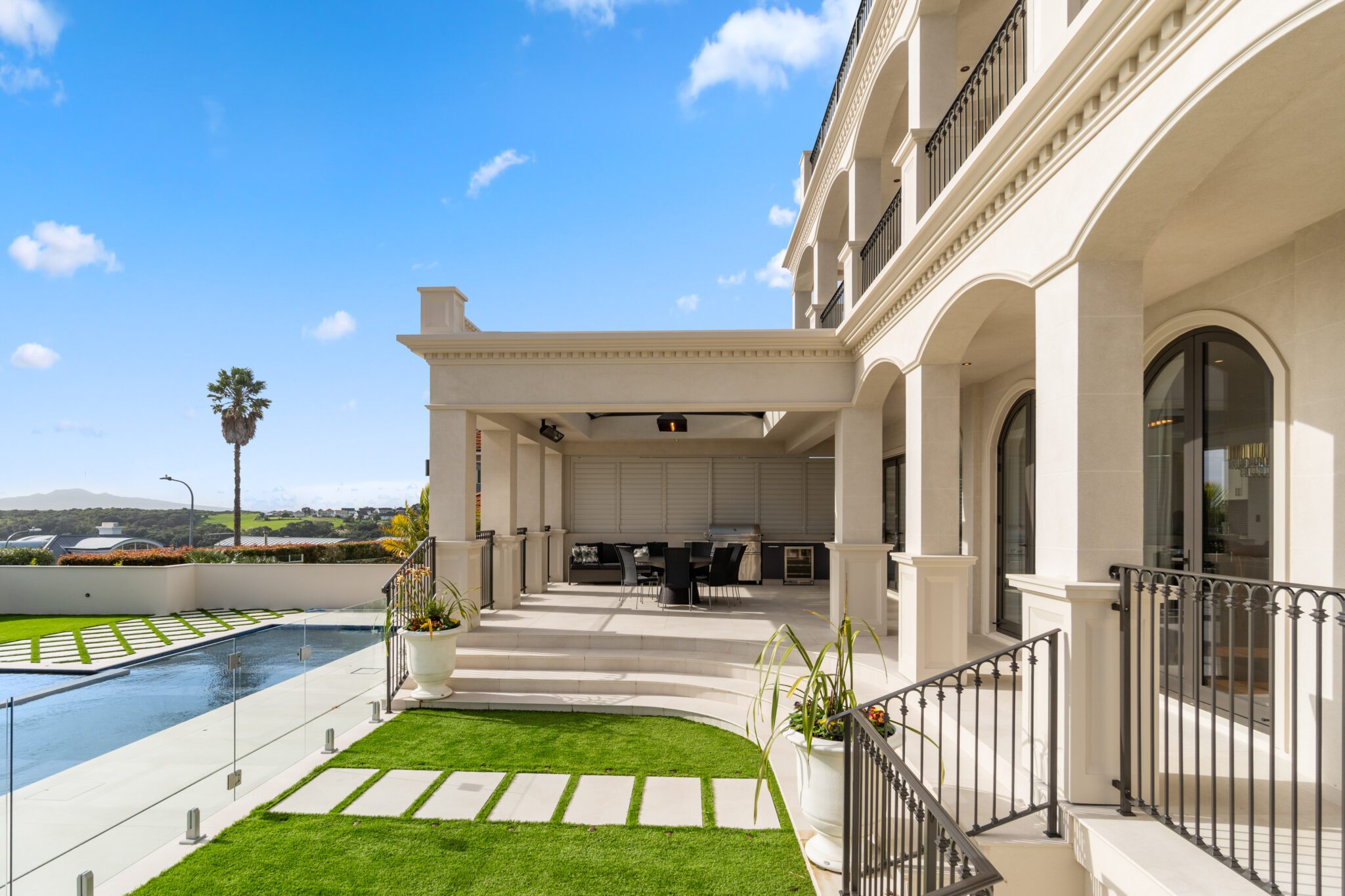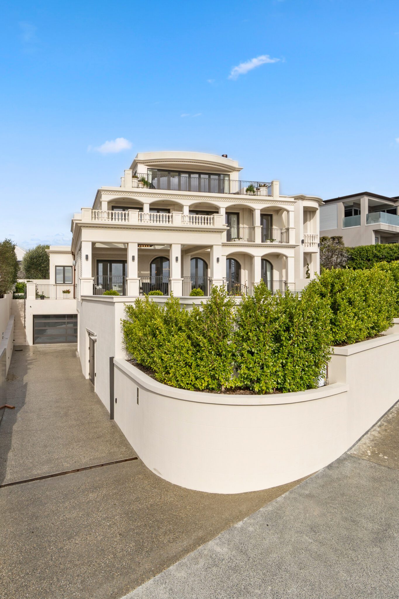 This epic concrete masonry new build in Orakei features seven bathrooms and five bedrooms, and the top floor is an entertainment area with bar and dining. The four-storey home was built using the STO plaster system and features Accumen Shapes to form the curves, and Low E double glazing throughout.