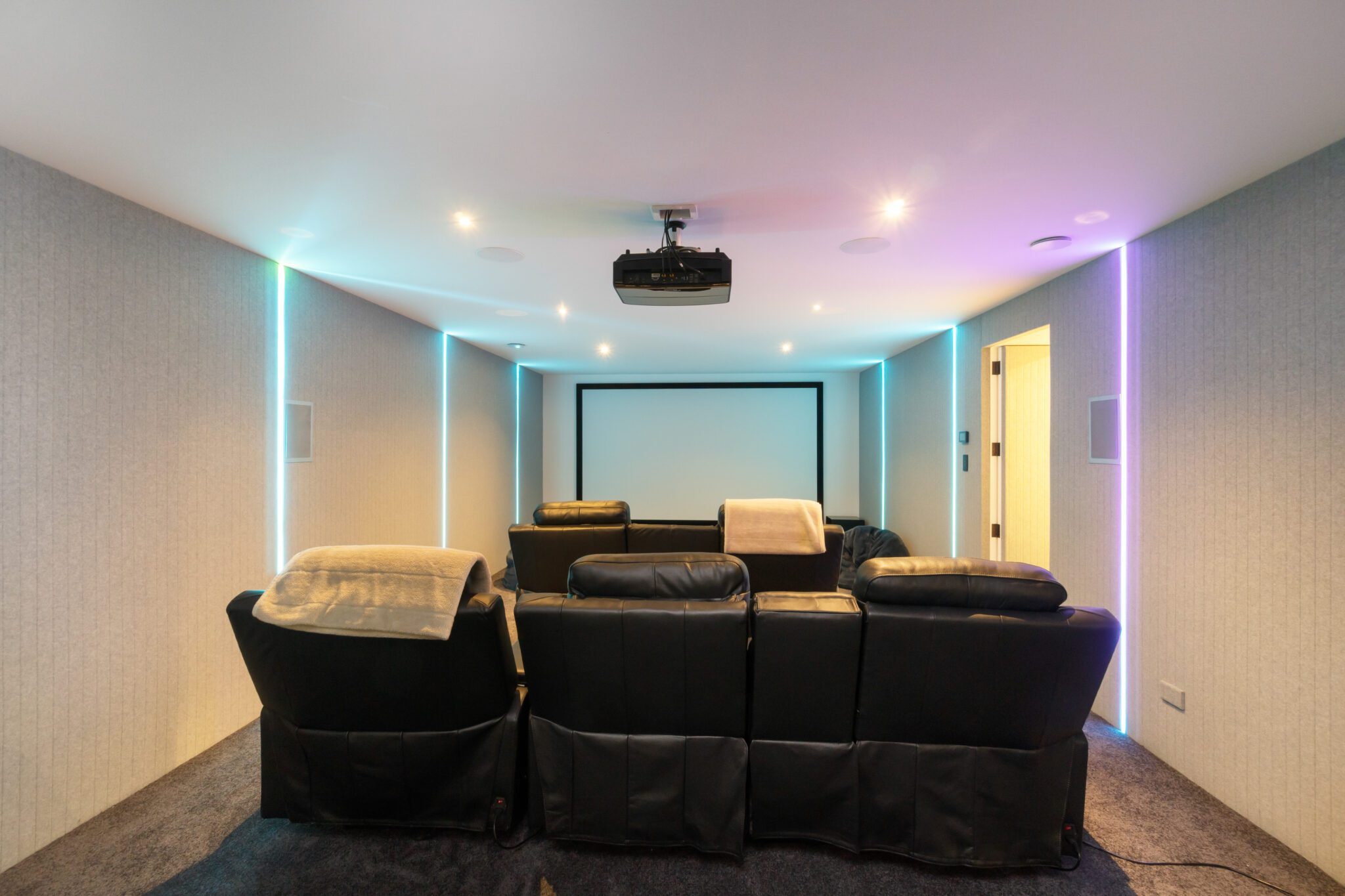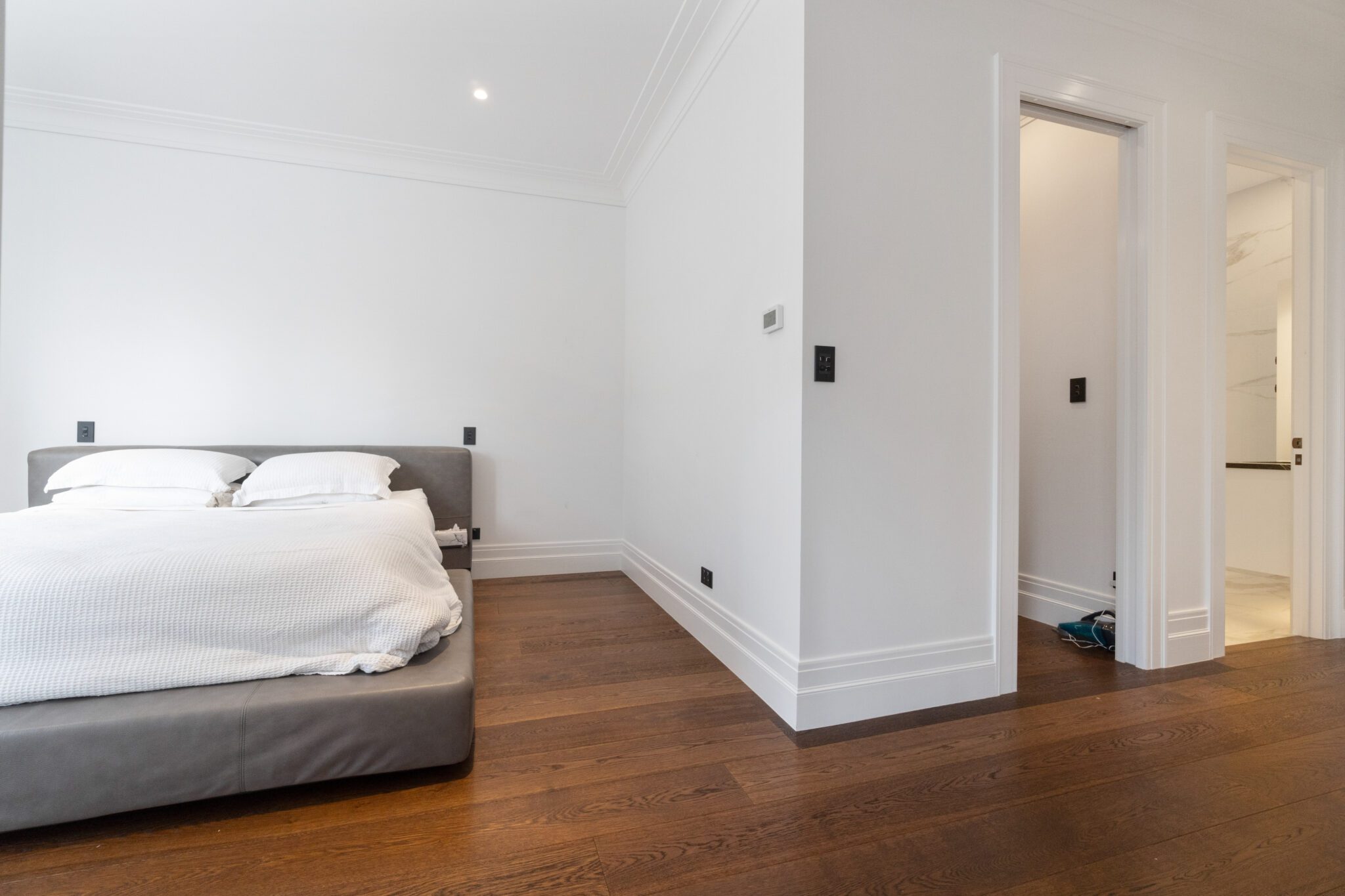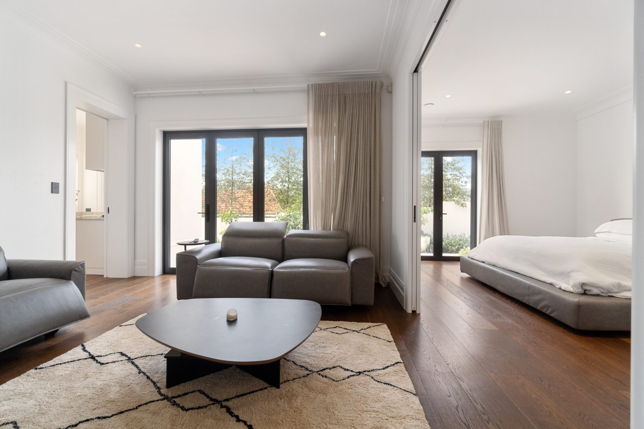 A cinema and sauna are found in the basement, along with parking and a full home gym. Flooring includes marble, solid oak, and lush carpets, and interiors have been carefully selected using bespoke finishes and furnishings. This grand new build is a statement home in every aspect and we are so proud to have delivered it for our clients.