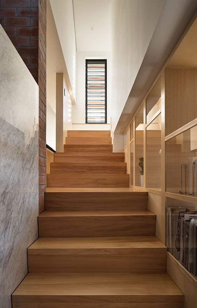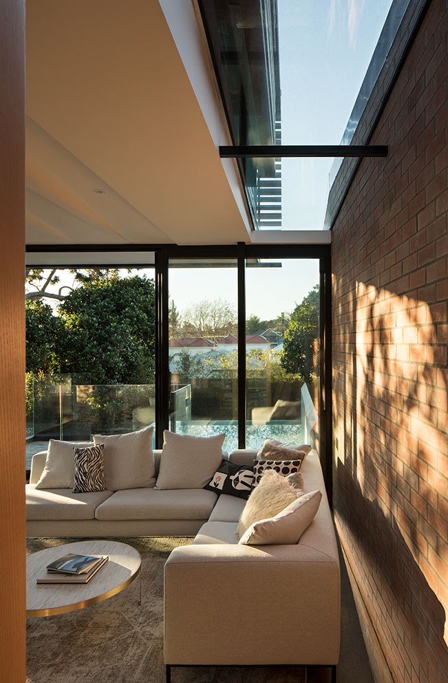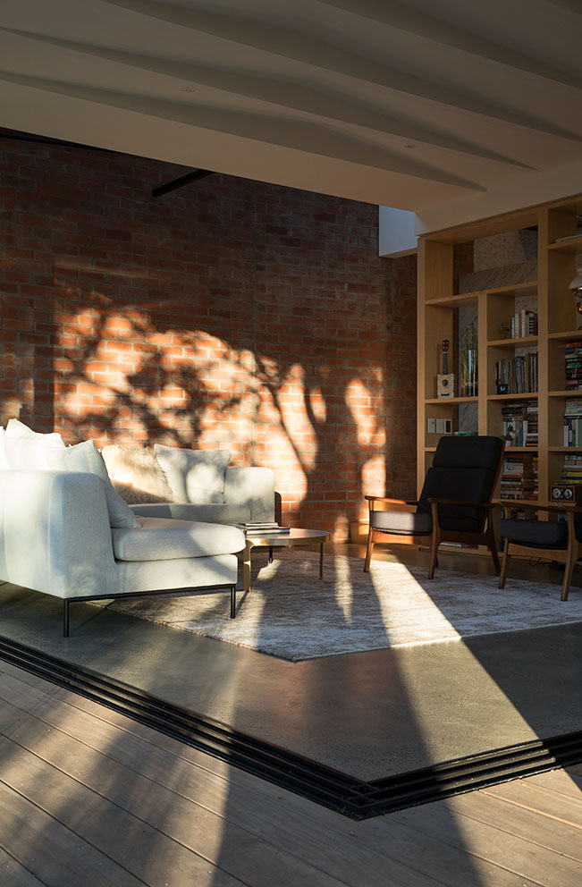 While maintaining the character and streetscape presence of this home, we created a multi-level sculptural extension to the North. Brick walls connect the old with the new, cranked at points which break up these large planes, falling in and away, around the spaces created. The brick walls also provide North-South structures for the second storey to bridge across, creating an illusion of weightlessness.