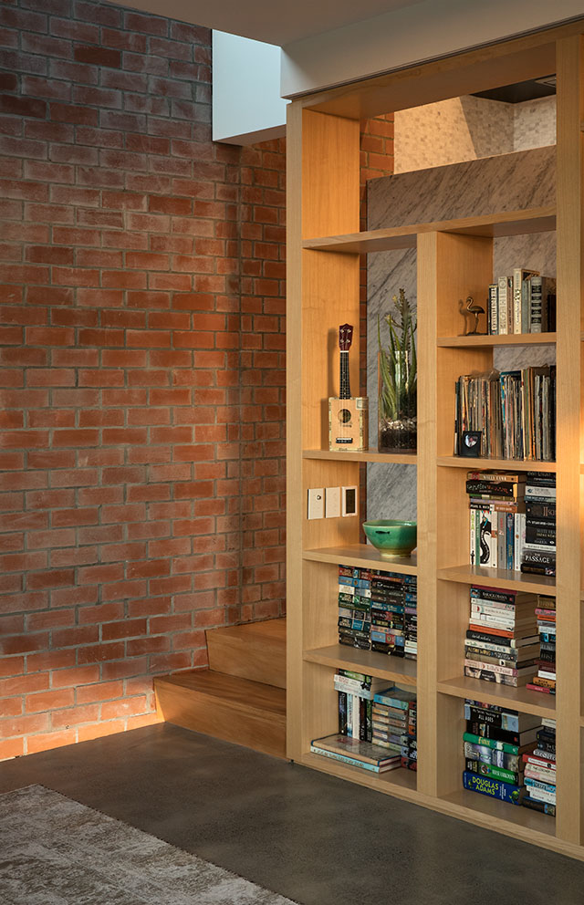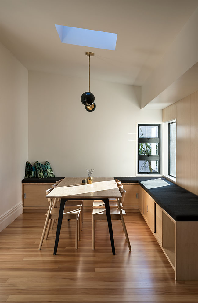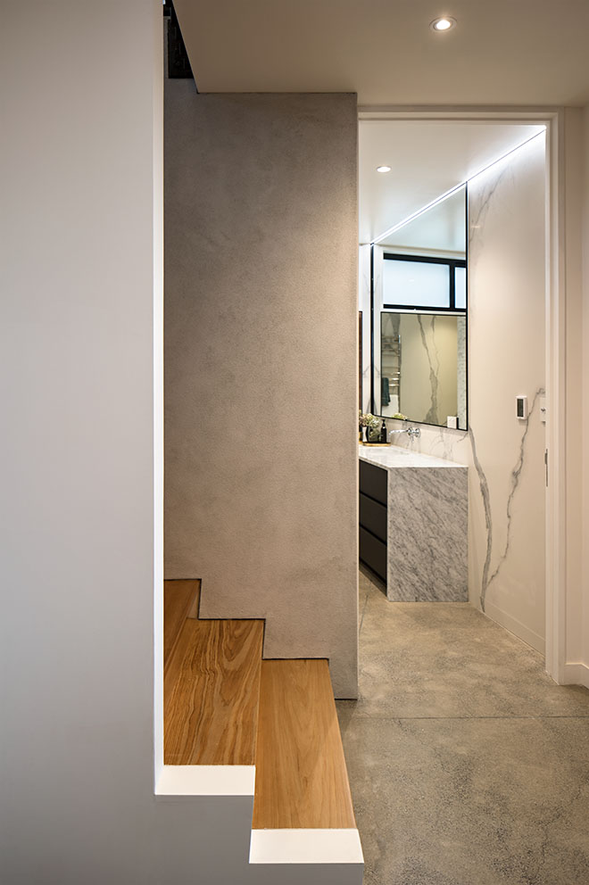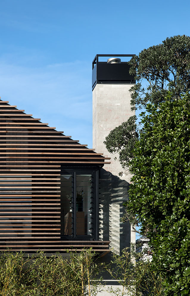 The garaging provision in the traditional sense was impossible – requiring the controversial decision to install a drive-in garage and car stacker in what was originally the front left bedroom. Carving out positions of the villa, adding masonry wall structures, and retaining facilitated the car stacker installation. Giving way to a garage door, the original villa facade has been maintained in a seamless manner by retaining the weatherboards and joinery and integrating a hinged door for vehicle access