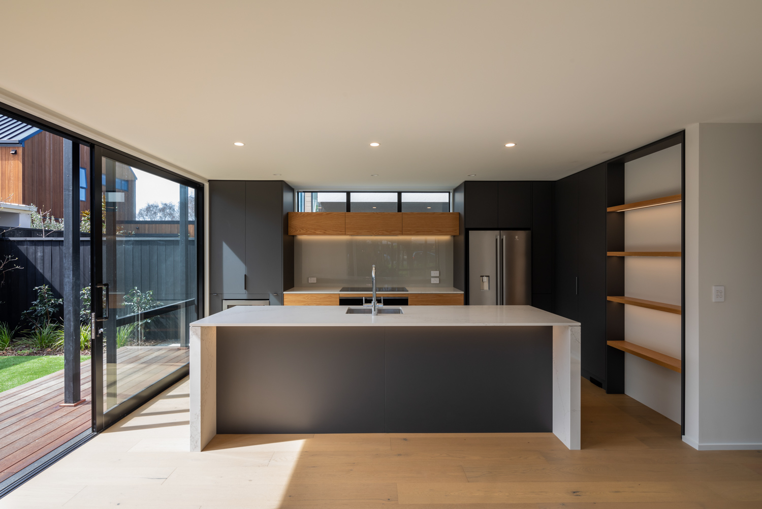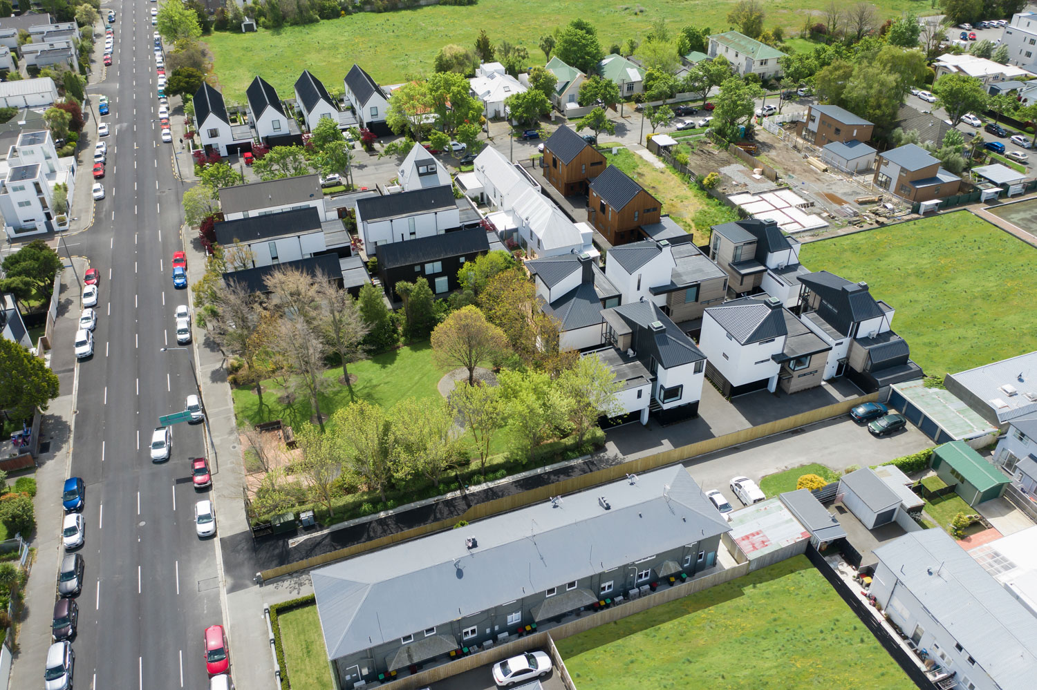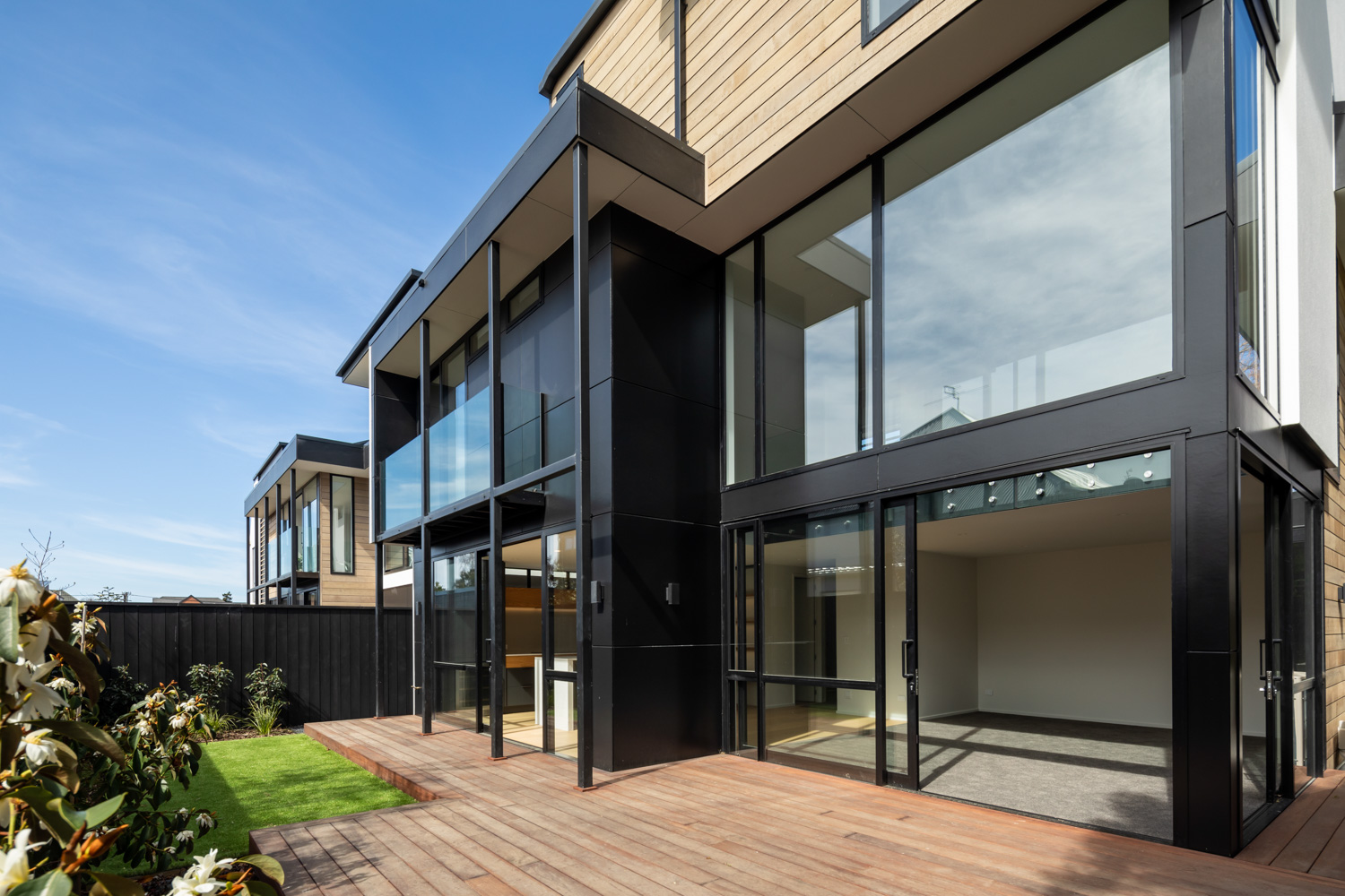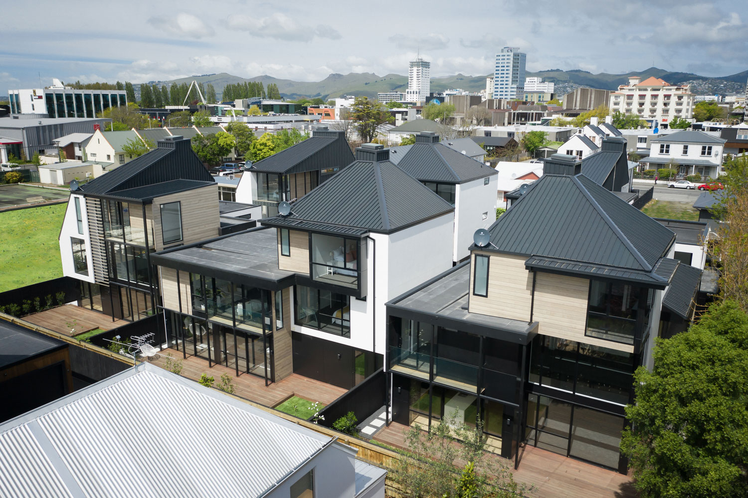 Located near Christchurch central city, the Urban Village Townhouses are designed for medium-density urban living. The brief was to provide 6 triple floored free-standing townhouses that would capture the sun and provide private indoor-outdoor living away from the street edge. The design concept was focused on creating a ‘village-like’ atmosphere with pathways between units, upper floor living with access to views, and a shared ‘courtyard’ of sorts at ground level. A strong connection to the neighbouring reserve was important, this was achieved by providing shared pedestrian access that links directly into the central courtyard area.