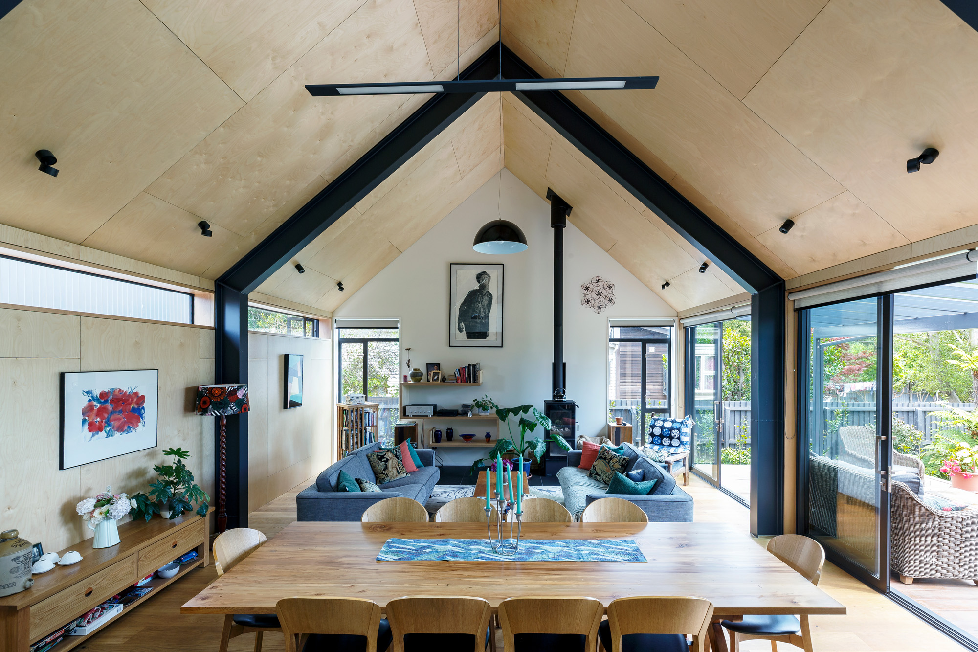 This house is a redesign of a beloved family home that was damaged during the Canterbury Earthquakes of 2010 and 2011. The clients wanted to build a new house to meet their changing needs, both now and in the years to come. We addressed this by maximising the orientation of the home for sun, and shelter from the wind, whilst allowing scope to downsize and further develop the site in future.