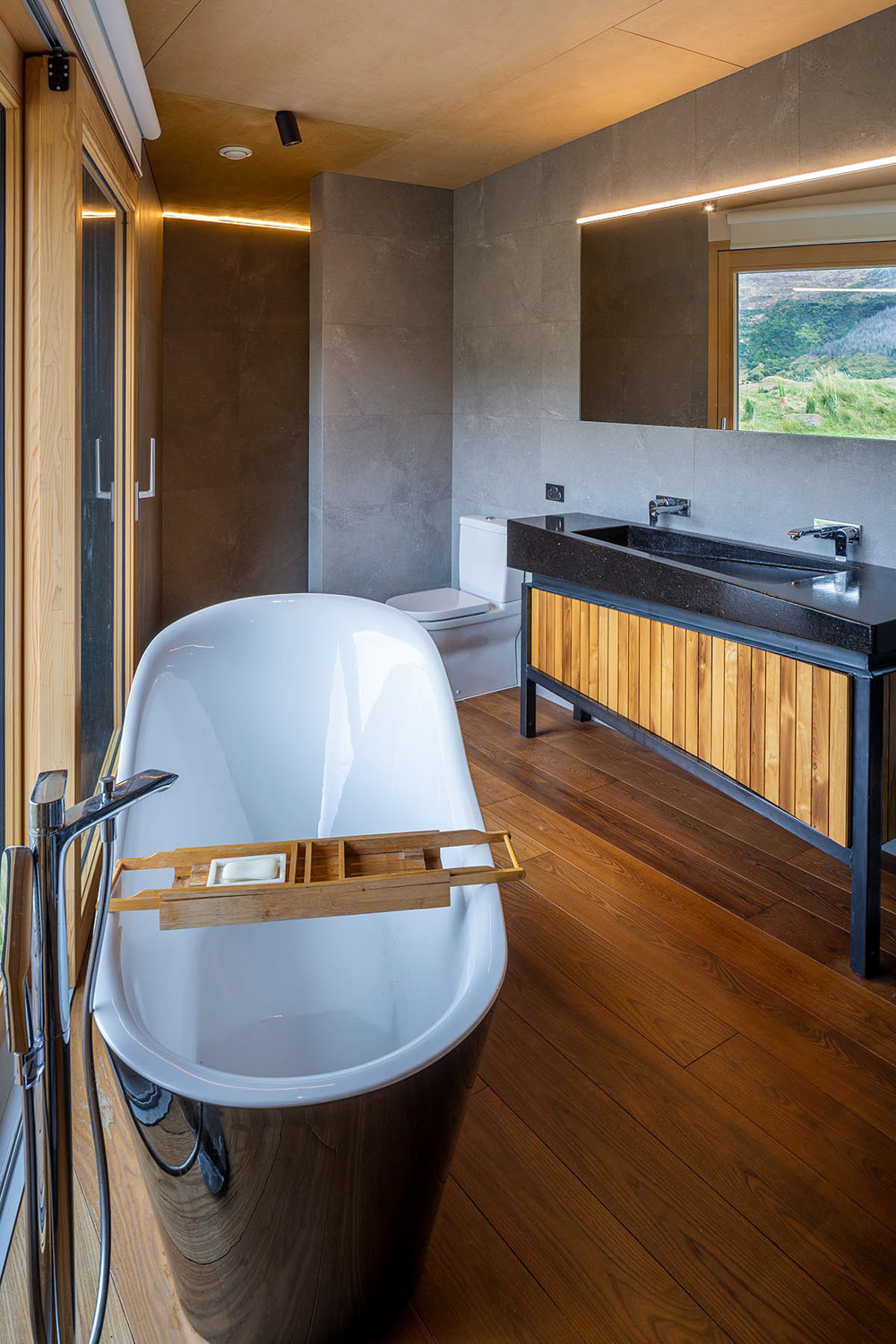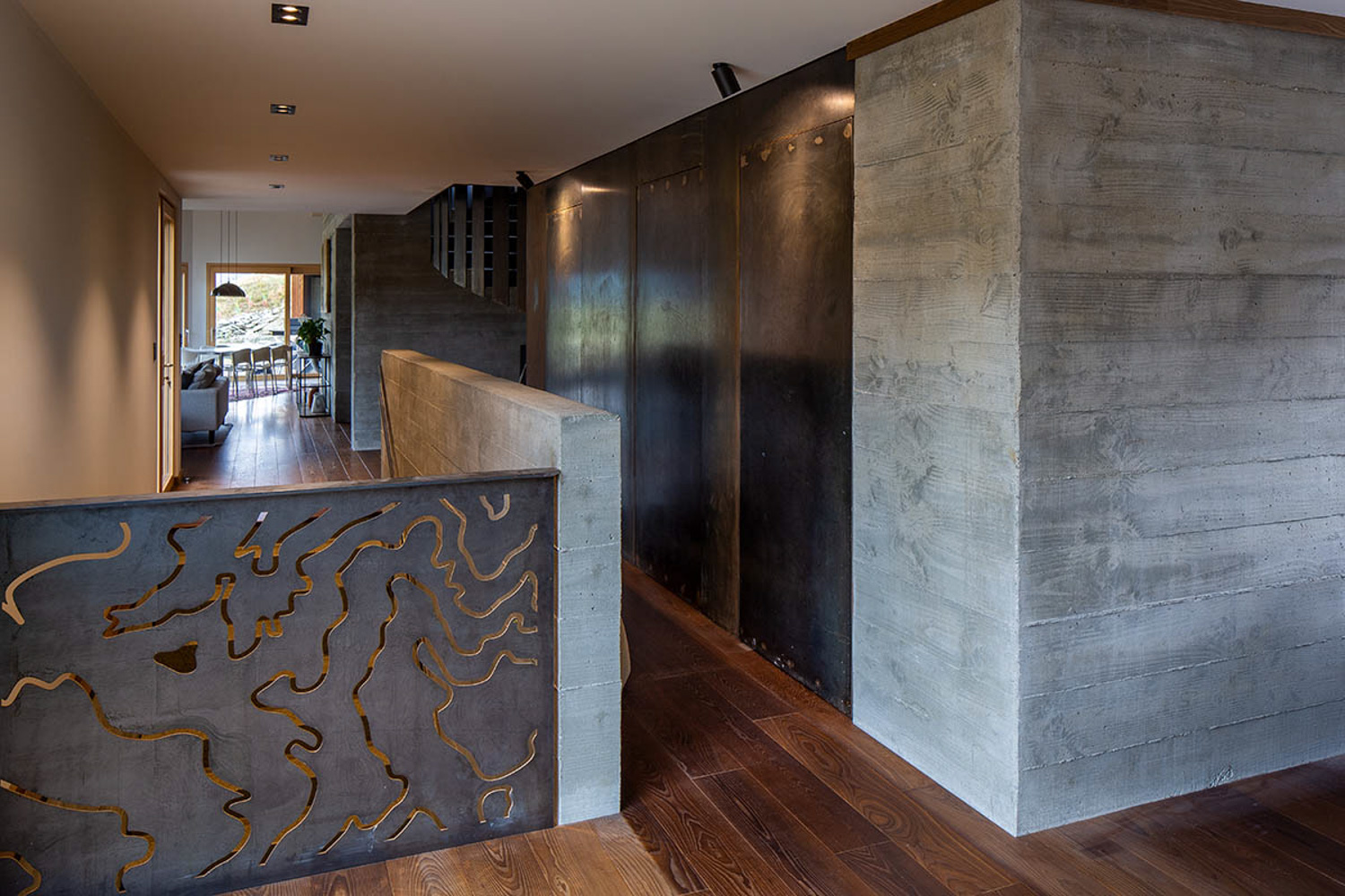 The energy efficiency of the house was well-considered and although the house is large requires little heating. Concrete walls are plumbed with pipes to carry hot water, so the walls become a giant radiator