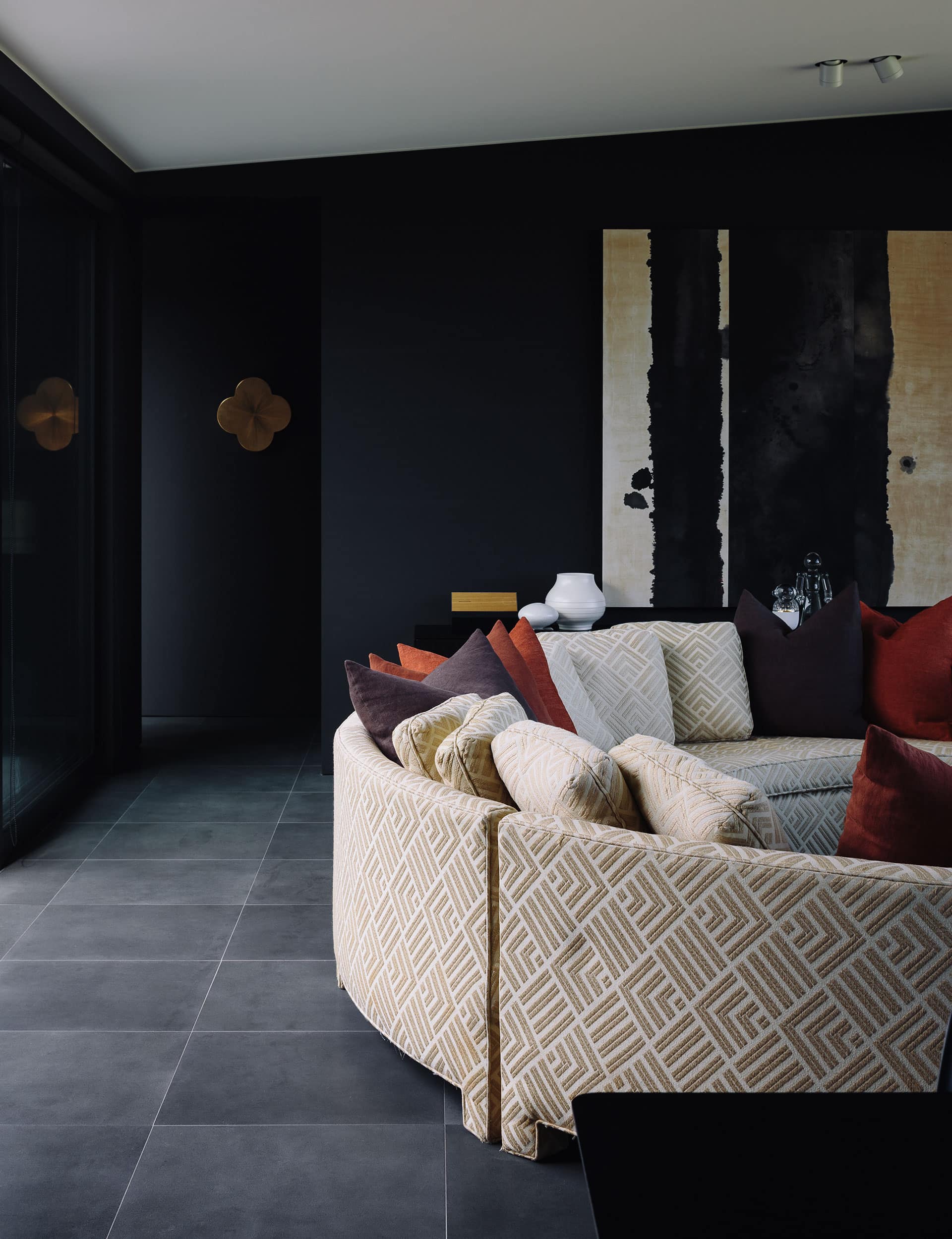 With contemporary art and modernist furniture – including an outlandish 1950s circular sofa from Mid Century Design they had in their previous home – the result is dramatic and contemplative.