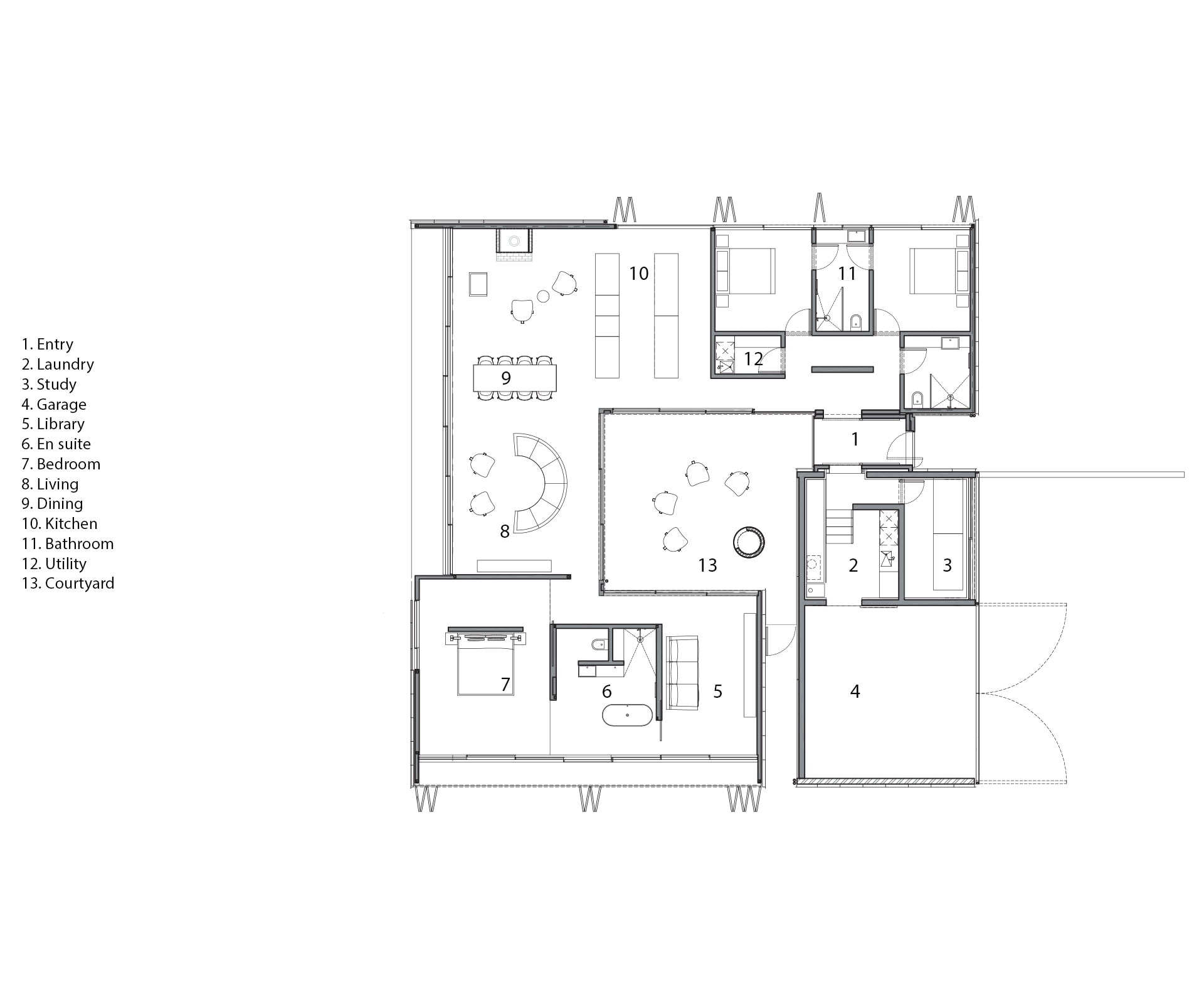 The design changed a little with its new owners – Sharpe is an interior architect with a number of renovations under his belt, and he and Fearon Hay evolved the design to better articulate interior flow. They added the airlock (previously an open corridor) and turned what had been marked for a spa pool into the library; tucked next to the garage, they turned a small service room into a compact study. In a sense, they’ve doubled the number of places to sit within the same footprint. “It was very much a collaboration,” says Hay of the process. “It’s a chassis for someone else to introduce their life and elements. The richness of how it has been curated is quite lovely.”
