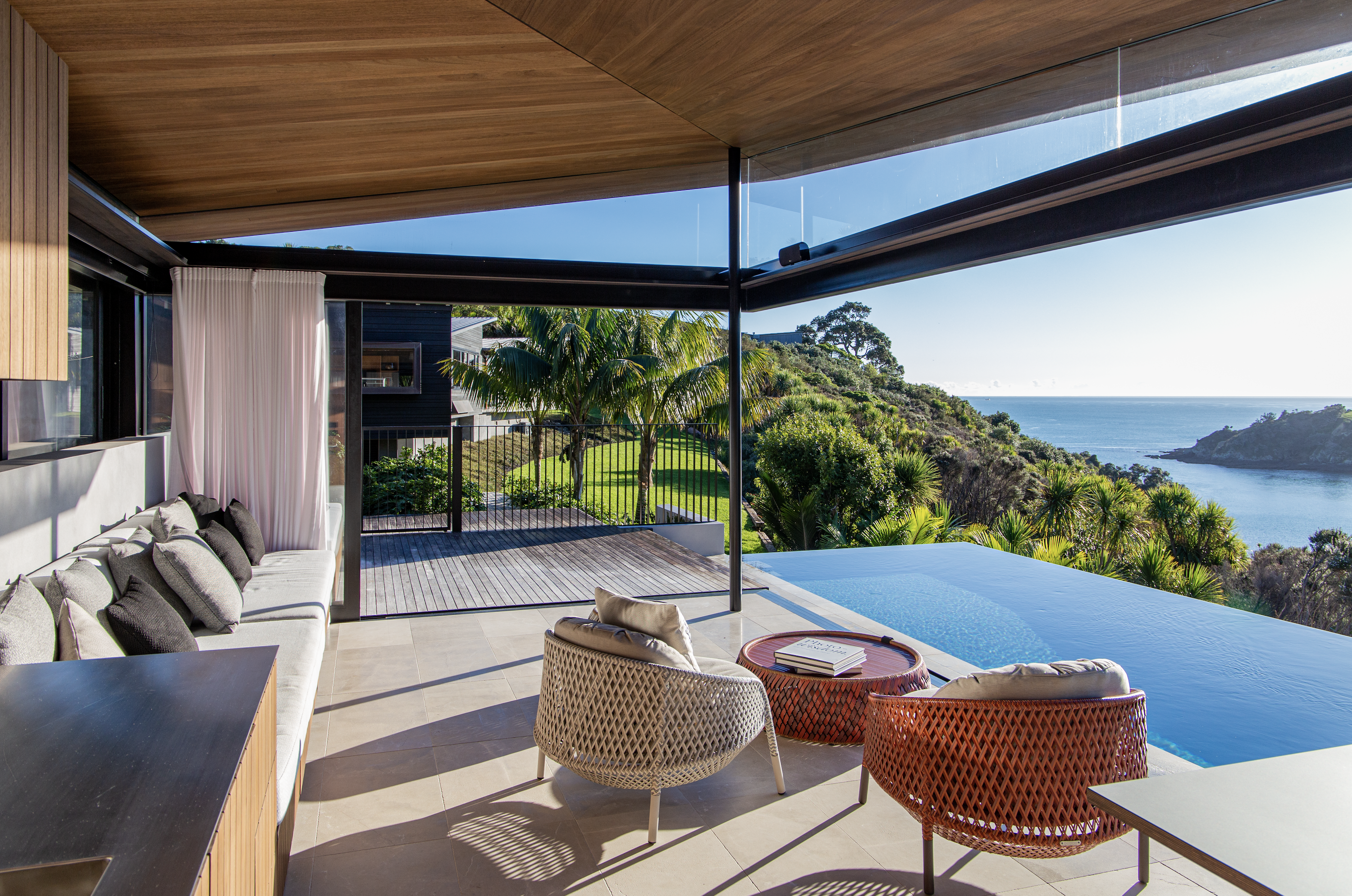 Designed to put nature at its heart, the pool terraces down in steps of 1.2m then 1.0m, in line with safety regulations. There’s nothing to interrupt the ever-changing visual spectacle. Settling into the hug of resort-style seating with a slice of North Island landscape in full frame and a Dirty Martini on hand to toast the summer? Eat your heart out, Mr Bond.