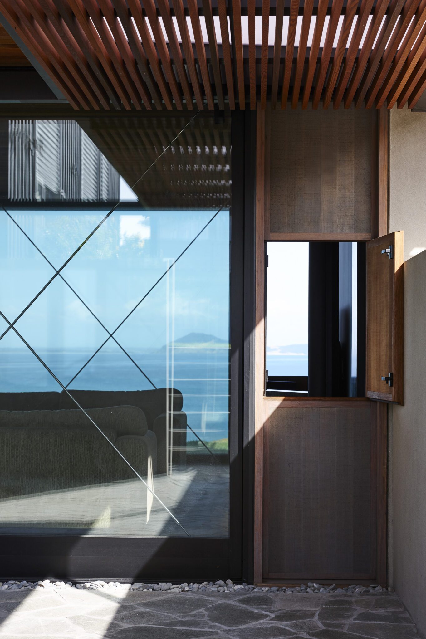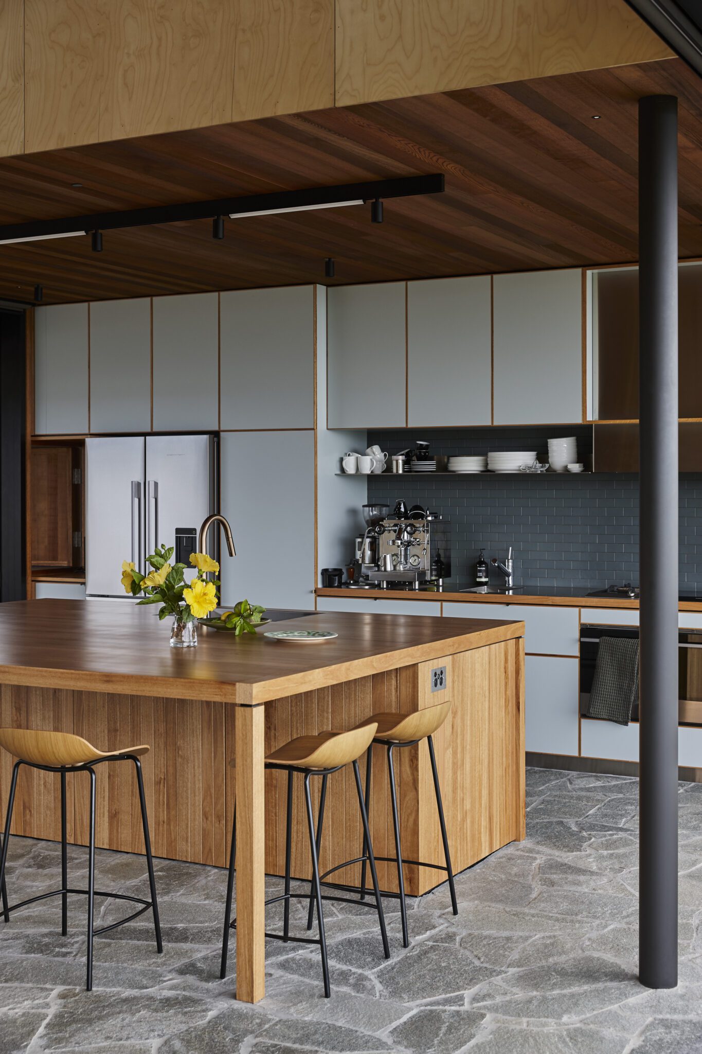 There is something slightly Japanese at play here: the restrained material palette and compositional clarity; the light timber — expressed with minimal finishing — foregrounding the grain and craftsmanship in a way that echoes traditional joinery’s honesty and precision.