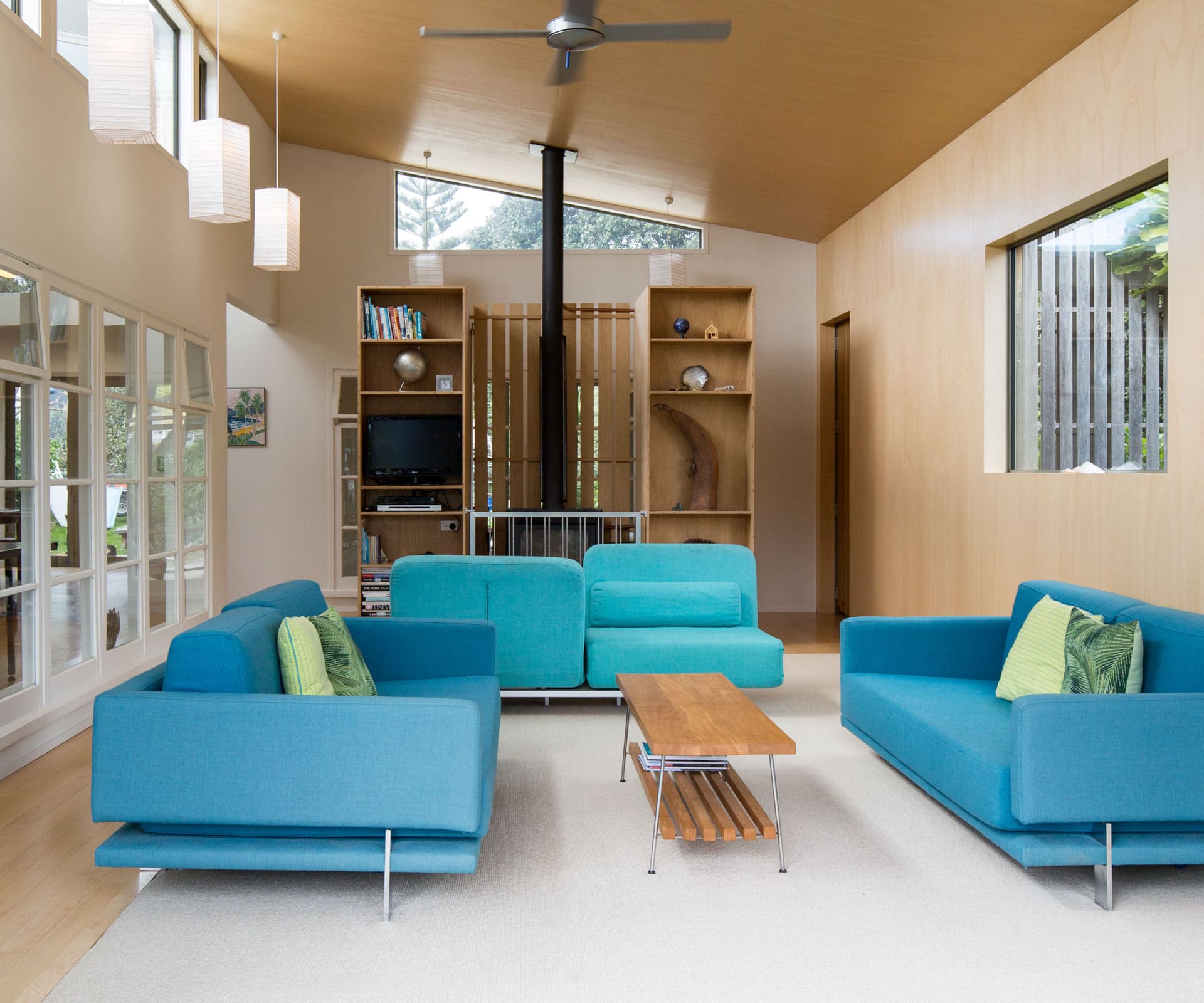 It’s underfoot and above that reveal telltale signs of old and new – from the low, flat 50s ceilings to soaring new pitches, from original tawa floorboards lying next to those recycled from a building in Wellington. “We didn’t want to hide those footprints,” says Matt. “You can walk in and tell people where the sunken bath was in the kitchen, and where the old back door and front door were.”