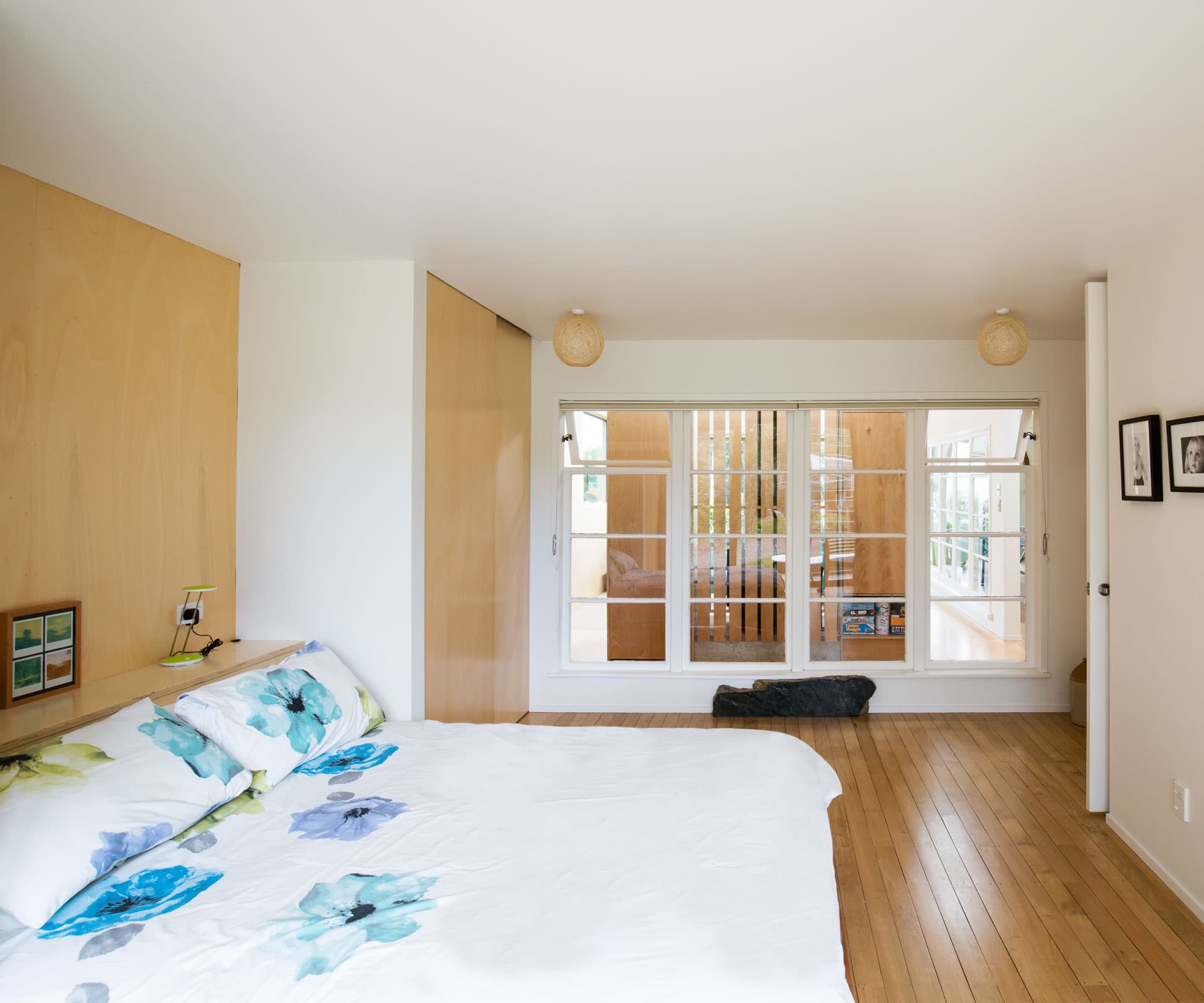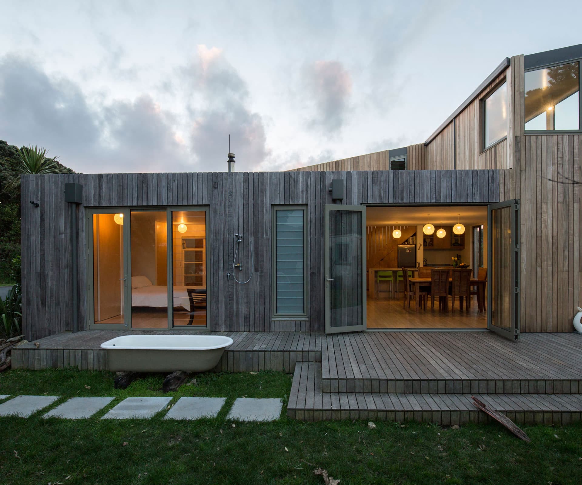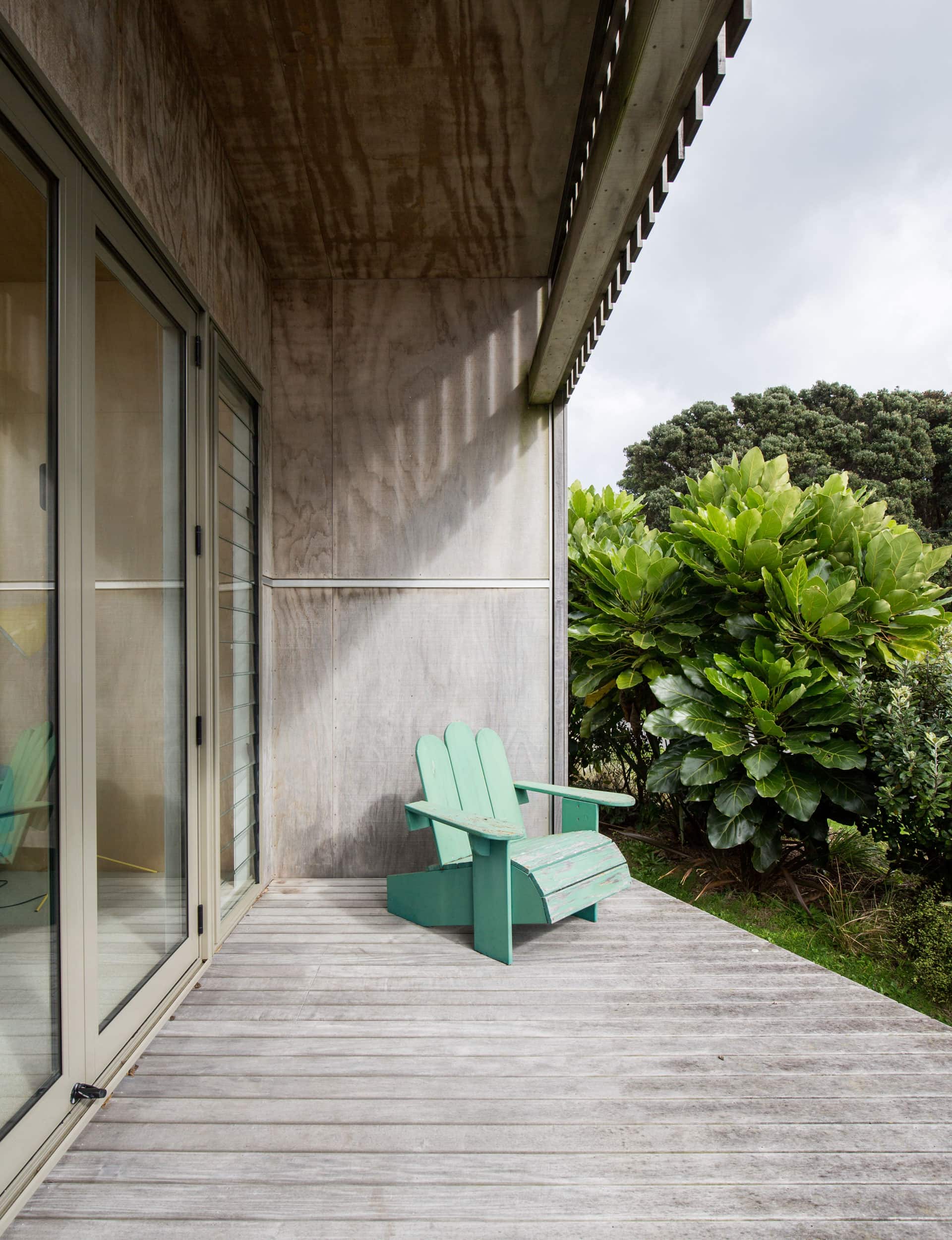 Creating a united front and cohesive entity, a Vitex hardwood rain-screen has been battened on top of the original stucco, as well as the new plywood extensions. Now the colour of driftwood, Matt says the look is in keeping with Paekākāriki’s assemblage of aged dwellings. There’s nothing to hint at the ’50s house that once was. “It’s like an old ship gone out to sea and it has come back weathered,” says Matt, musing on his beloved old-new home.