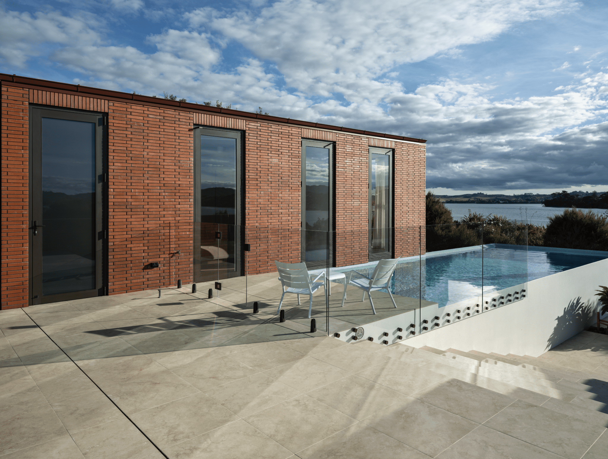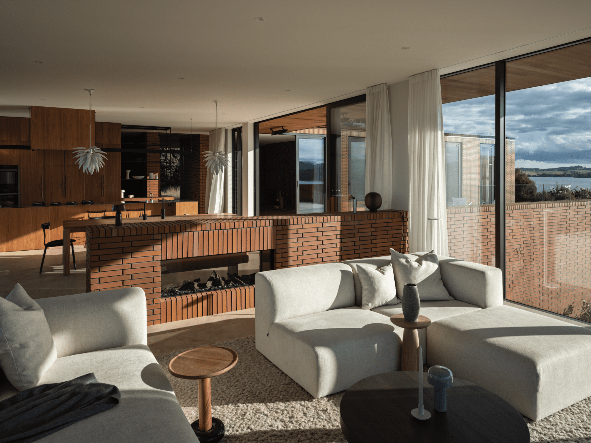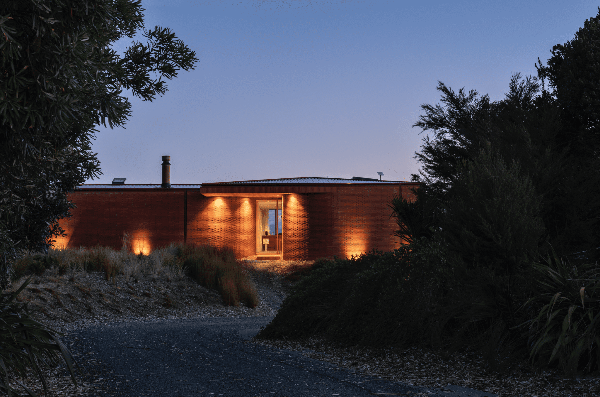 Danish modernism, Kiwi nostalgia, and a touch of grandeur converge on a one-of-a-kind site in Mangawhai, where a home of red brick and glass is dwarfed by an undulating dunescape.