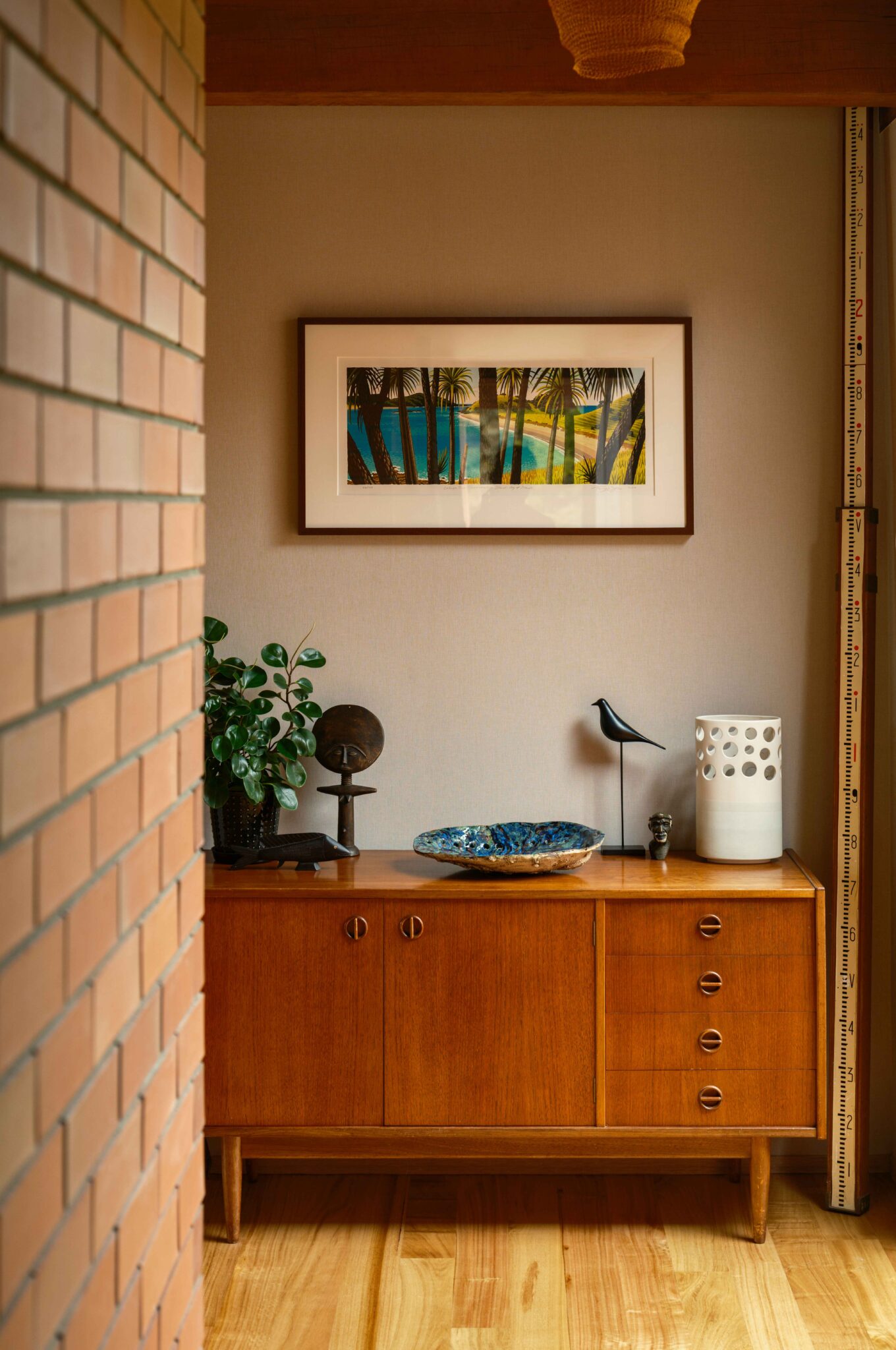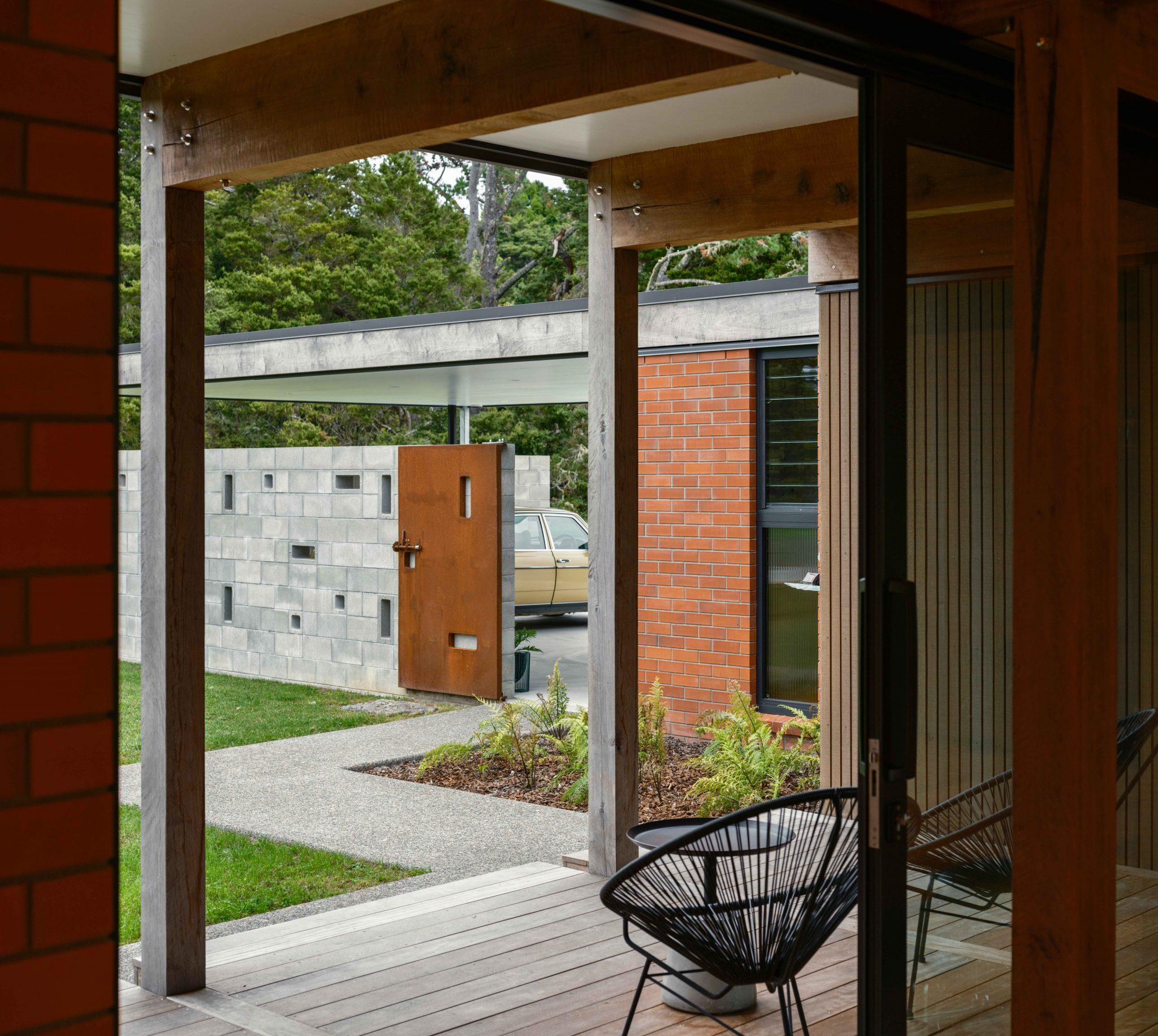 Throughout the two decades since they moved north from Auckland, their love of mid-century architecture has grown. “My dad designed and built our family house in the late ’60s. It was open plan, with a flat roof and cedar clad with some internal brick. I grew up thinking that was the norm,” remembers Paula.