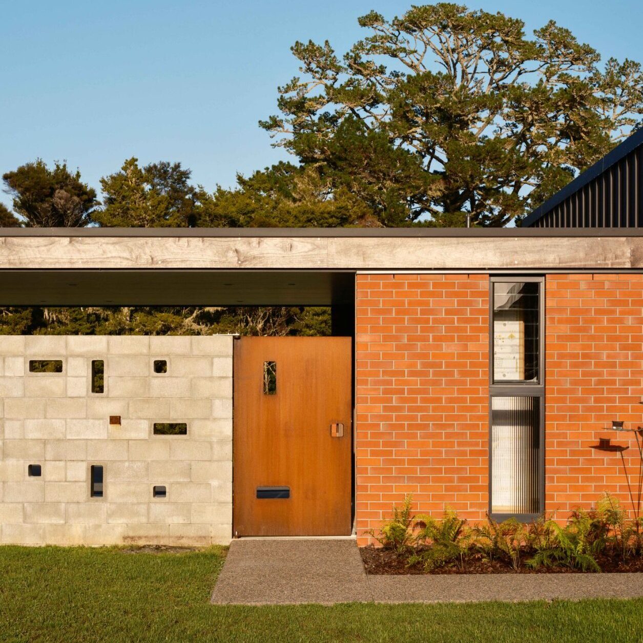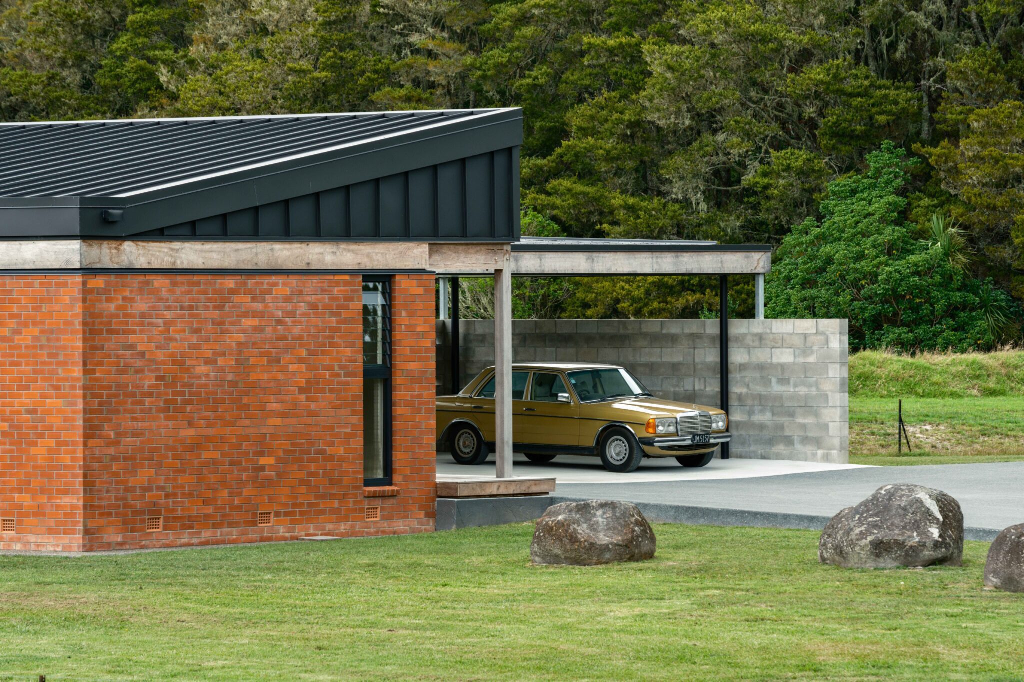 Mid-century with a modern interpretation, this family home just outside of Whangarei is a jewel-box on an expansive country site — striking terracotta against a backdrop of verdant green.