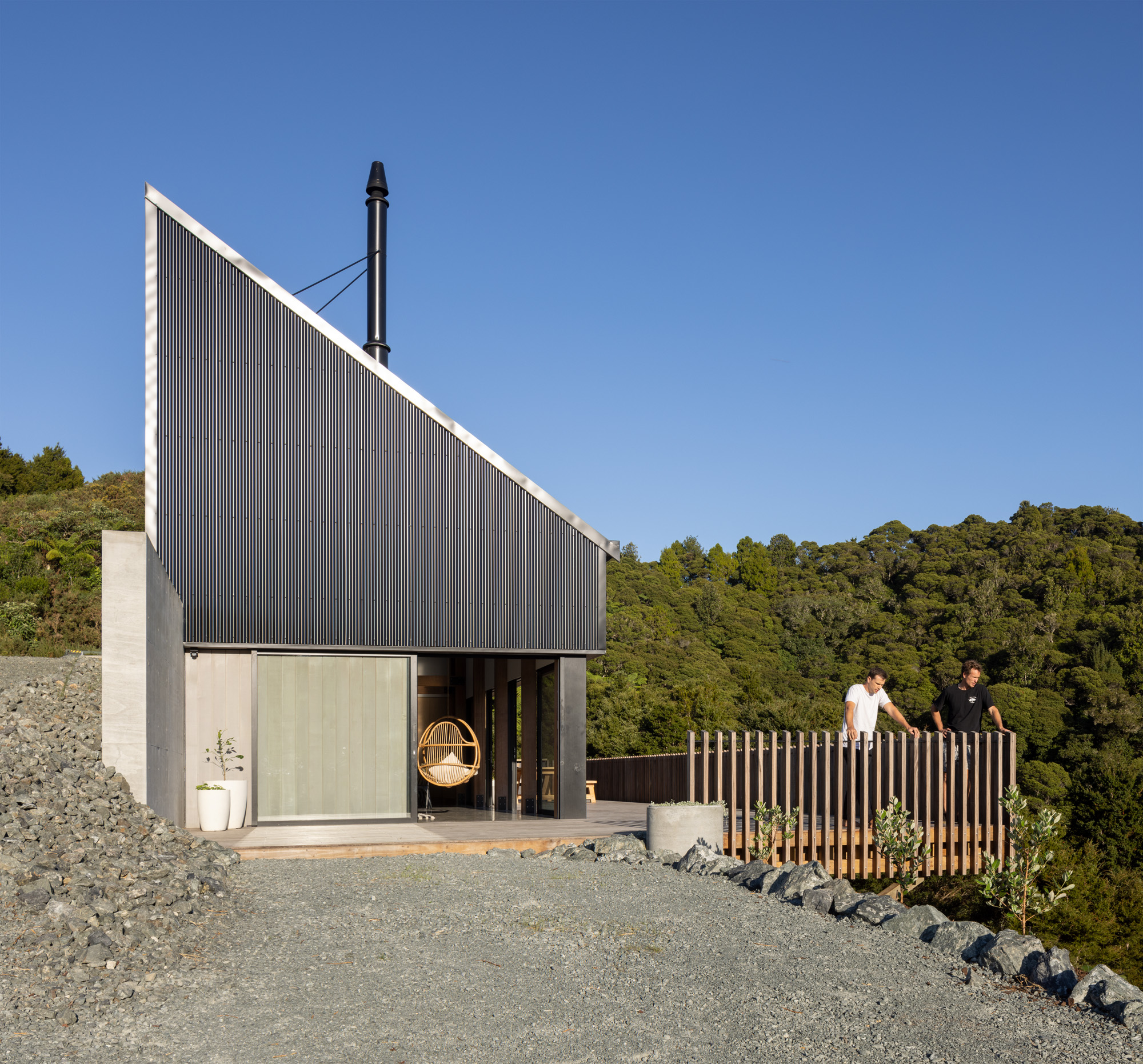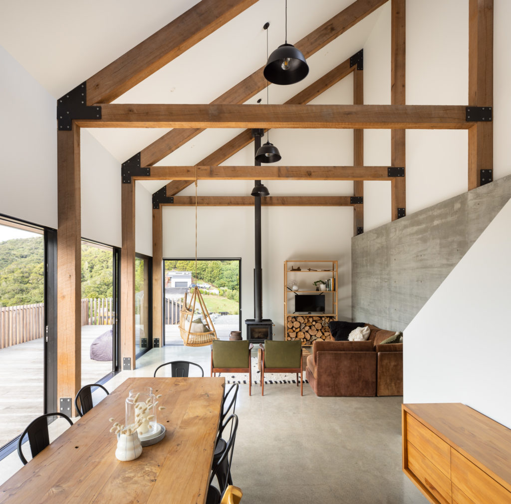 Toby and Amy Chapman-Smith would come to this land, sit on the ridge, and watch kererū swoop among the trees. Years later, married with two young sons, the couple decided to buy the site and design and build their first home.