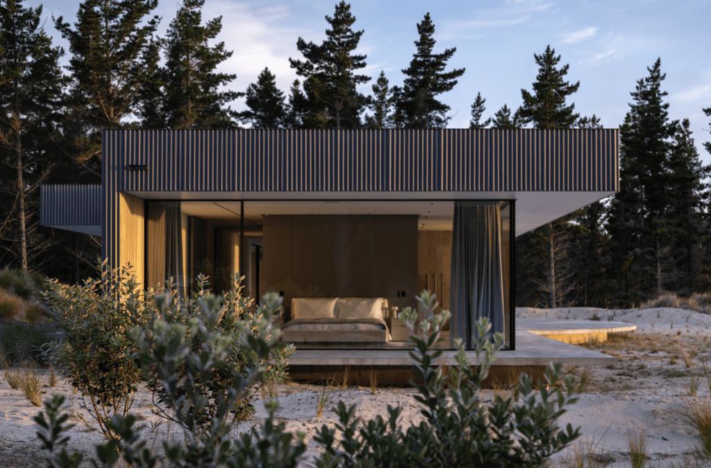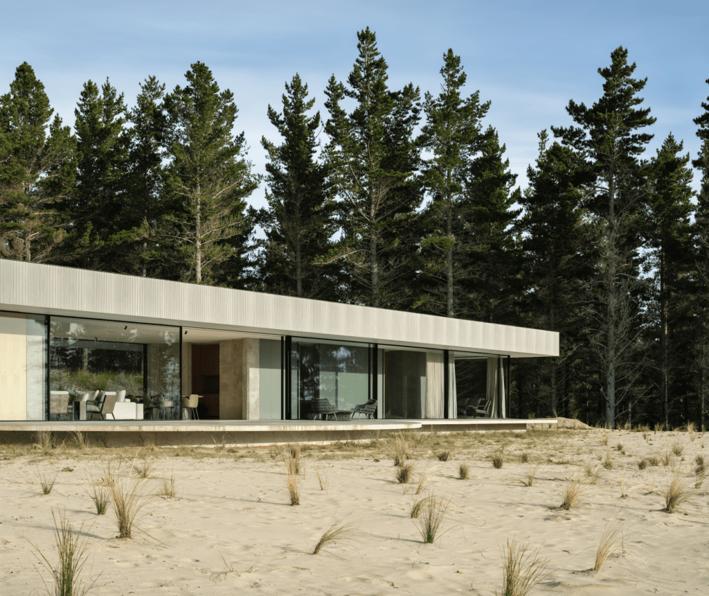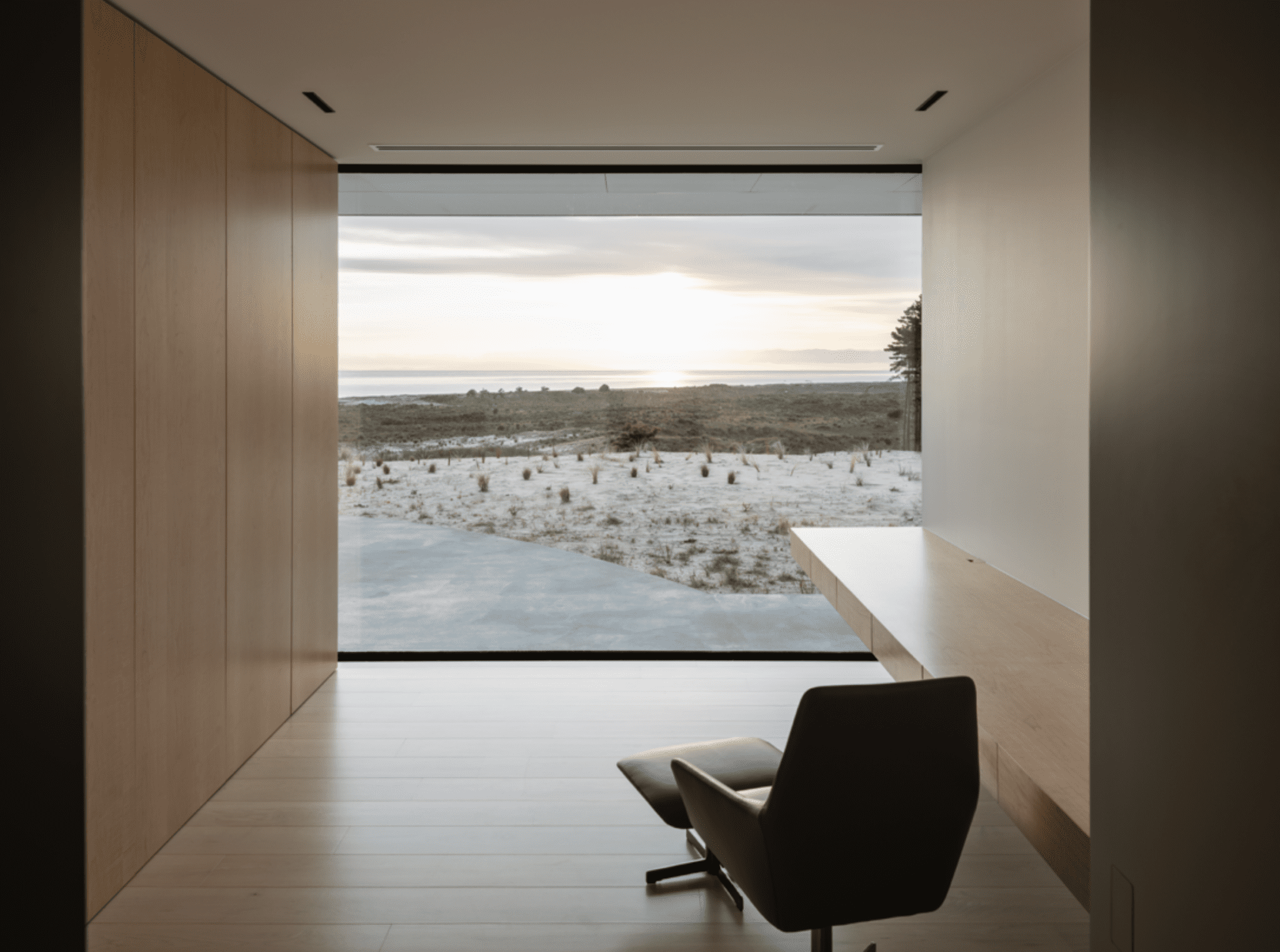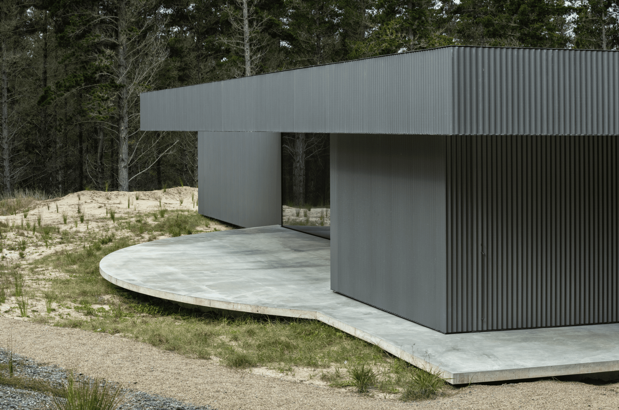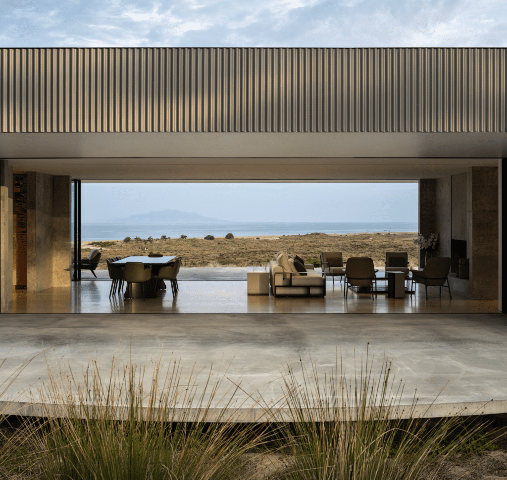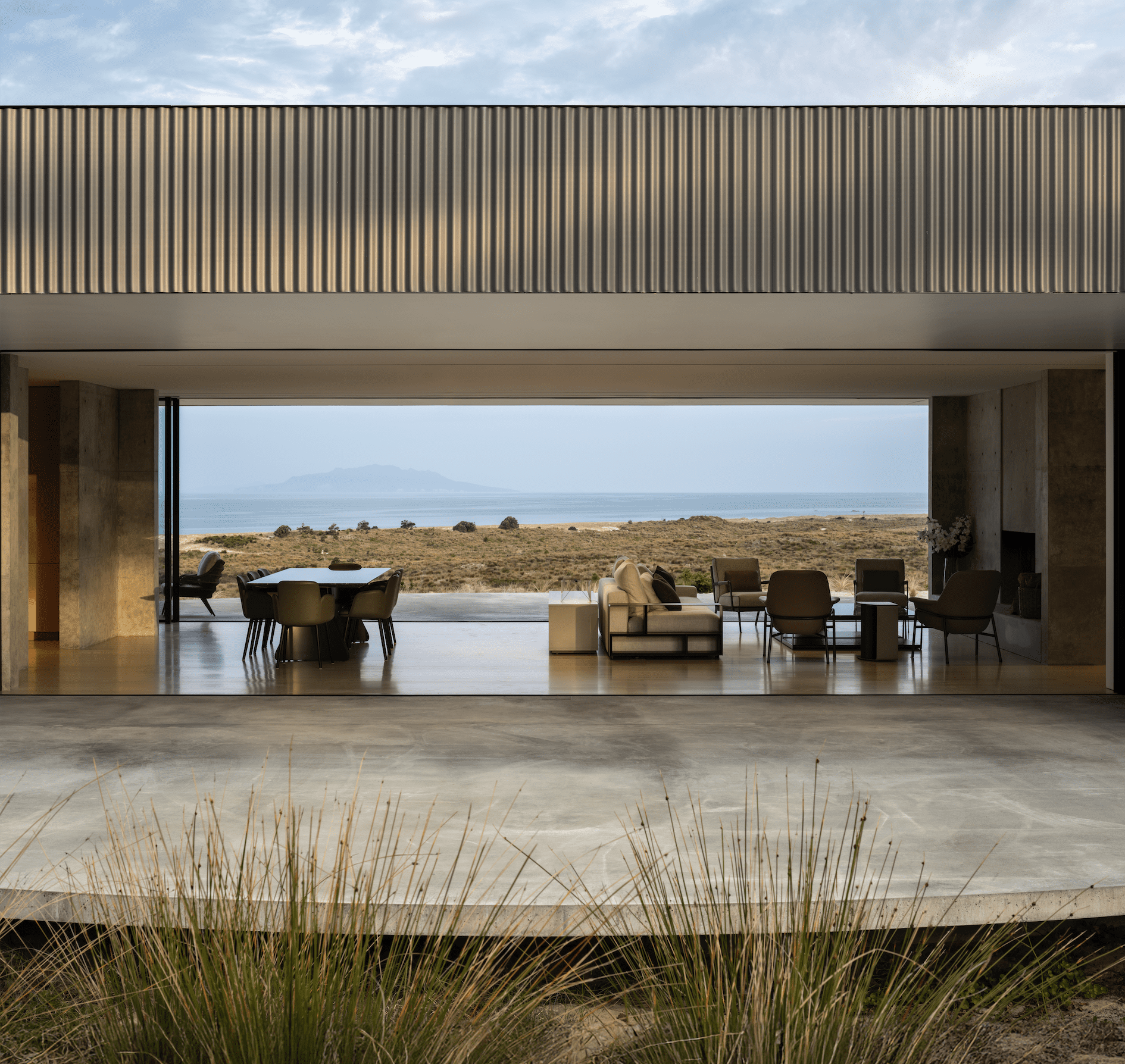 Some years ago, Pattersons was approached by a couple — who reside in Australia — to create a holiday home among the golf links of Tara Iti. The house was to be a minimalist space, a sort of encampment to spend the night while the days were devoted to the golfing opportunities next door.