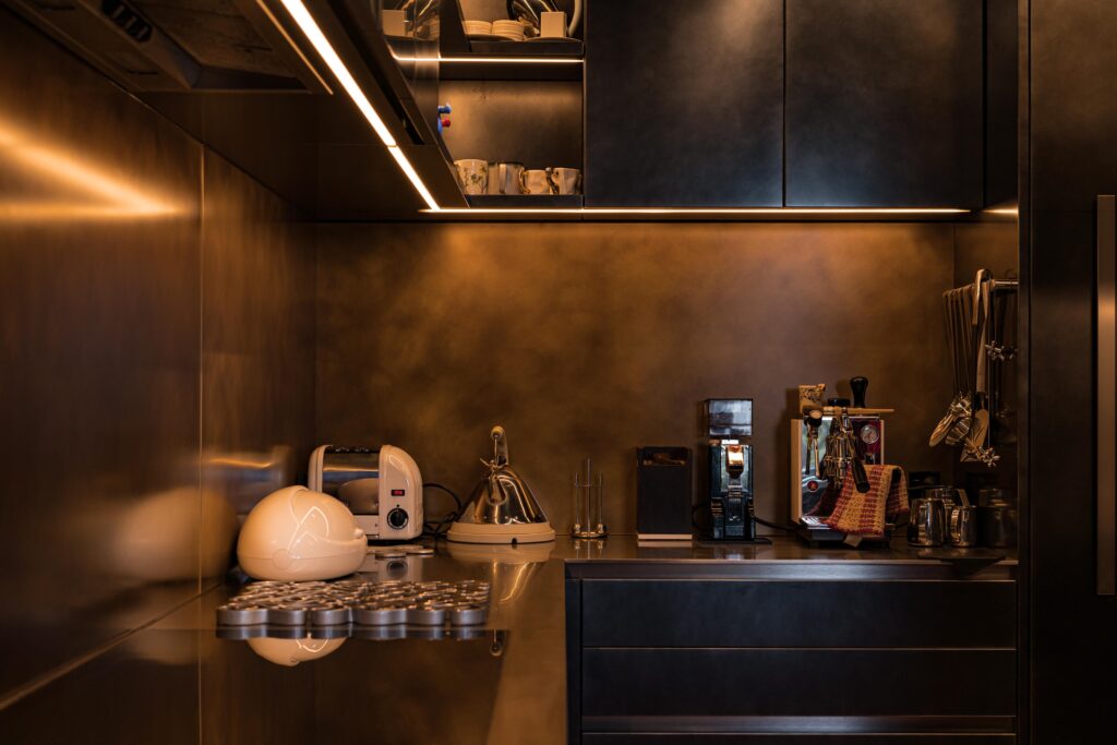 “Structurally, the house was very complex. Essentially, it has an in situ concrete spine from which the cantilevers pull through. It required a lot of structural steel interwoven with poured in situ concrete, and the concrete became the finished