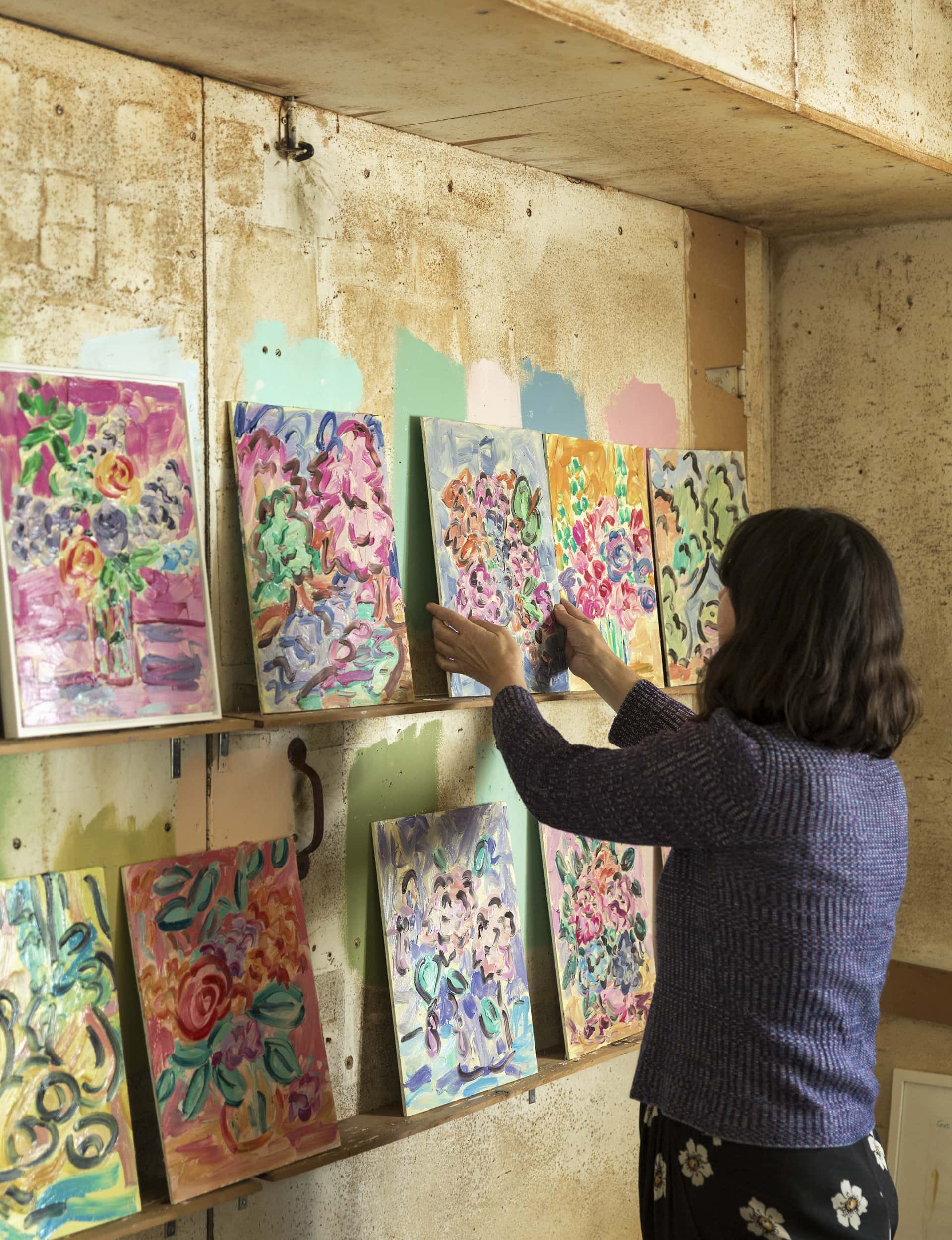 Barber – also a well-known contemporary painter – was critical to one of the final moments in the house, too. Both Dan and Kirstin are known for work that is messy and expressive but, possibly not surprisingly, they intended to paint everything a sort of gallery-like white. Barber convinced them to paint the handrail in the stairwell bright yellow, and the ceilings in the bedrooms washed-out pink and green, so they appear to float. It’s a magical, gentle touch that gives each room its own personality.