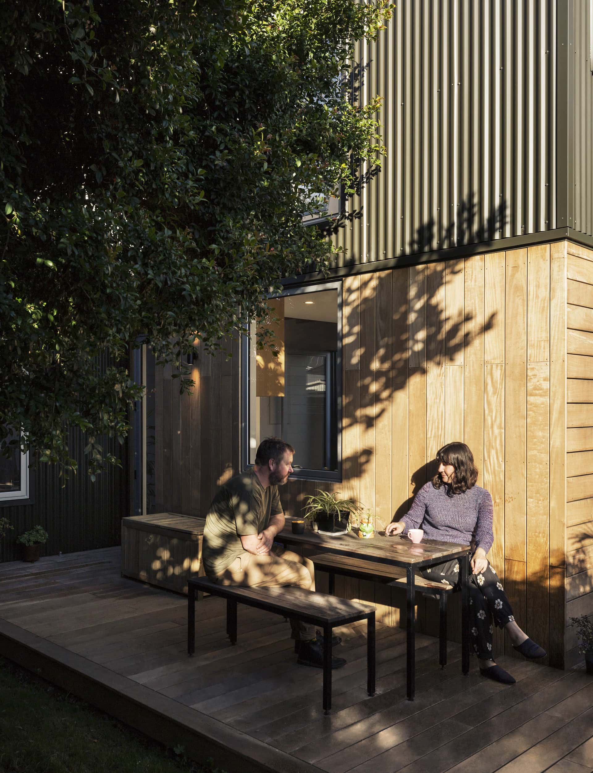 And so, at the end of last year, Dan, Kirstin and Gus moved into an 86-square-metre house clad in green corrugate steel designed by Hamish Stirrat of Fabricate Architecture. In all, 10 people, including four Carlin cousins and Dan’s son Ness on school holidays, occupy a site that once housed four people. “After we had Gus, Dad asked quite regularly if we wanted to build on the back yard – but I always said no,” says Kirstin, laughing. Ultimately, though, the pull of family and the cost of living in Auckland drew her back.