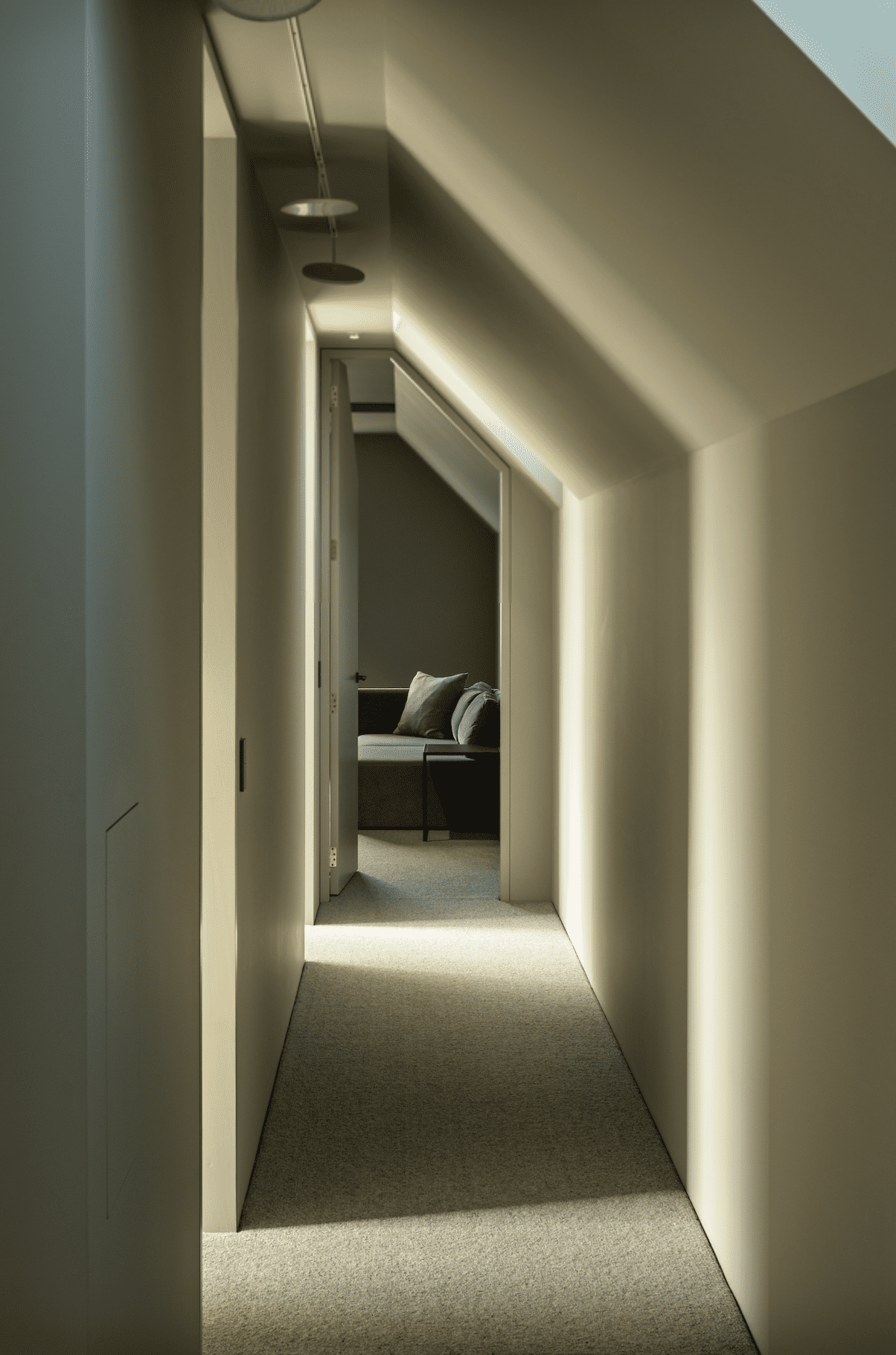 Meticulously crafted, the dormers appear sleek against the weight of textured concrete. The clients, drawn to the confident lines and robust materiality prevalent in the studio’s work, are a couple with two children in their early teens.