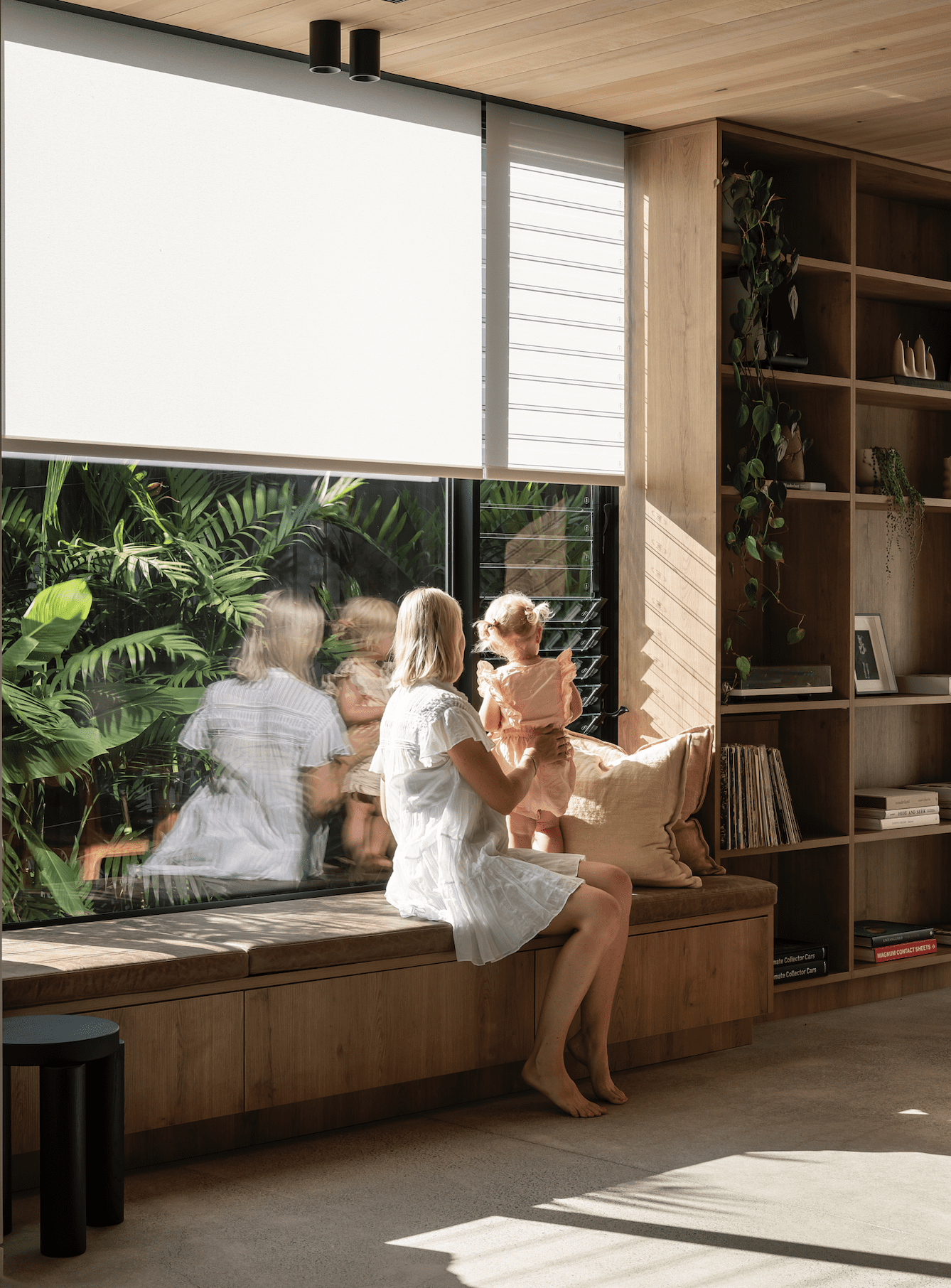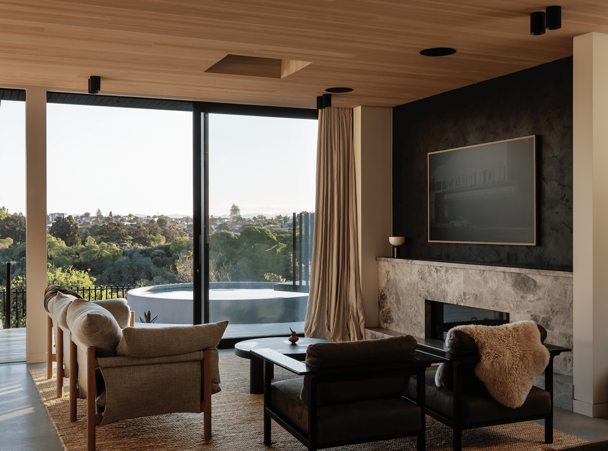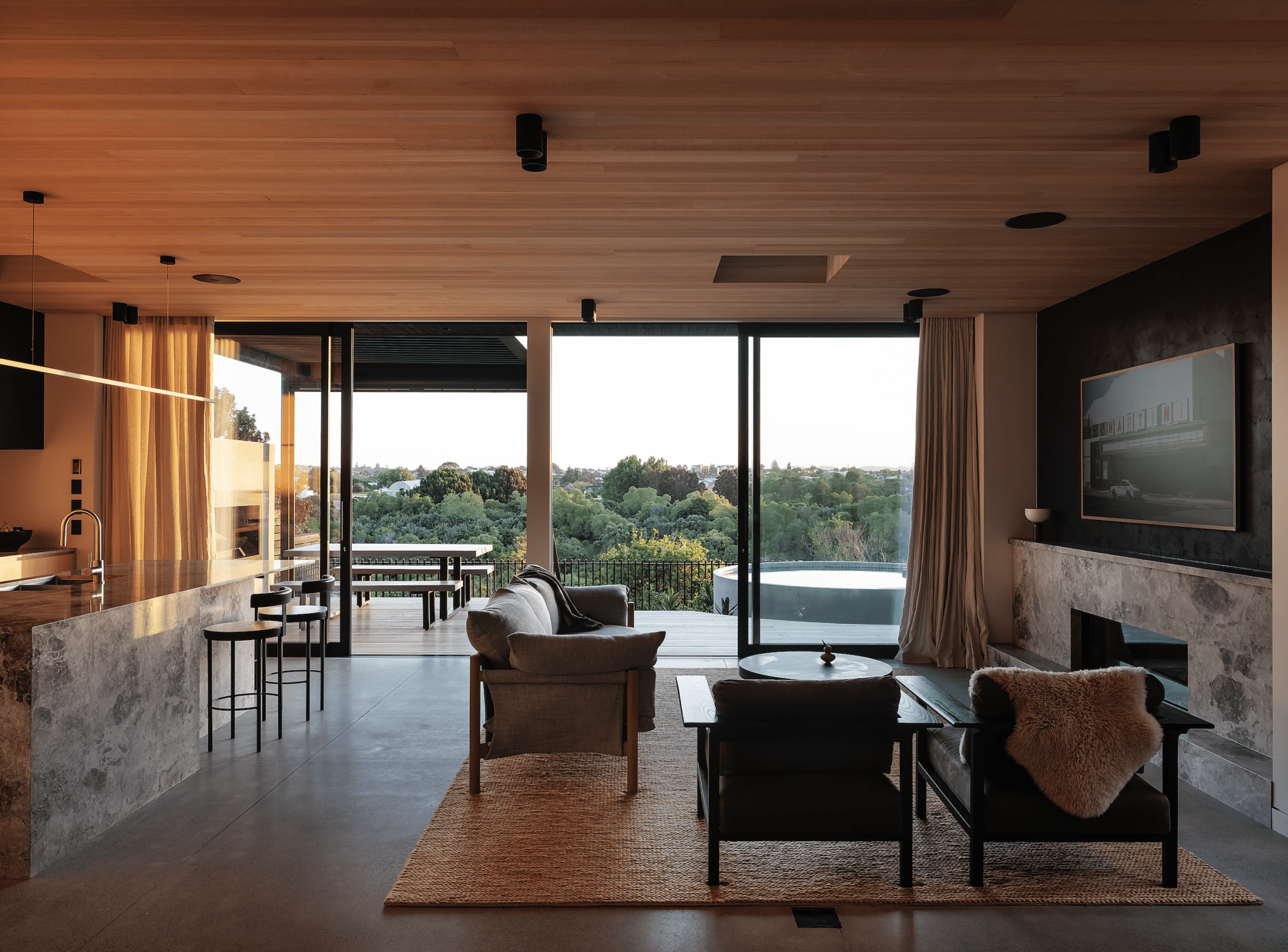 “It’s a massive contrast, a complete retreat where you can shut off and have that darkness. It has a small footprint but it works. You can fit five people in there as a breakaway, and when the cavity slider is closed you wouldn’t even know it was there,” Evelyn says.