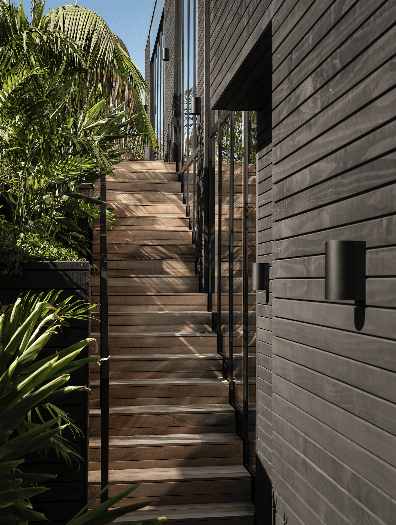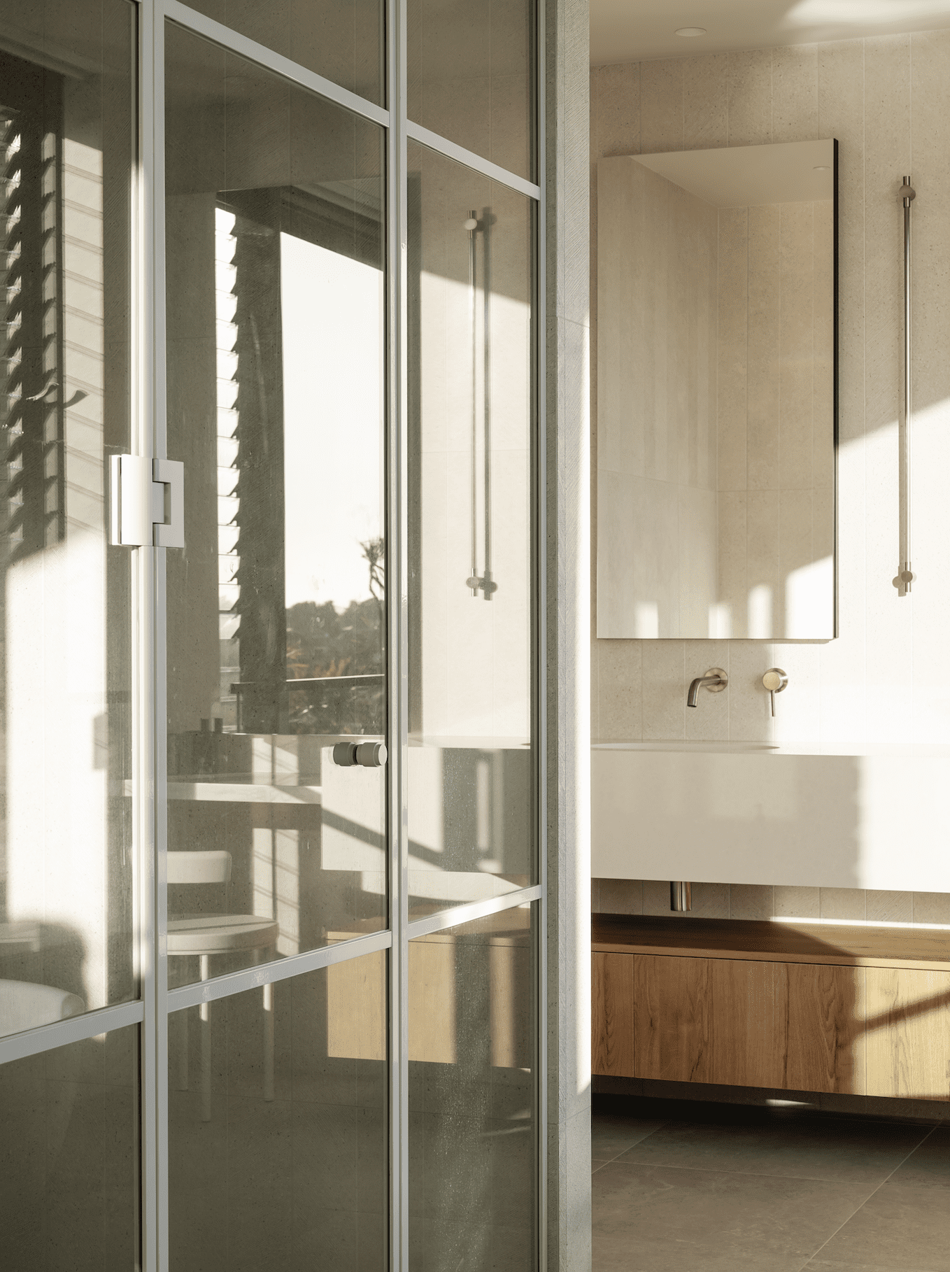 Due to the established neighbouring home to the west, requirements meant the glazing had to be tempered with a level of privacy. The solution was found in a striking floor-to-ceiling vertical balustrade.