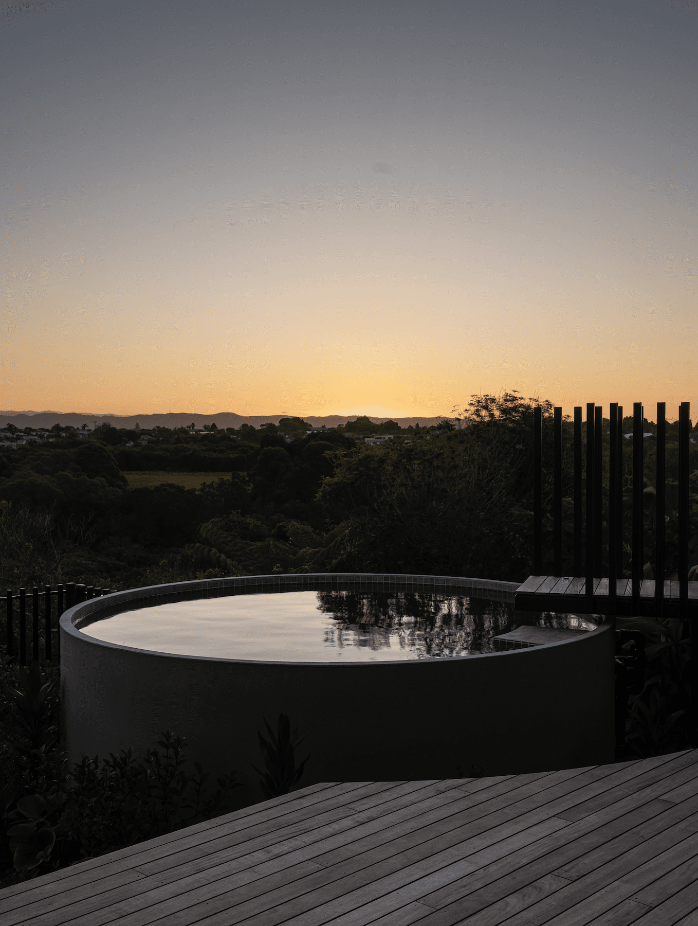 “We used that as a barrier and back filled, but where the pool is [the south-west corner of the site] we couldn’t bring the ground up so we’ve used a 2.7m-high by 3.7m-diameter 22,000-litre concrete tank pool.”