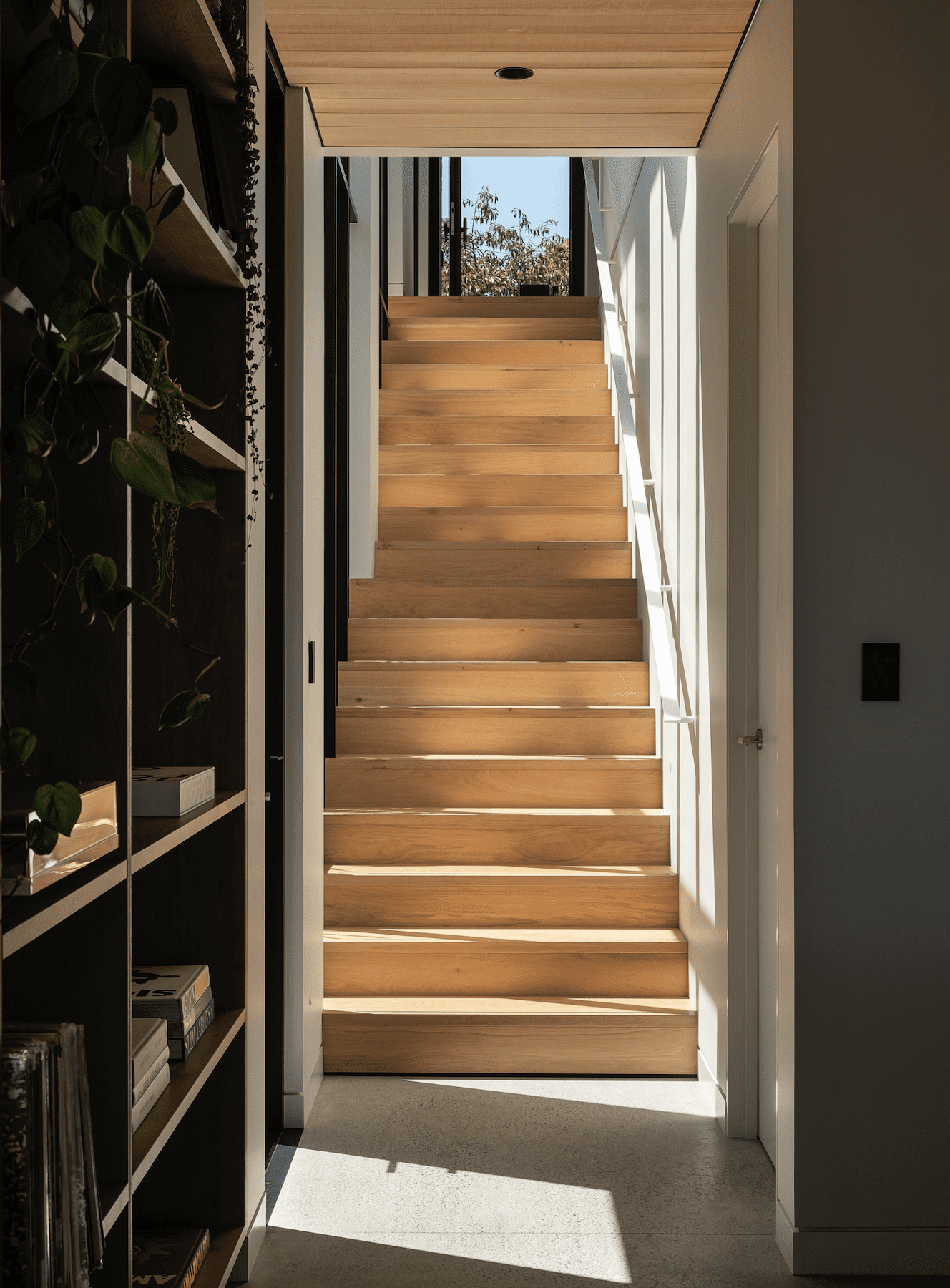 Enter architect Evelyn McNamara and the project quickly began to take shape — ultimately delivering a dynamic family home with an unassuming street presence and a layered internal journey that unfolds slowly as the site descends, opening out at its lowest point to a brooding south-facing view.