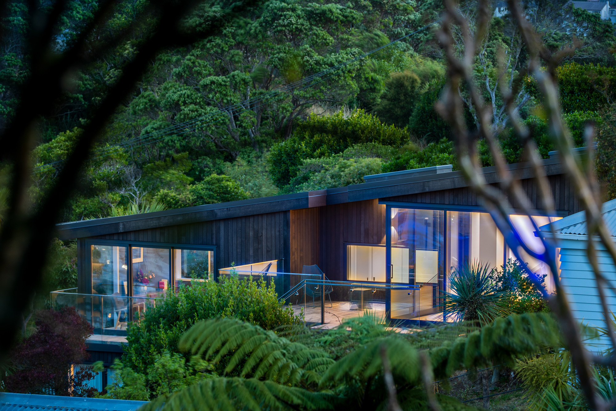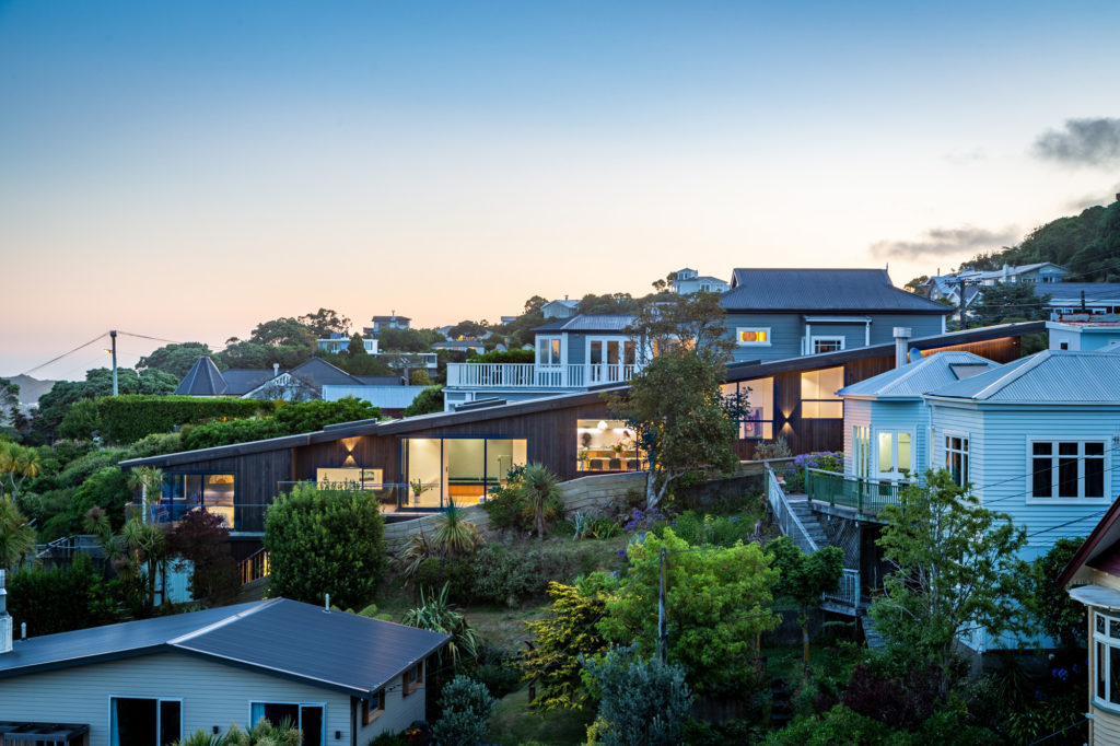 Site constraints often produce the most interesting buildings, necessity being the mother of invention. The design of this NZIA award-winning house in Brooklyn, Wellington, on a steep section just 10 metres wide but 43 metres long, has been sculpted by the surrounding topography and is in conversation with the many walkways zig-zagging up and down the hillside.