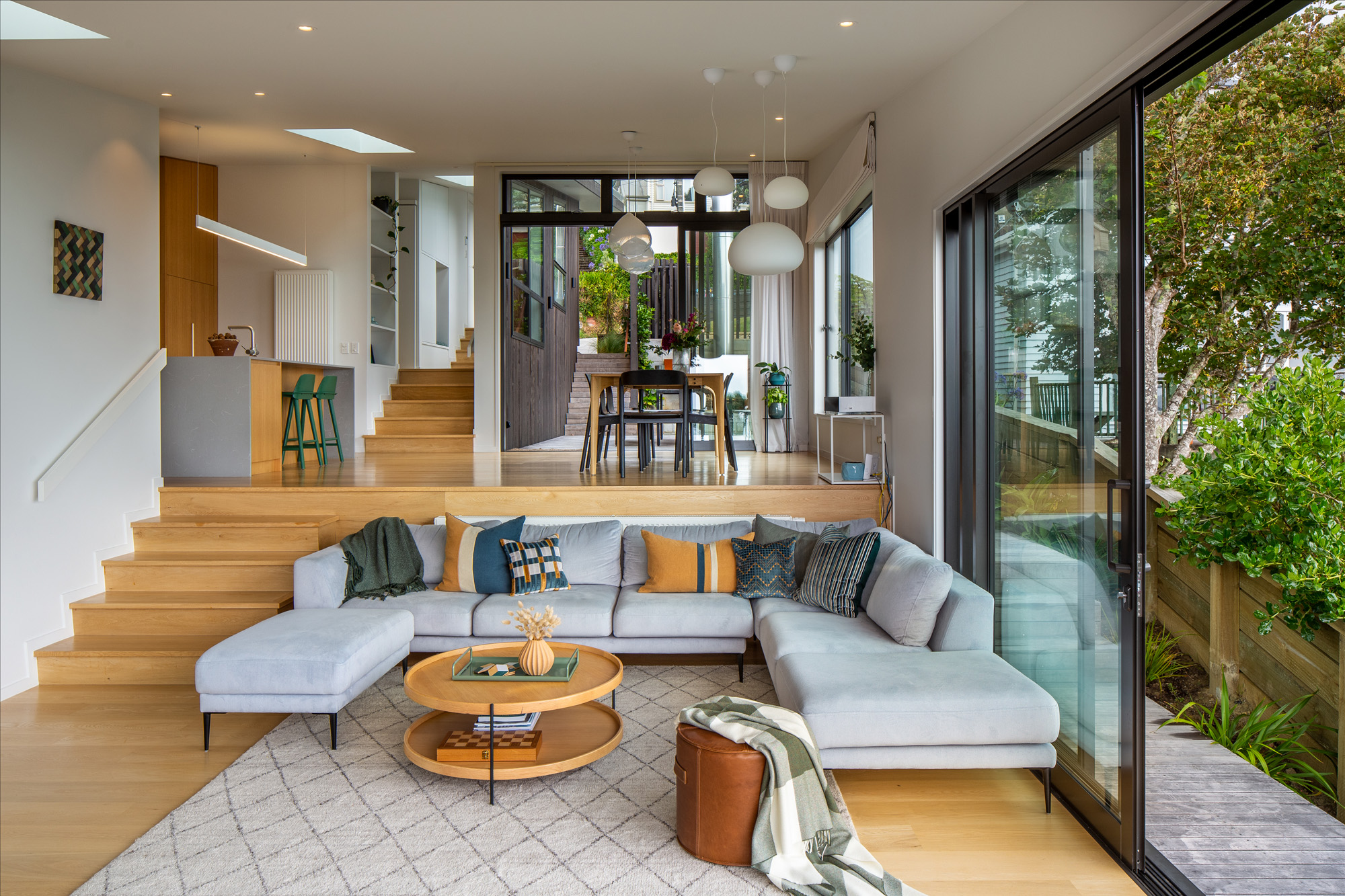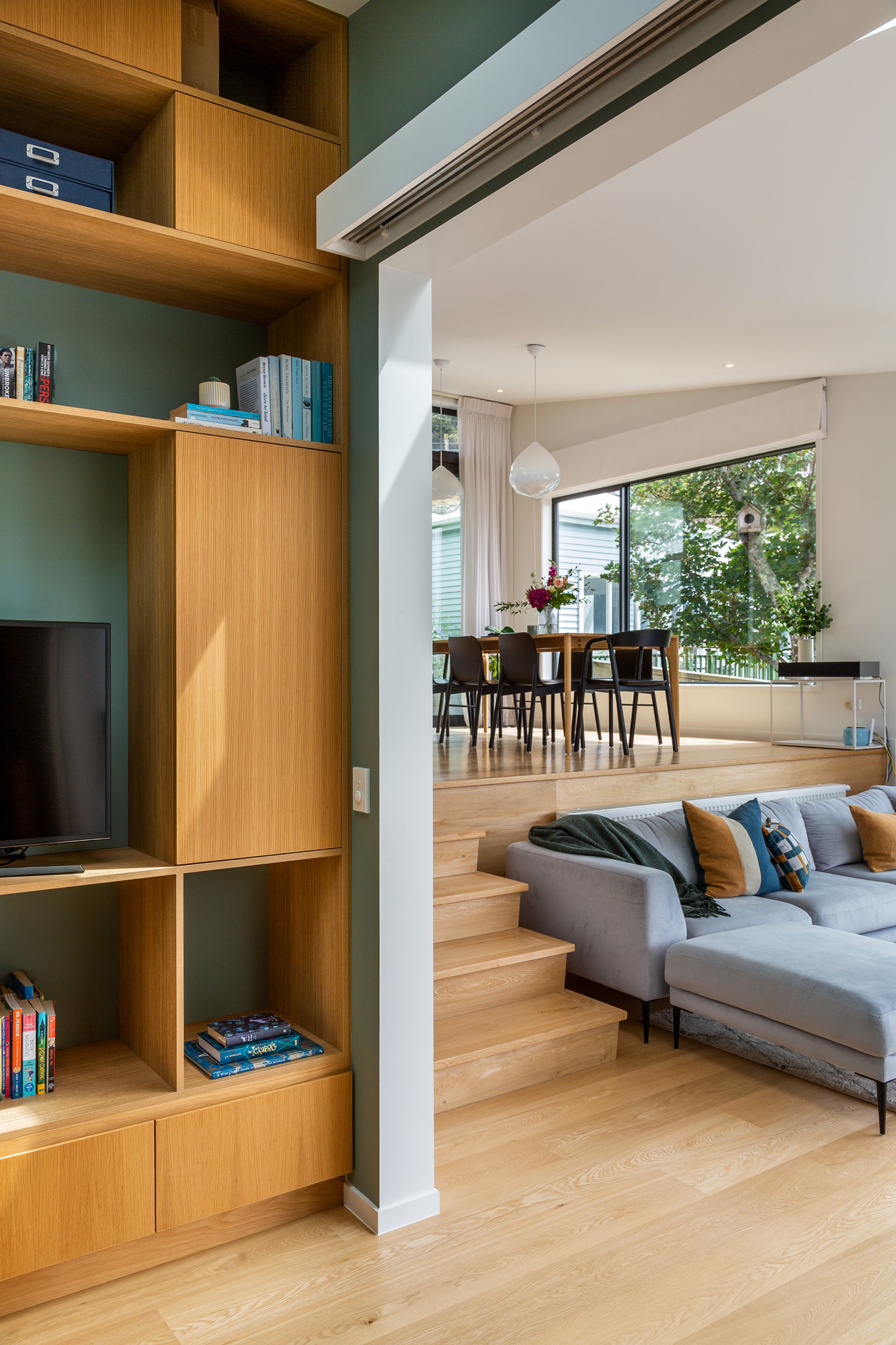 “We love it because it nicely sections off quite a big space,” says Ali. “If you’re sitting on the couch it feels quite cosy but when you move around it’s really open and light and airy.”