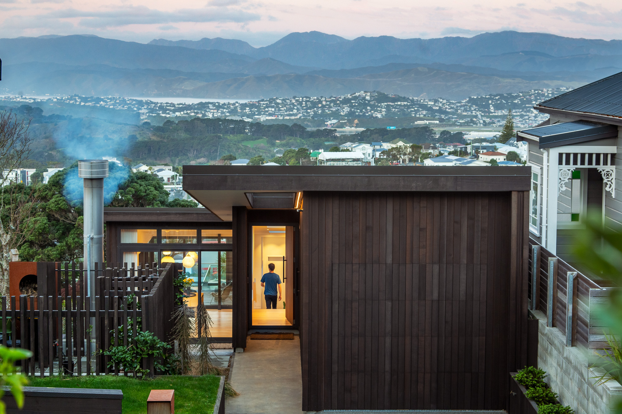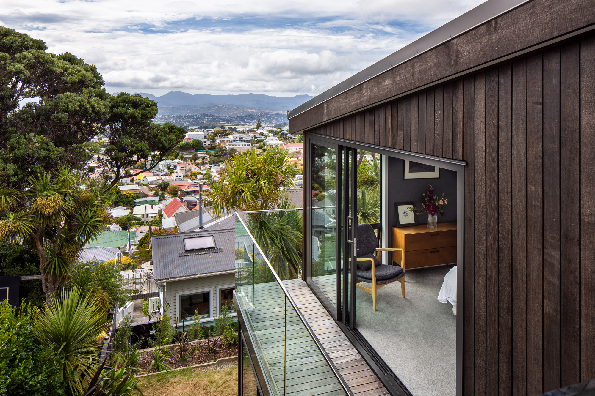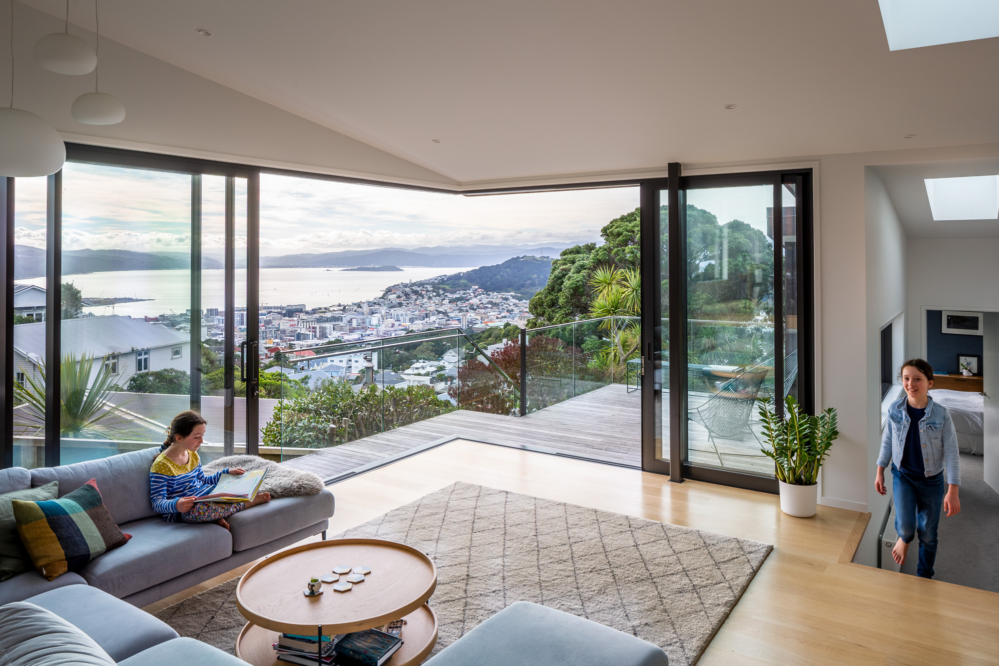That grandstand panoramic view over the city and Wellington Harbour, and beyond to Matiu/Somes Island, was one of the key requirements of the client brief, along with maximising the sunlight.