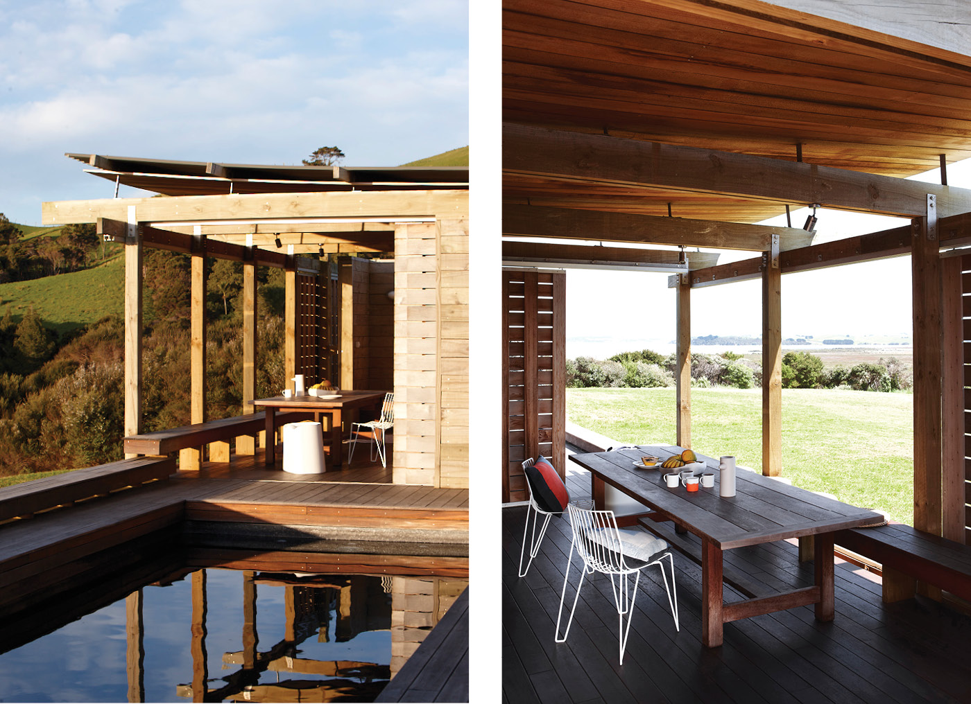 This part of the Kaipara is mostly mud flats and mangroves, rendering swimming nearly impossible except at high tide. Thanks to the Herbsts, it’s now possible to take a dip in the pool, sit around the table and cook over an open fire as the sun goes down. If that’s not essential holiday living, what is?