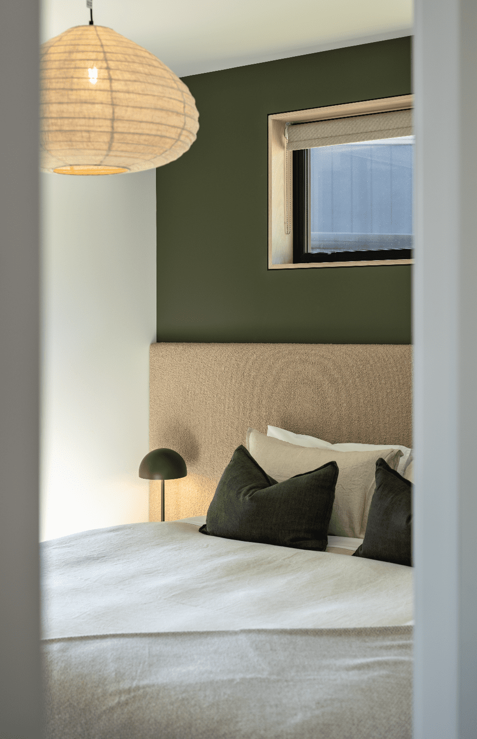 Every interior addition has been considered, from the forest-green blankets and cushions in the bedrooms to the oversized Japandi-style lanterns in the double height foyer.