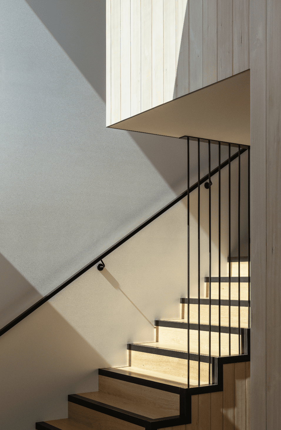 There’s more warmth to the colour tones and more attention [given] to the interior finishings, because of that notion of hygge.” Inside the home, blonde timbers make another appearance — on the floors, the kitchen cabinetry, the bunks, and built-in storage throughout the spaces.
