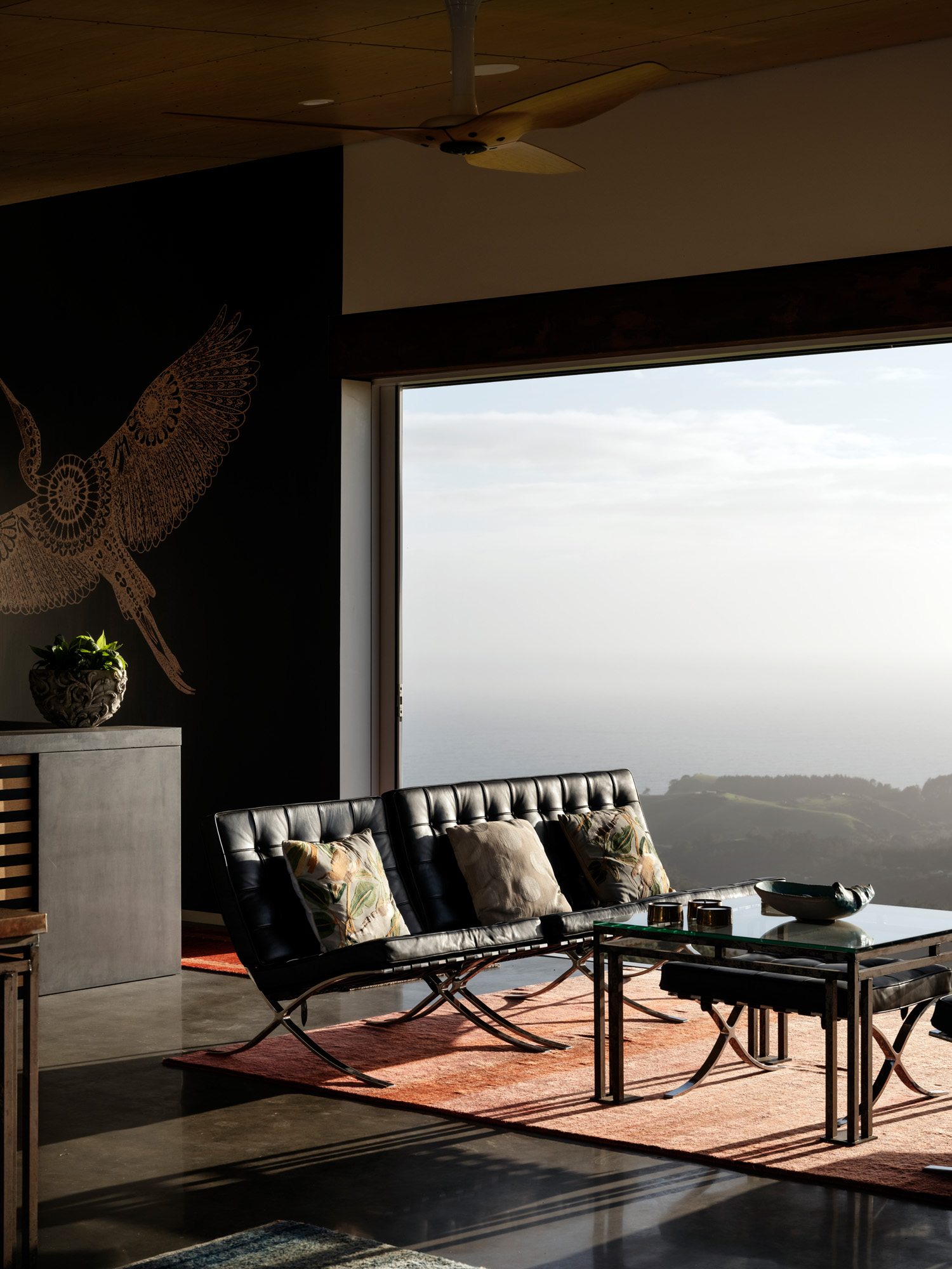 That first day traversing the land, considering the views of hill and ocean, and understanding the history of the boulder-strewn wild landscape, Bret and Geoff were on the same path. They’ve never drawn up a formal brief, Bret tells us; they just understand each other and are open to ideas. Arguably casual, it’s a type of agreement that clearly works for this duo.