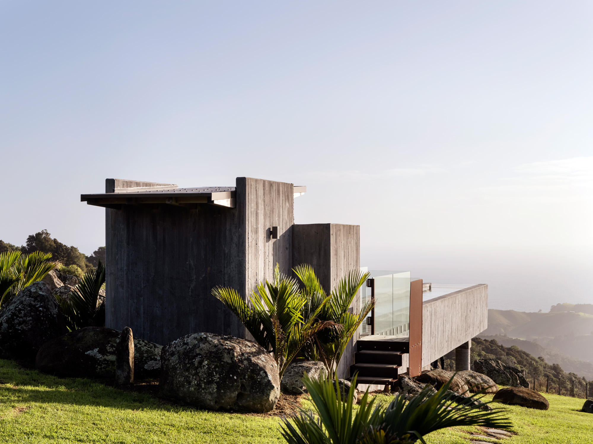 Looking out to the Cavalli Islands, the resting place of the Rainbow Warrior, it’s hard to consider another dwelling that would have suited the site more. The house floats, subtly, above the ground, careful not to take away from, but rather to take in, the land and its history.