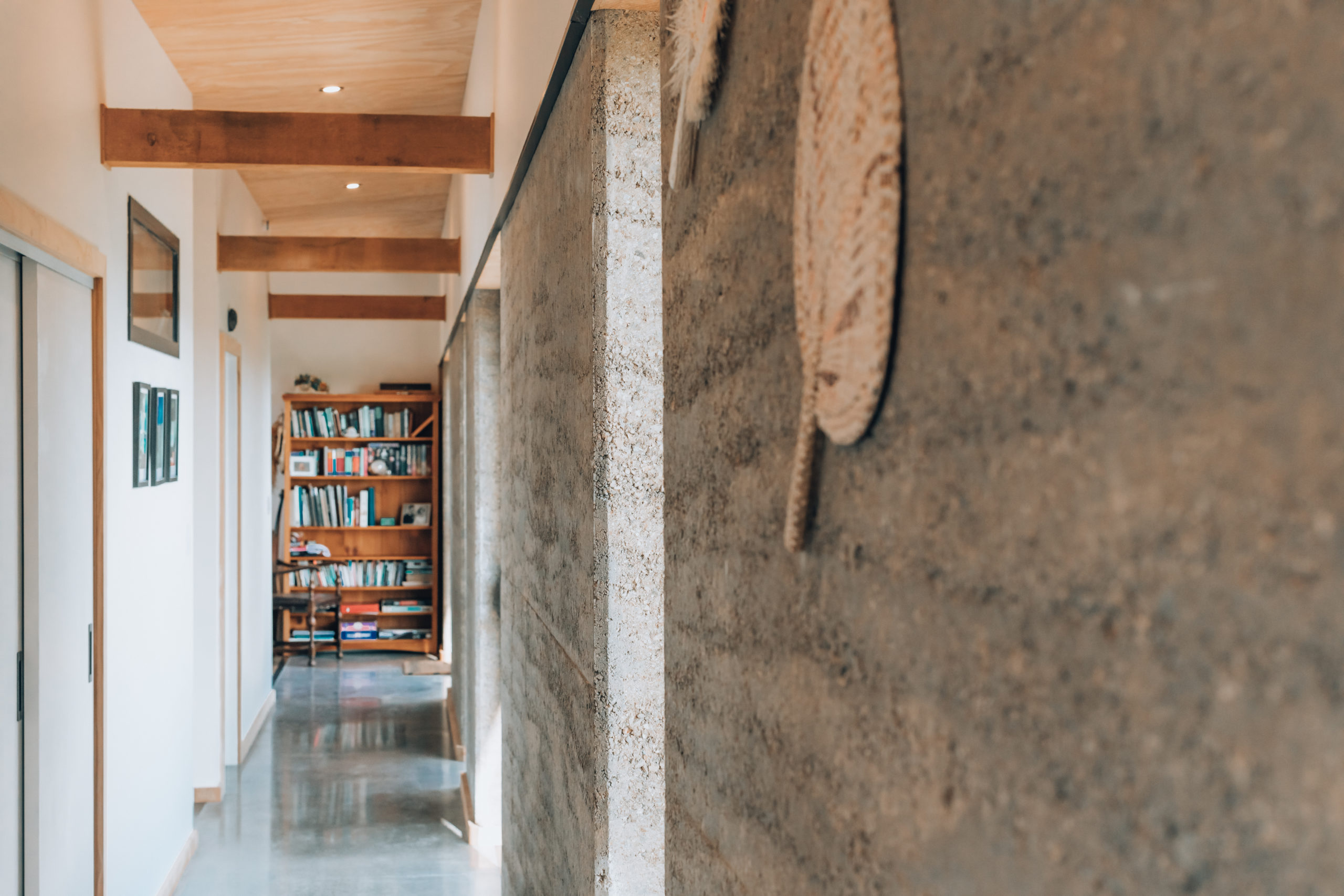 Sam McGregor: Rammed-earth walls are very durable. They last hundreds of years and require very little maintenance — no repainting or oiling and they don’t grow mould — so they require less resources for upkeep over their lifespan. They’re also low in embodied energy. At Modern Earth Homes, the aggregate we use for our stabilised rammed-earth walls comes from a local quarry so it is low impact in terms of processing and cartage.