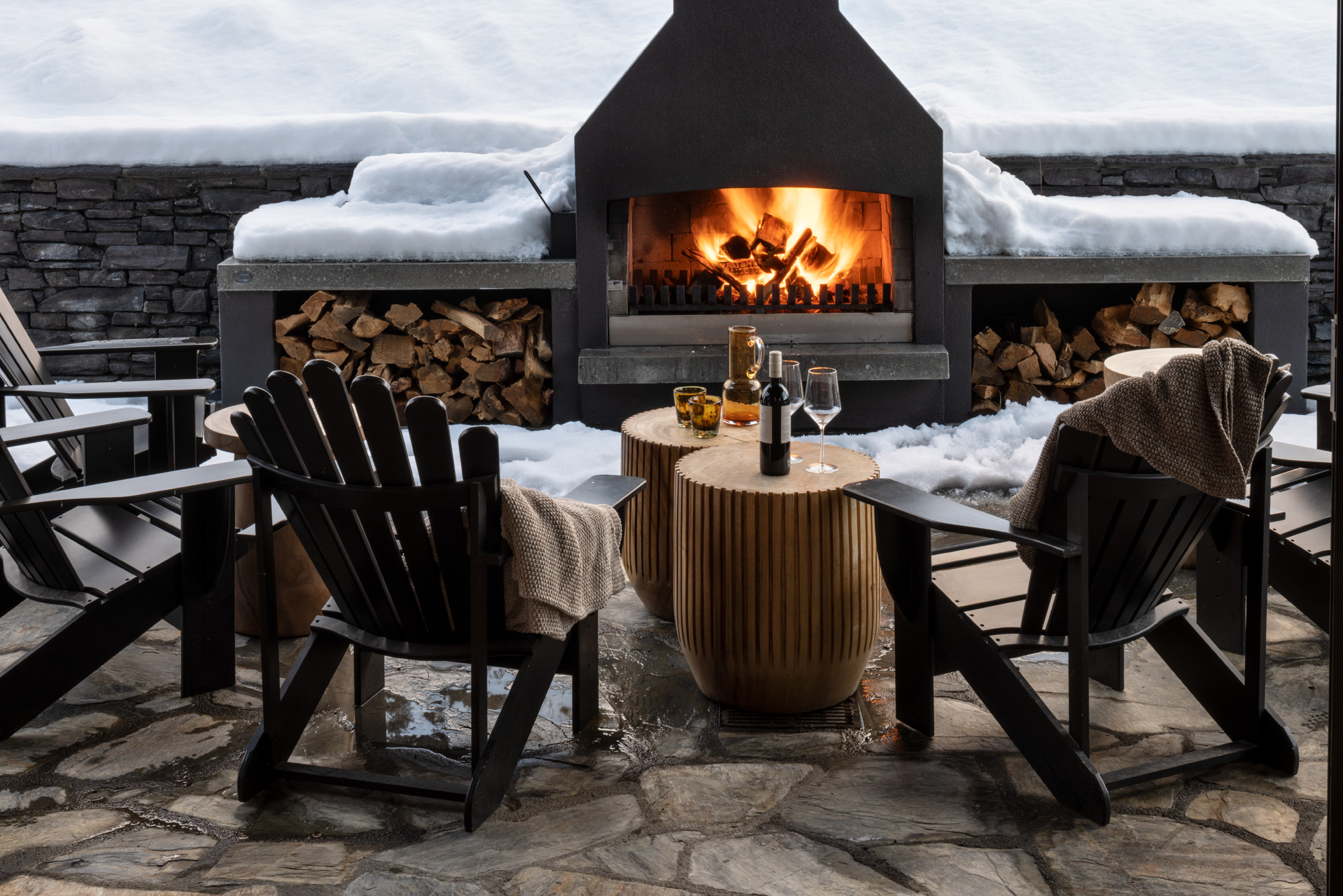 Fire and ice combine in a wintery alfresco area sheltered from the prevailing winds.