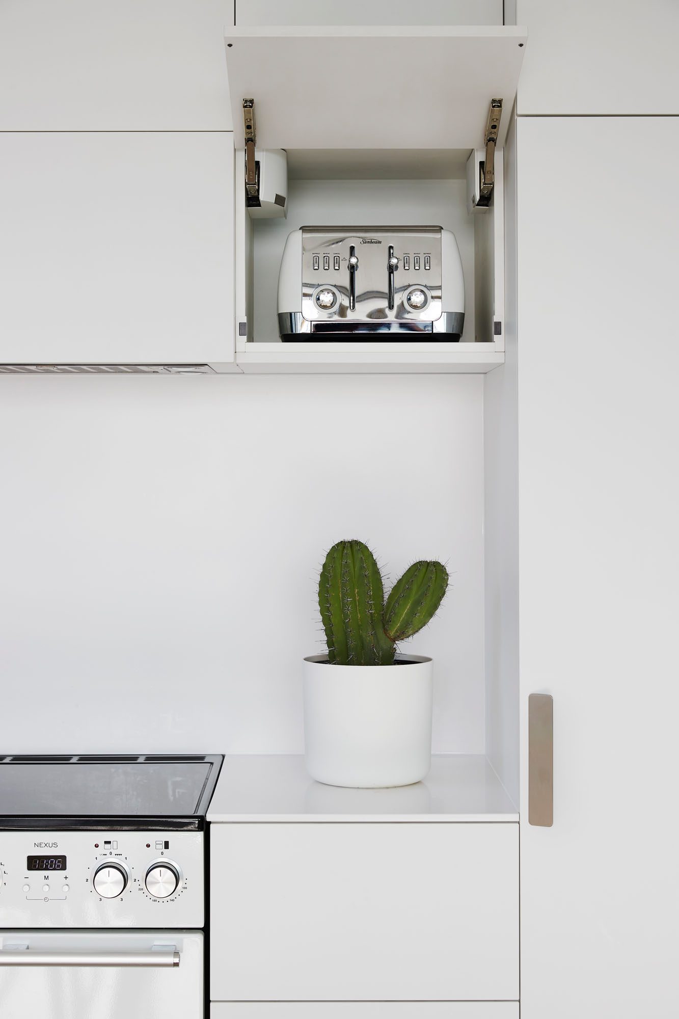 “By shifting to an L-shape, the kitchen gained new bench space, improving day-to-day ease and functionality,” Amy explains. “By extending the kitchen against two walls, we doubled the linear length, gaining three metres of additional cabinetry. Even though this means we lost 600mm of lounge space, gaining the storage was more valuable.”