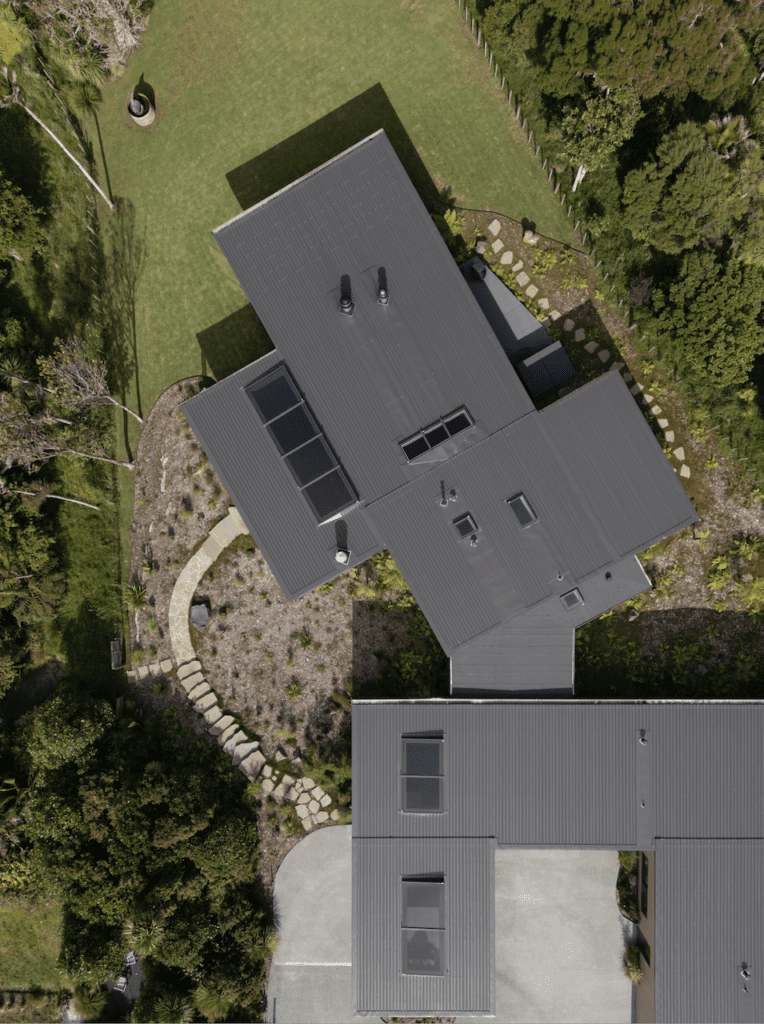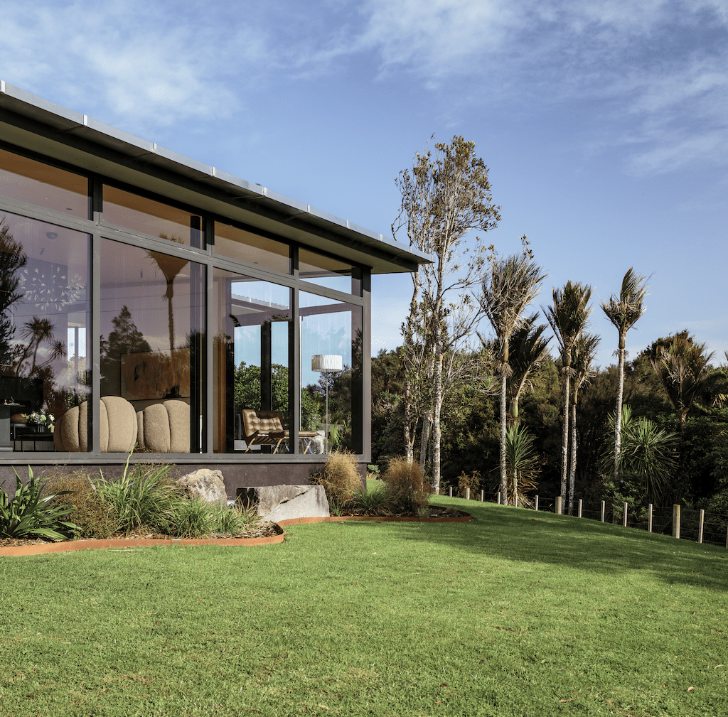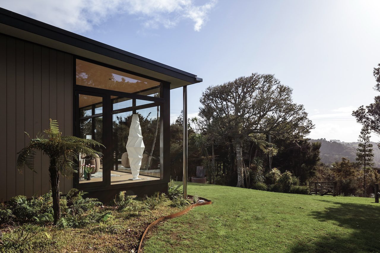 This is a place of some constraints, with north-westerly winds from the Tasman Sea accelerating as they move up the ridgeline and hitting the top of this property with ferocity. It was a problem the owners specifically asked Adam to deal with.