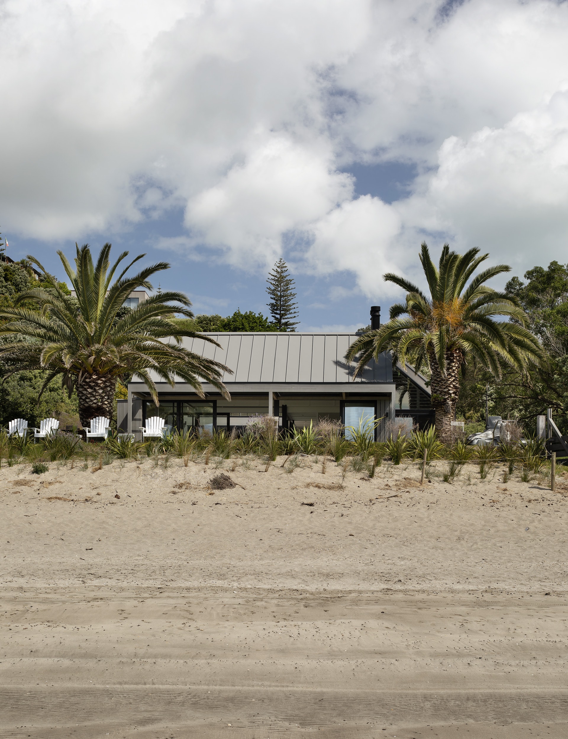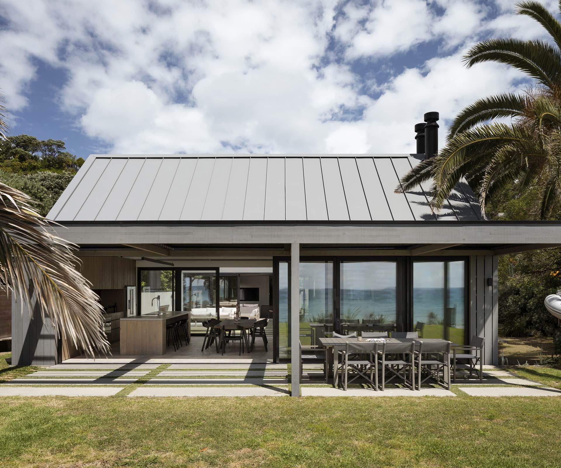 Sitting on fairly public site, this Waiheke Island holiday used clever design and thoughtful material choices to quietly slip from view