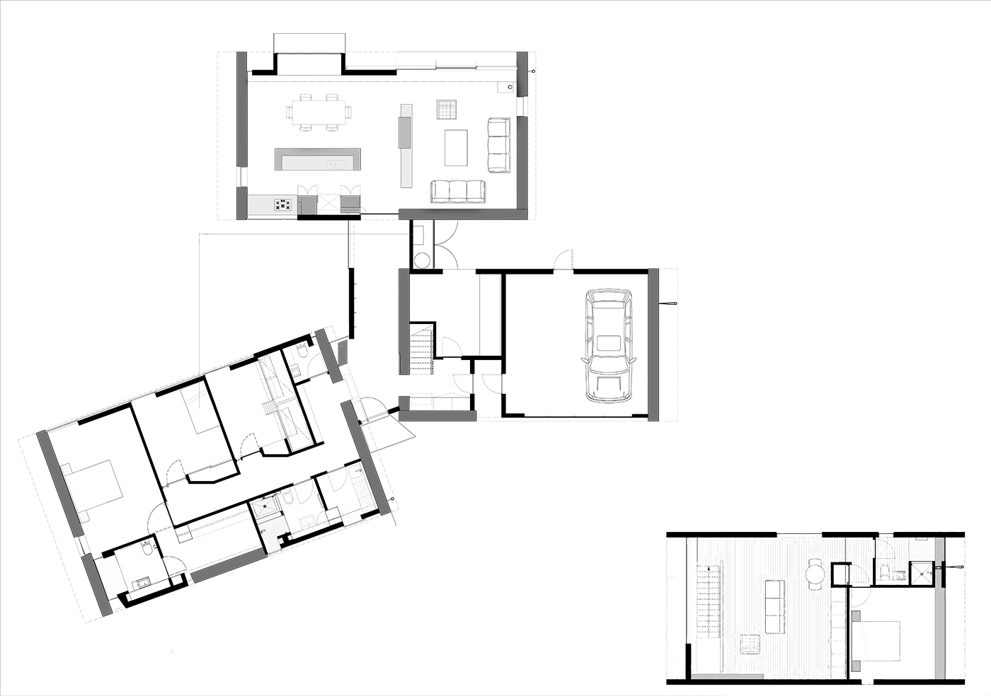 Justin Wright They wanted the ability to future-proof the place with a separate pod [that could work as rental accommodation], and it also means that when Stu’s family come out to visit from the UK they feel like they have their own space. The other two pods are a result of separating out the living space from the kids’ rooms. The pod at the front was a way to create the courtyard off the kitchen.