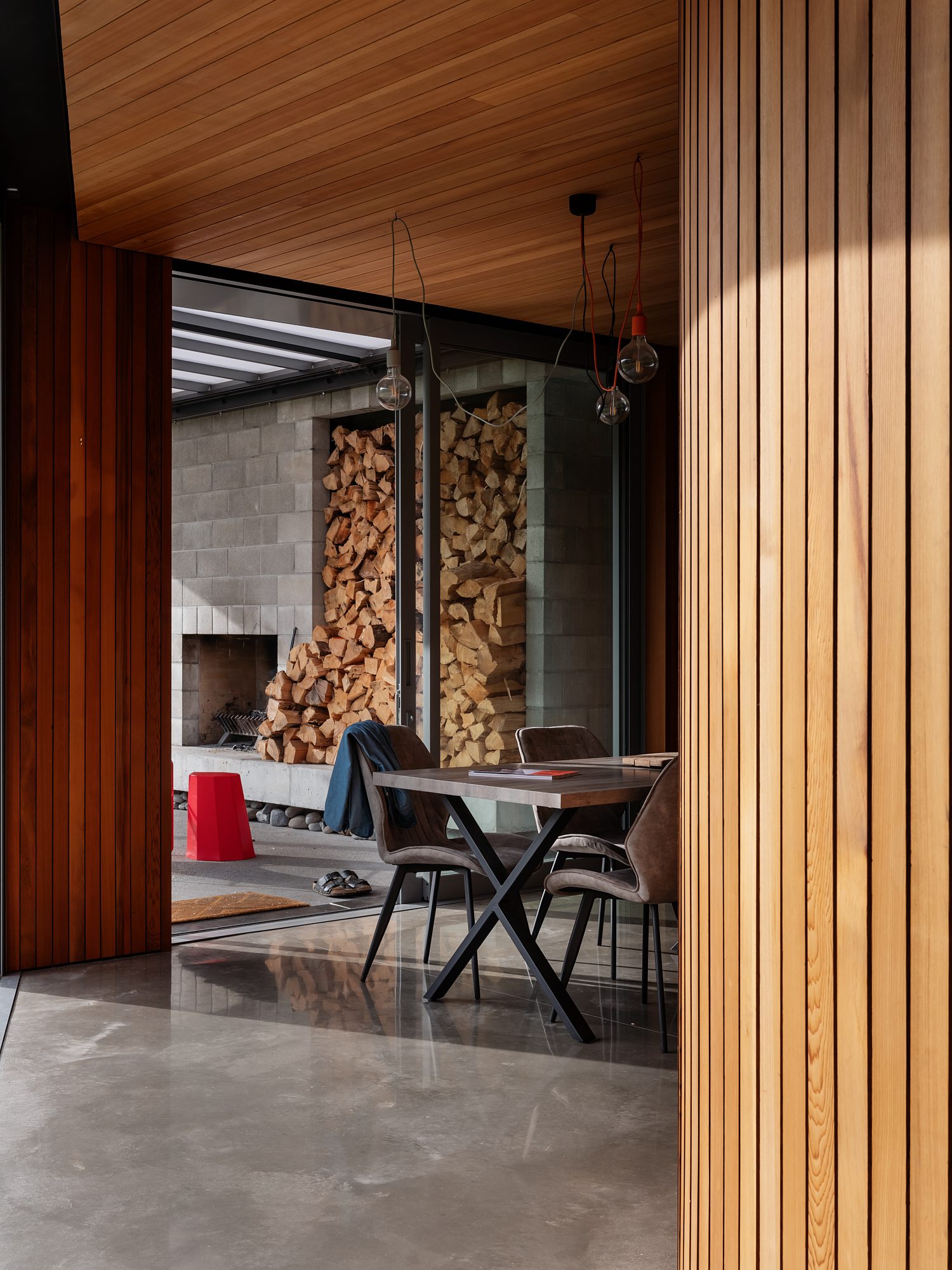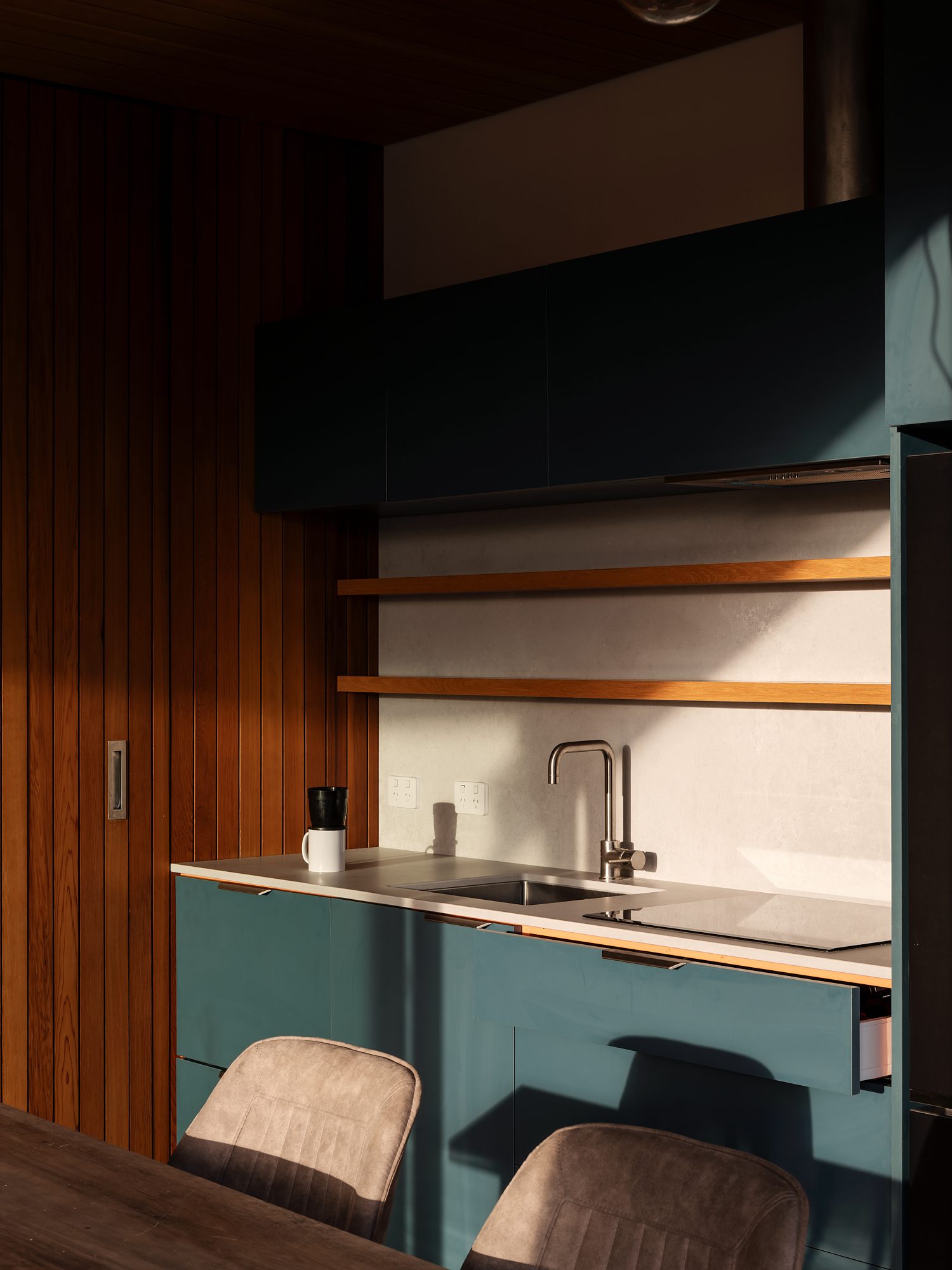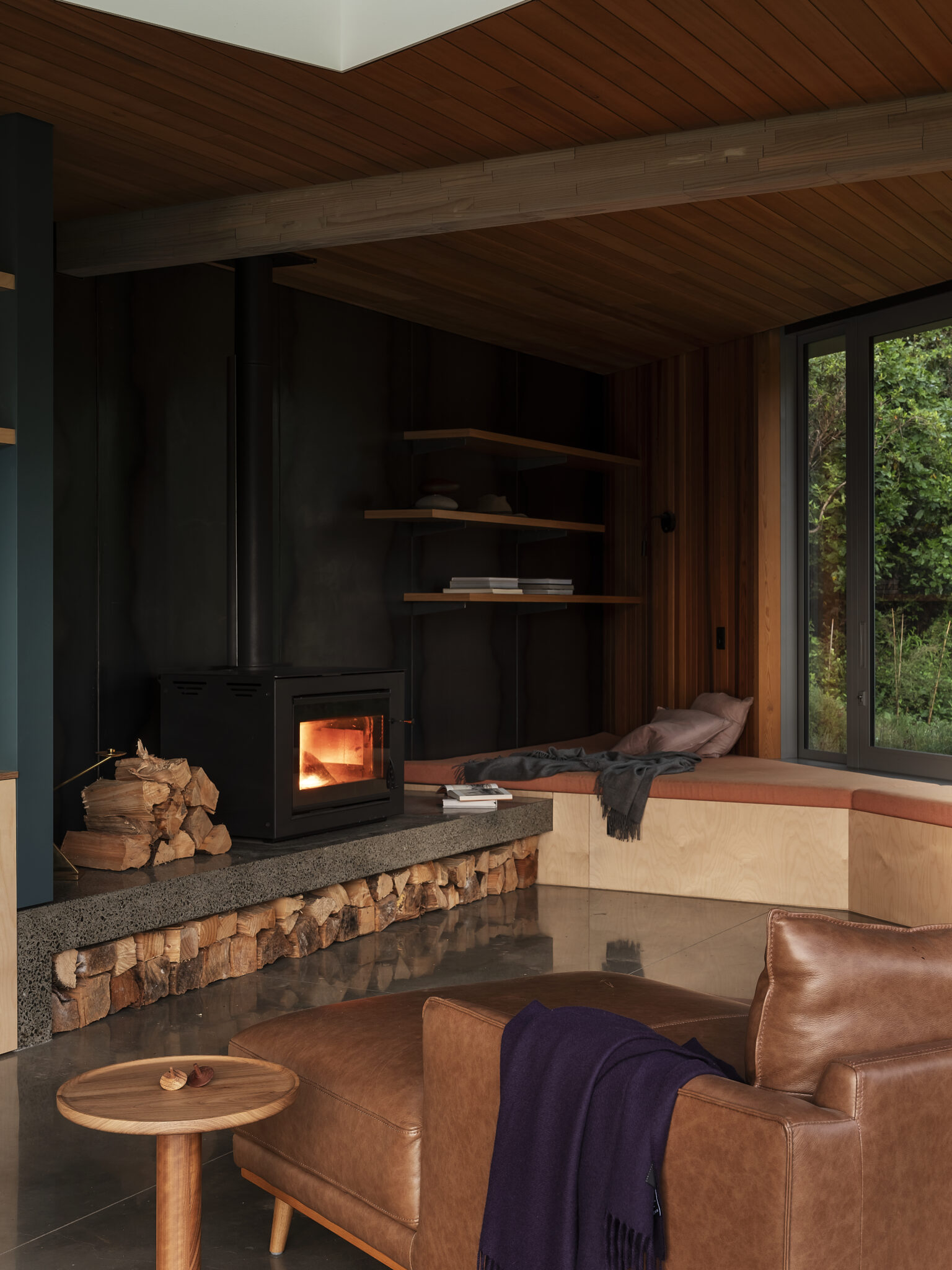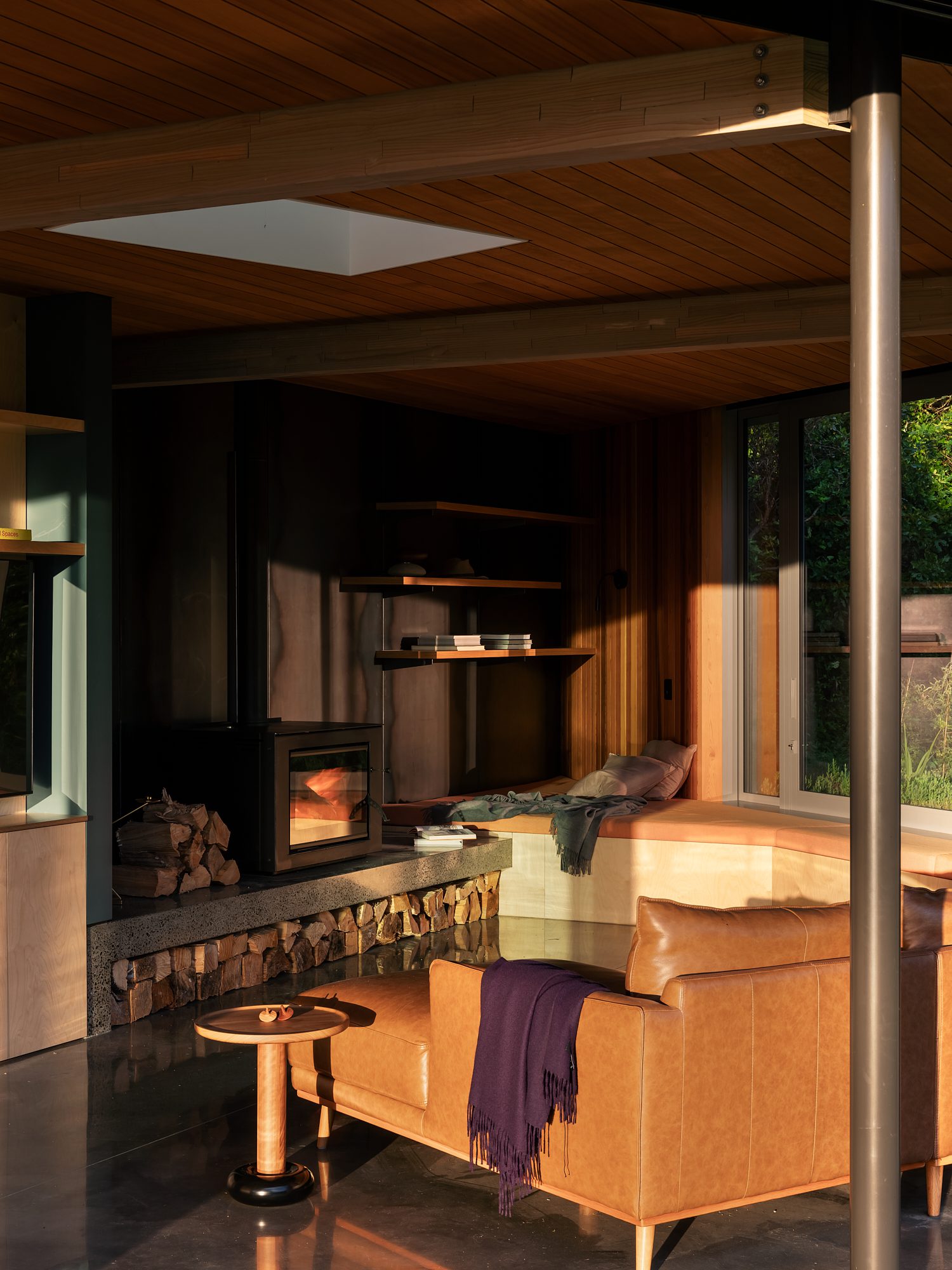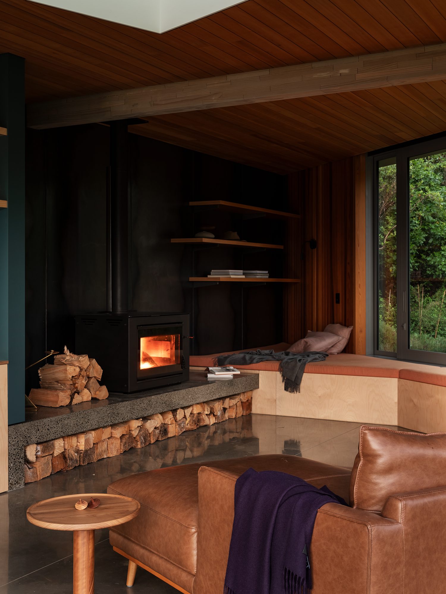 “It’s a place to connect, for family to converge. There’s a nostalgia to it that speaks to old fishing baches — the roaring fire, the timber, rods lying around. It’s a place to slow down.”