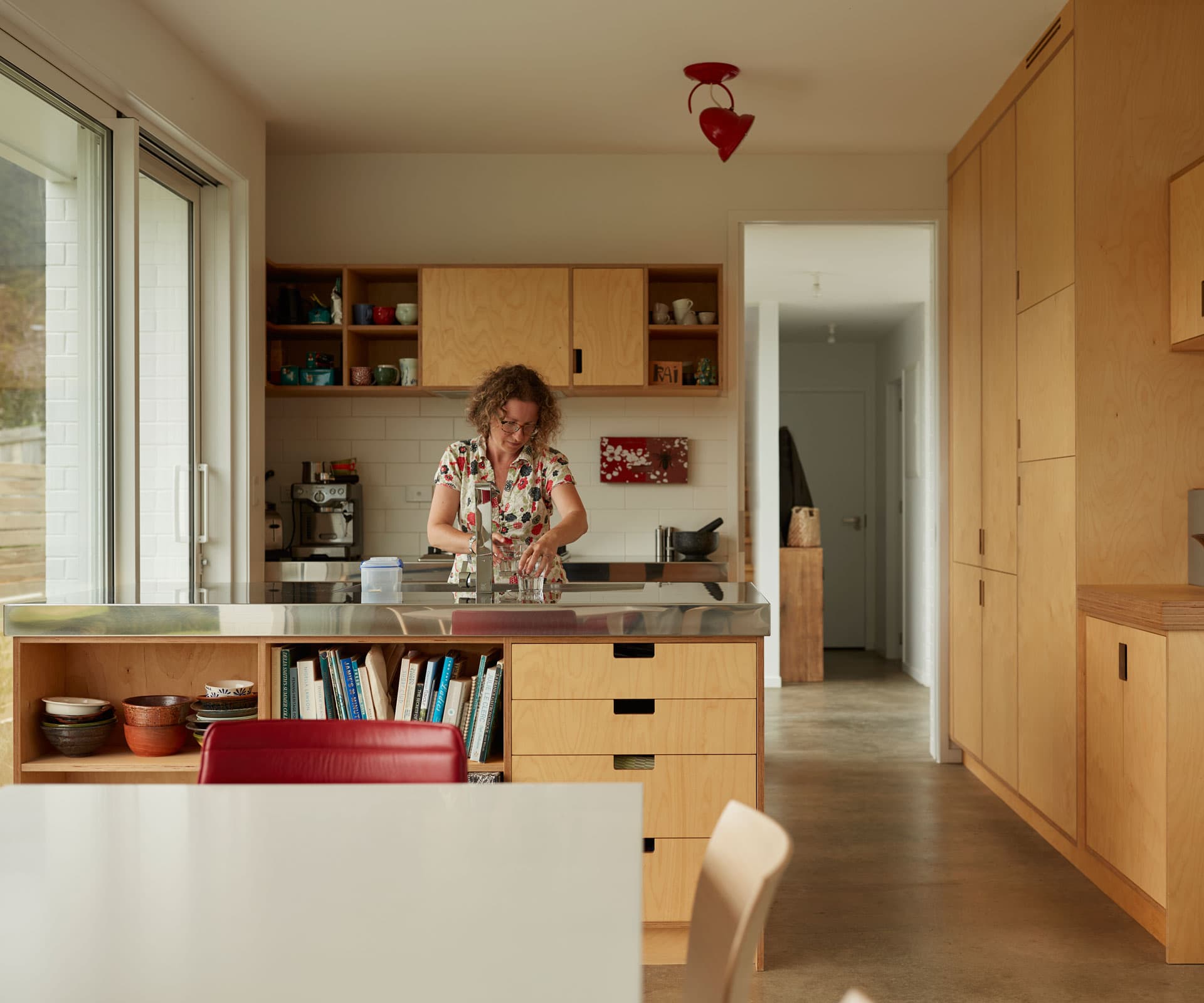 Although they own a building company and had already built a house up the road for themselves, the couple had never worked with an architect. They Googled what to do, wrote a very formal brief, then sent it off, expecting Crosson to say no thanks to their modest budget. “We tried to focus on our needs and how we wanted to use the spaces,” says Hide-Bayne. “We didn’t want to be prescriptive at all about how it would look.”