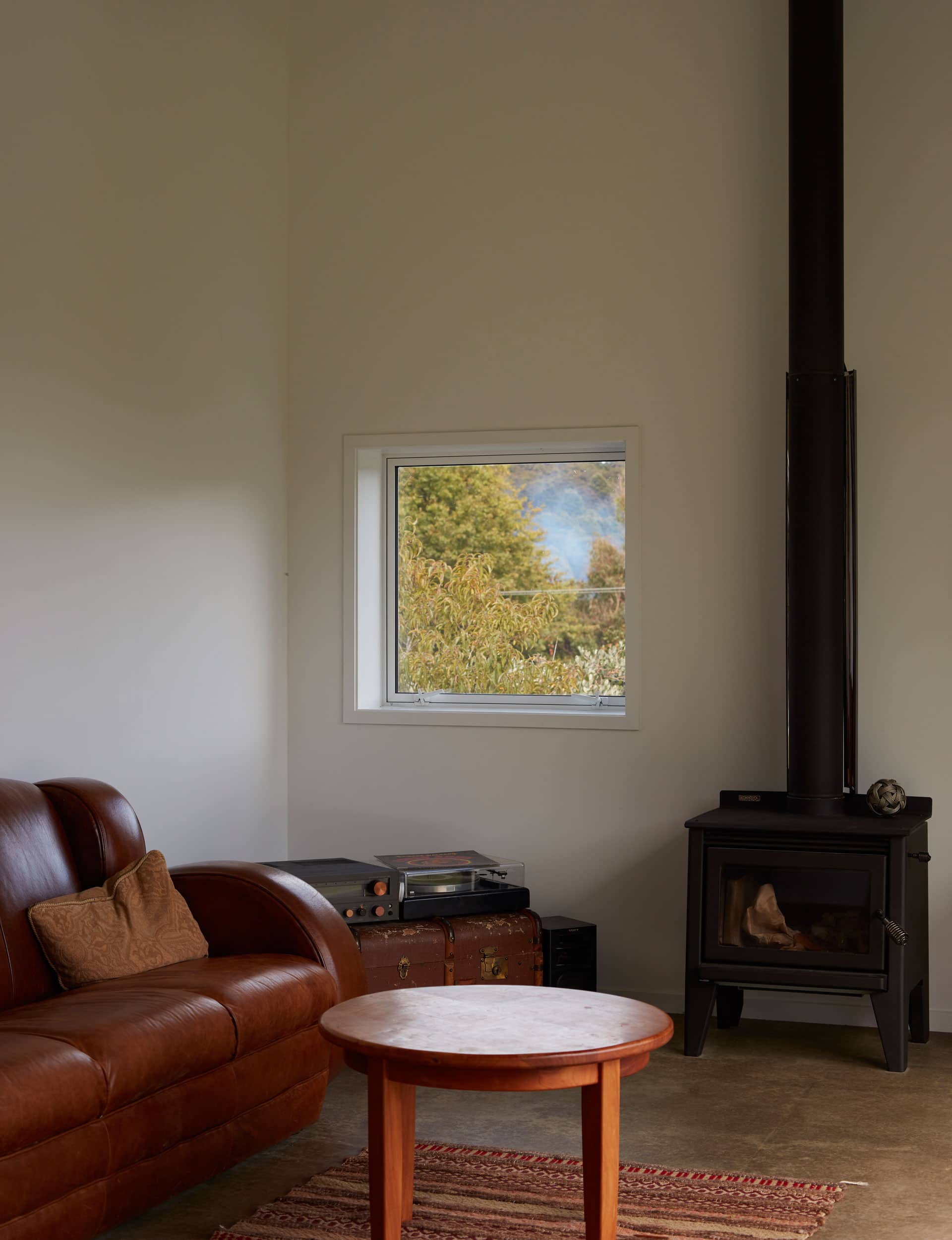 Windows are important: the narrowness of the sentinels allows light and views on at least two sides of every room; high windows wash light across the ceiling in the living area. Views are directed across the valley through doors and windows, including carefully thought-out punctures on the south side. “You don’t want lots of glass on that side but you want moments that help define spaces. I think it’s really engaging like that,” says Crosson.
