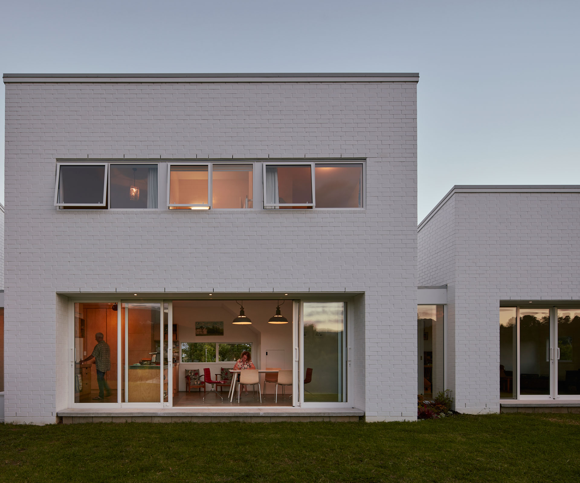 Bayne and his small team of builders built the house – meticulously and carefully, never diverting from Crosson’s plan. “It was designed for them,” says Crosson, “but his toil and labour made it a family home. They were all involved. And we loved that.”
