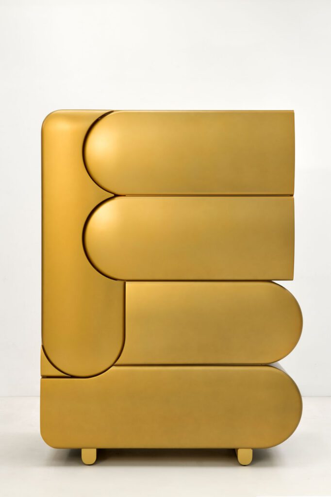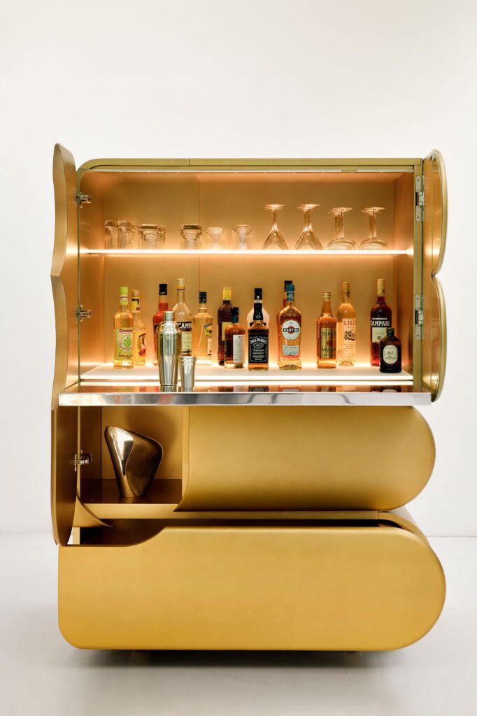 Also showcased at Salone Raritas, the Alchemist bar introduces a sense of theatre. Concealed compartments and interlocking mechanisms transform its function, making it both practical and celebratory. For Xavier, technical complexity matters only when it deepens the experience. The golden patina draws you in, but the true intrigue lies in the bar’s unfolding design.