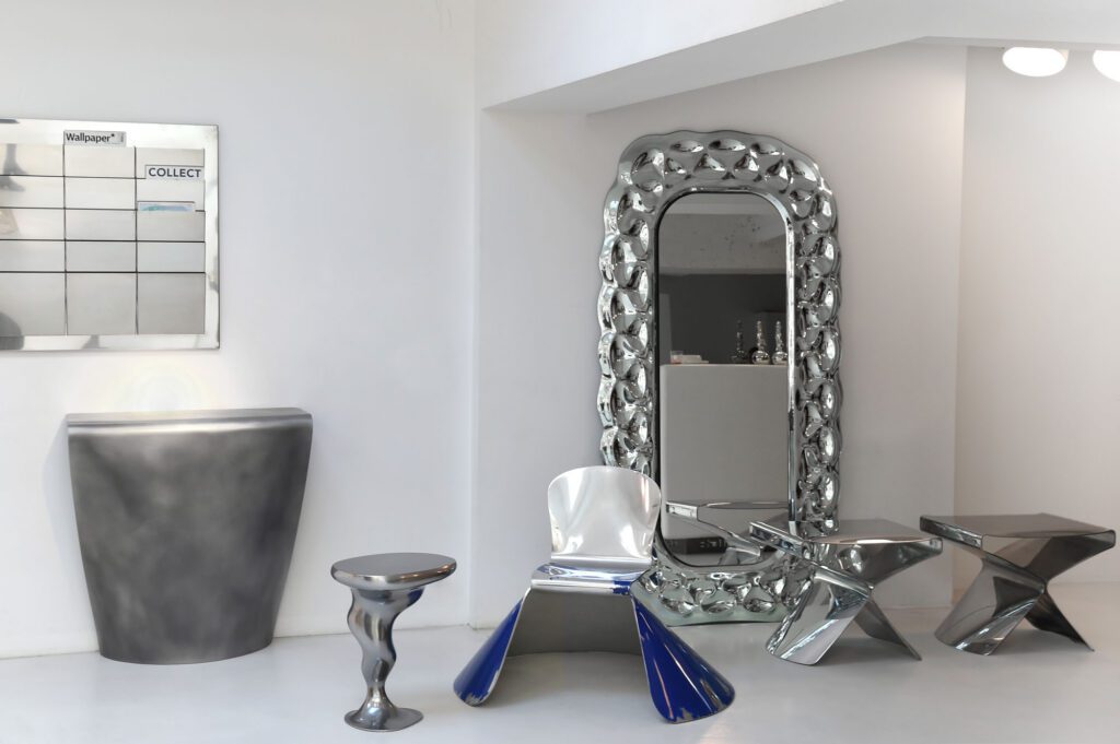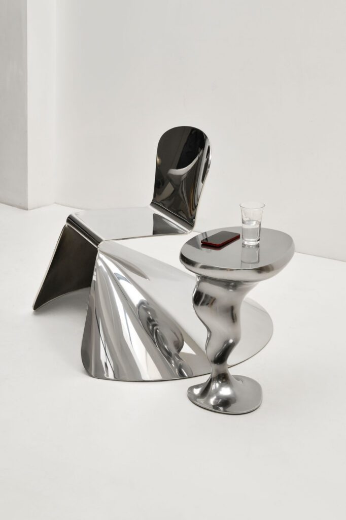 Where the Archiduchaise appears to sink, his Smoke table rises. This 3D-printed piece plays with gravity and suspension, its form rising like a column of smoke.