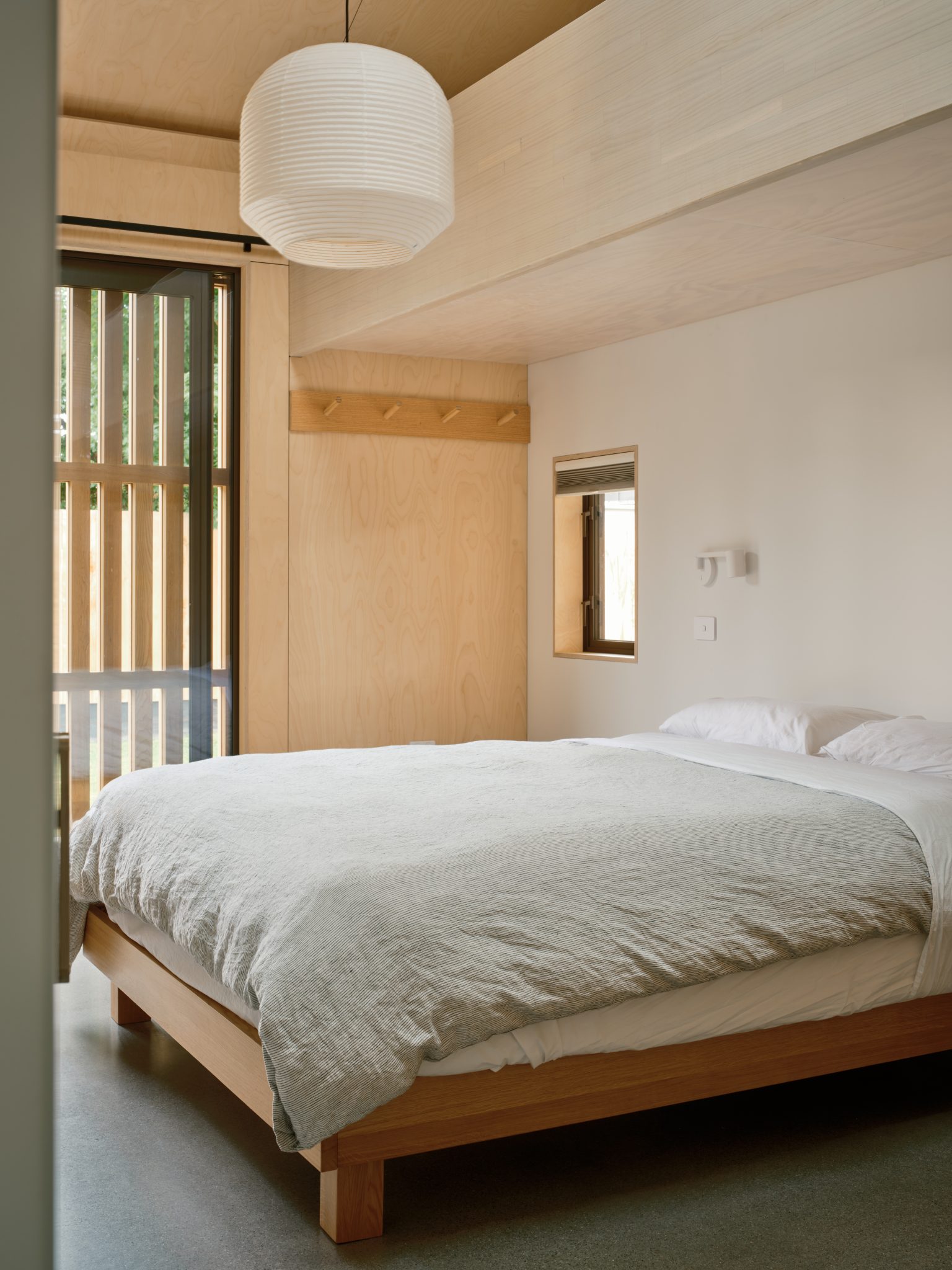 That single-level, floating sleeping arrangement fits two and boasts a light well.
