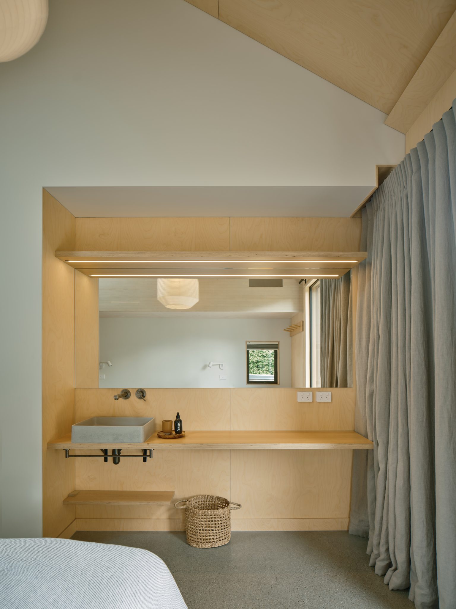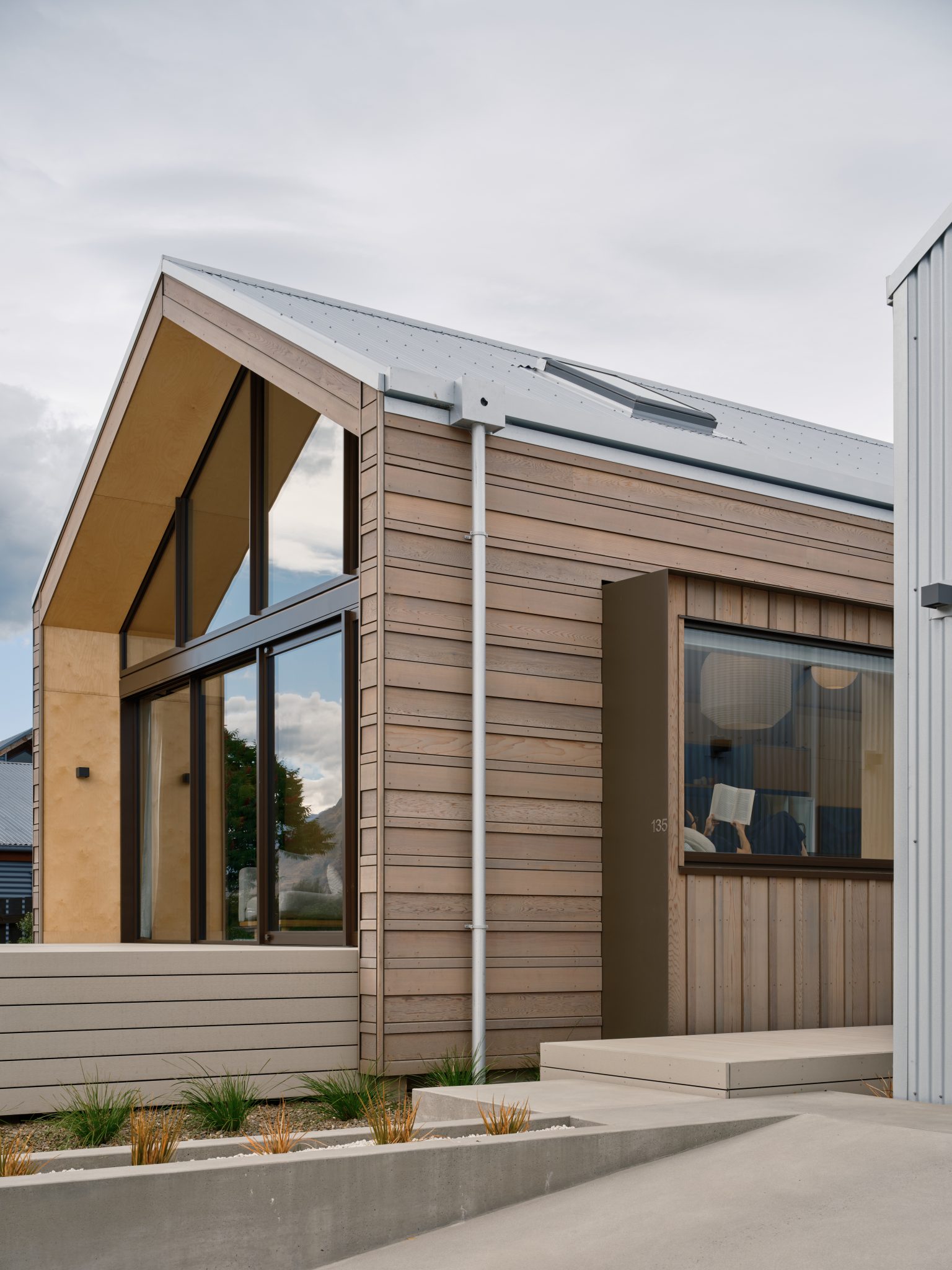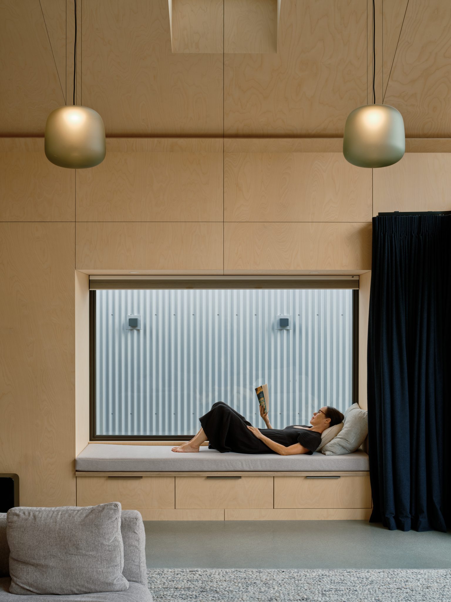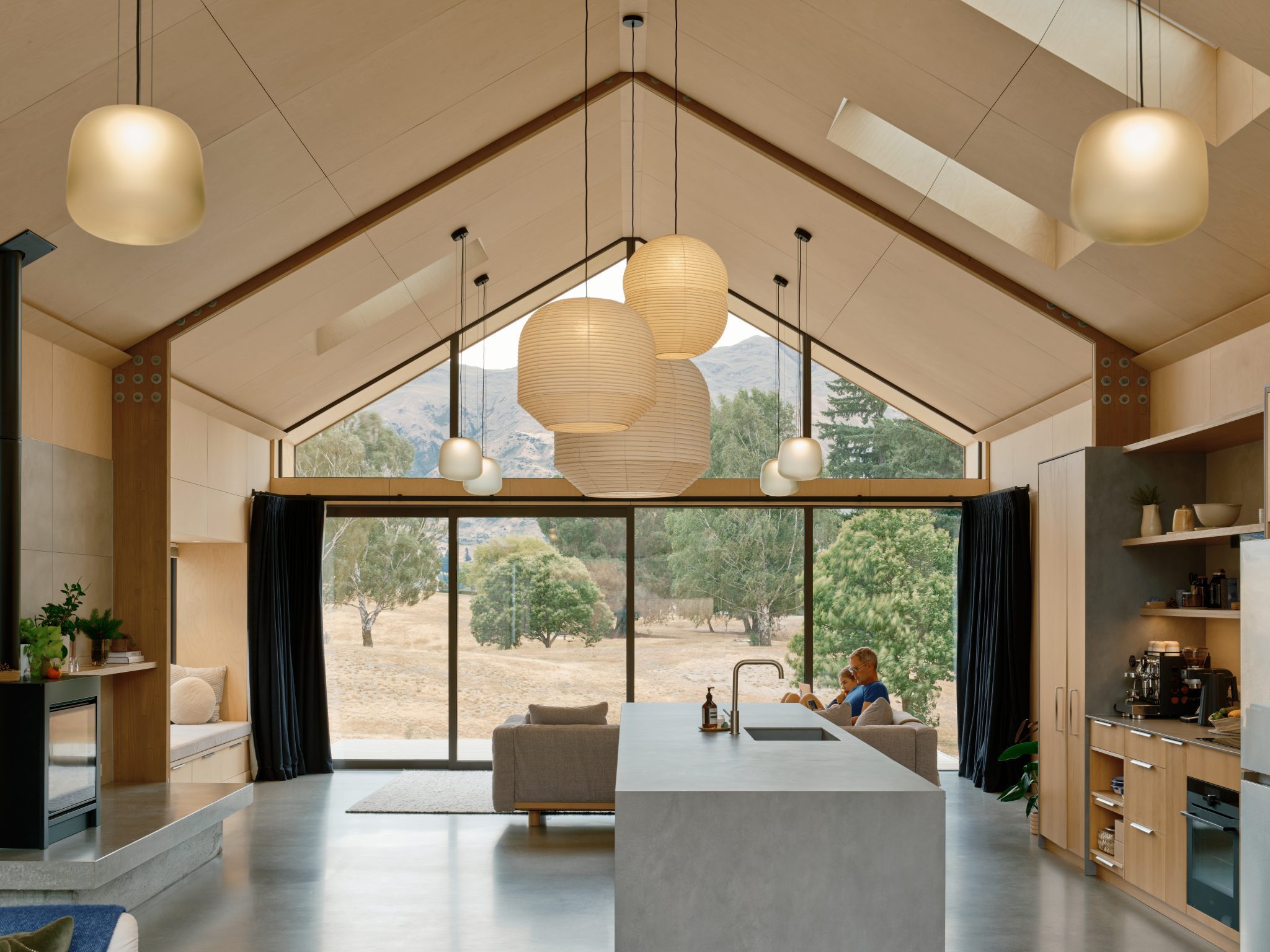 “The palette responds to the Otago vernacular: calm and with shifting textures. Finishes are kept simple and few, a refined background for how the spaces are dressed with soft furnishings, art, and the ‘stuff of life’.